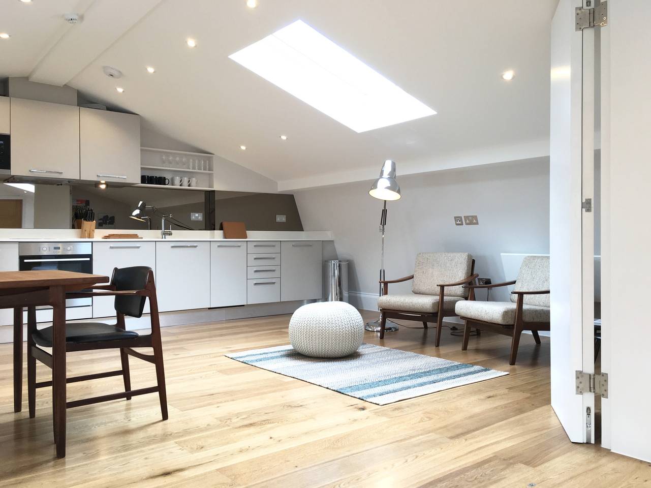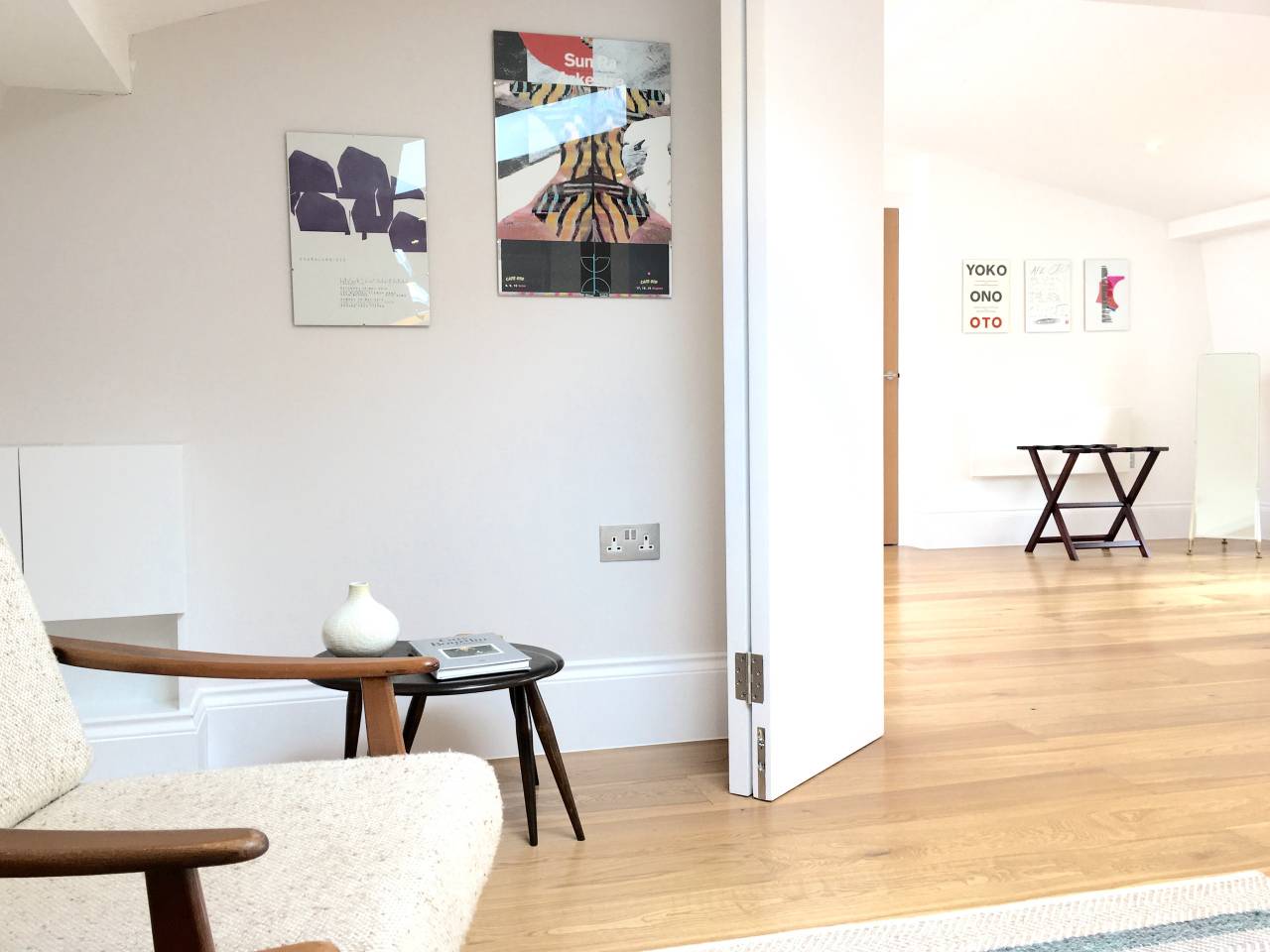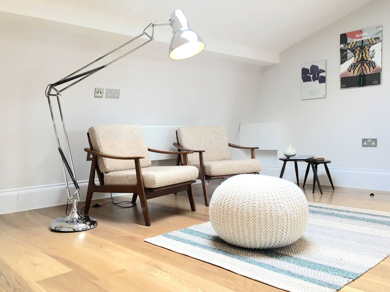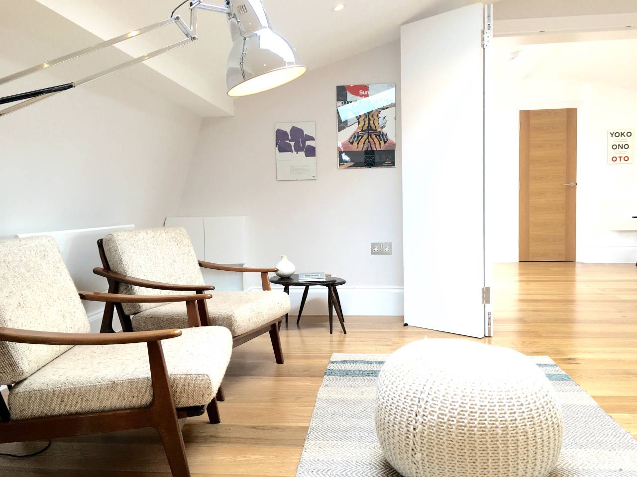 Furnished with statement mid-century pieces by renowned designers such as Kofod Larsen, the newly renovated apartment offers the utilities of a home with all the comforts of a hotel|
