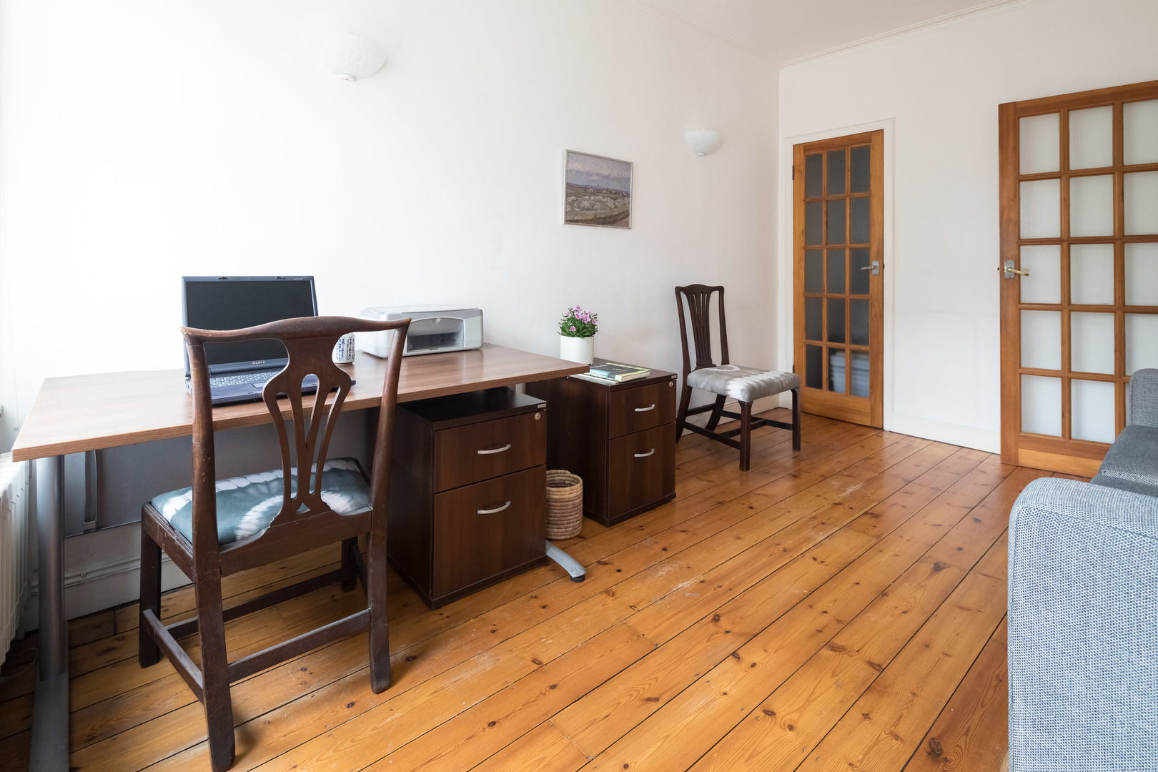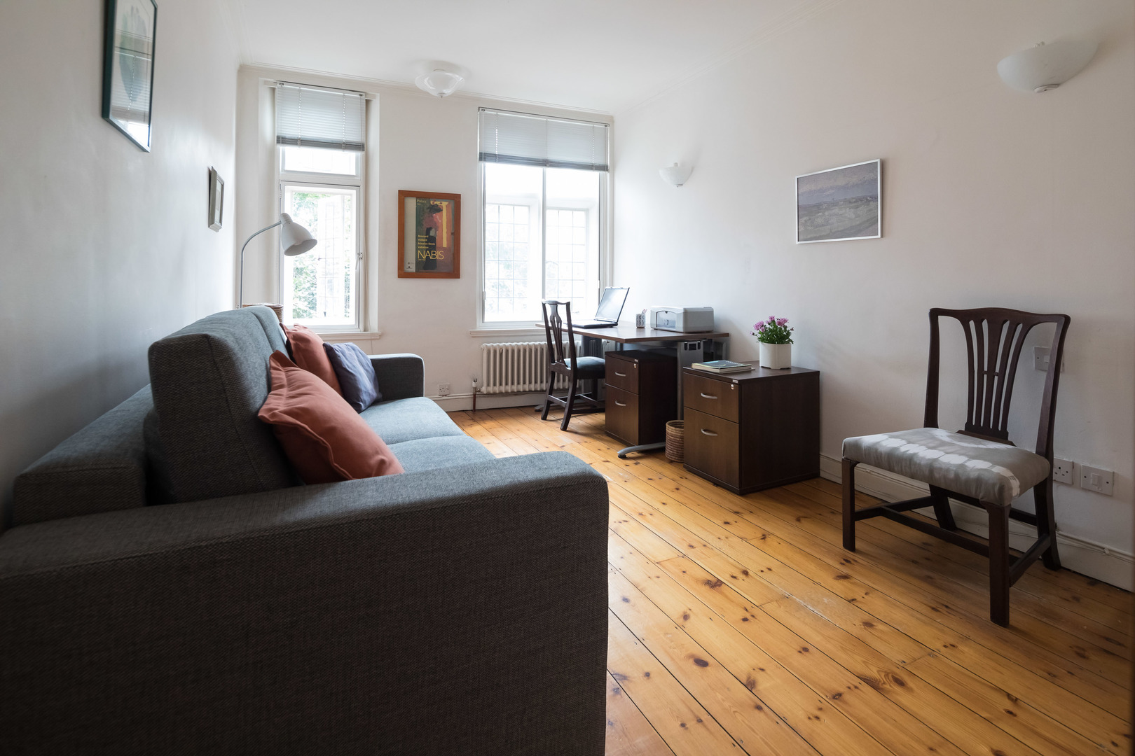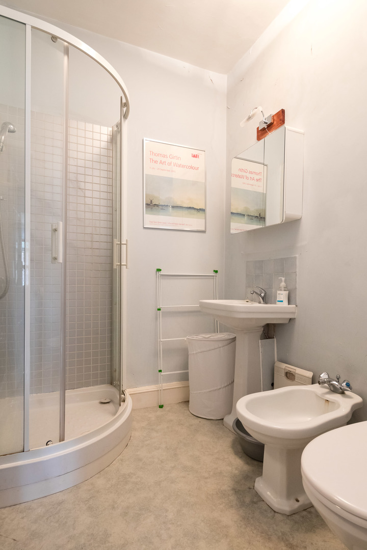 BEDROOM / STUDY This is located on the right hand side off the hallway and has a king size sofa bed, a cupboard and drawers and a desk nicely placed by the windows overlooking Queen Square. In an adjacent utility room is the washing machine together with shelves and ample hanging space for clothes. BATHROOM The bathroom offers a WC, a single wash basin, a bidet and a walk-in shower| House Rules: No smoking, pets or parties! Please note, this flat is located on the 3rd floor, but there is a lift in the building. The bathroom in this home is due to be decorated, please note the paint is peeling from the walls. The lead guest must be at least 25 years old| Veeve reserves the right to refuse a booking if it thinks the property will be used for a party Home truths: No smoking, pets or parties! Please note, this flat is located on the 3rd floor, but there is a lift in the building. The bathroom in this home is due to be decorated, please note the paint is peeling from the walls.