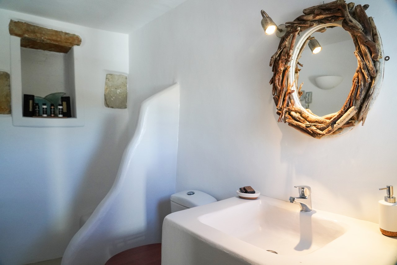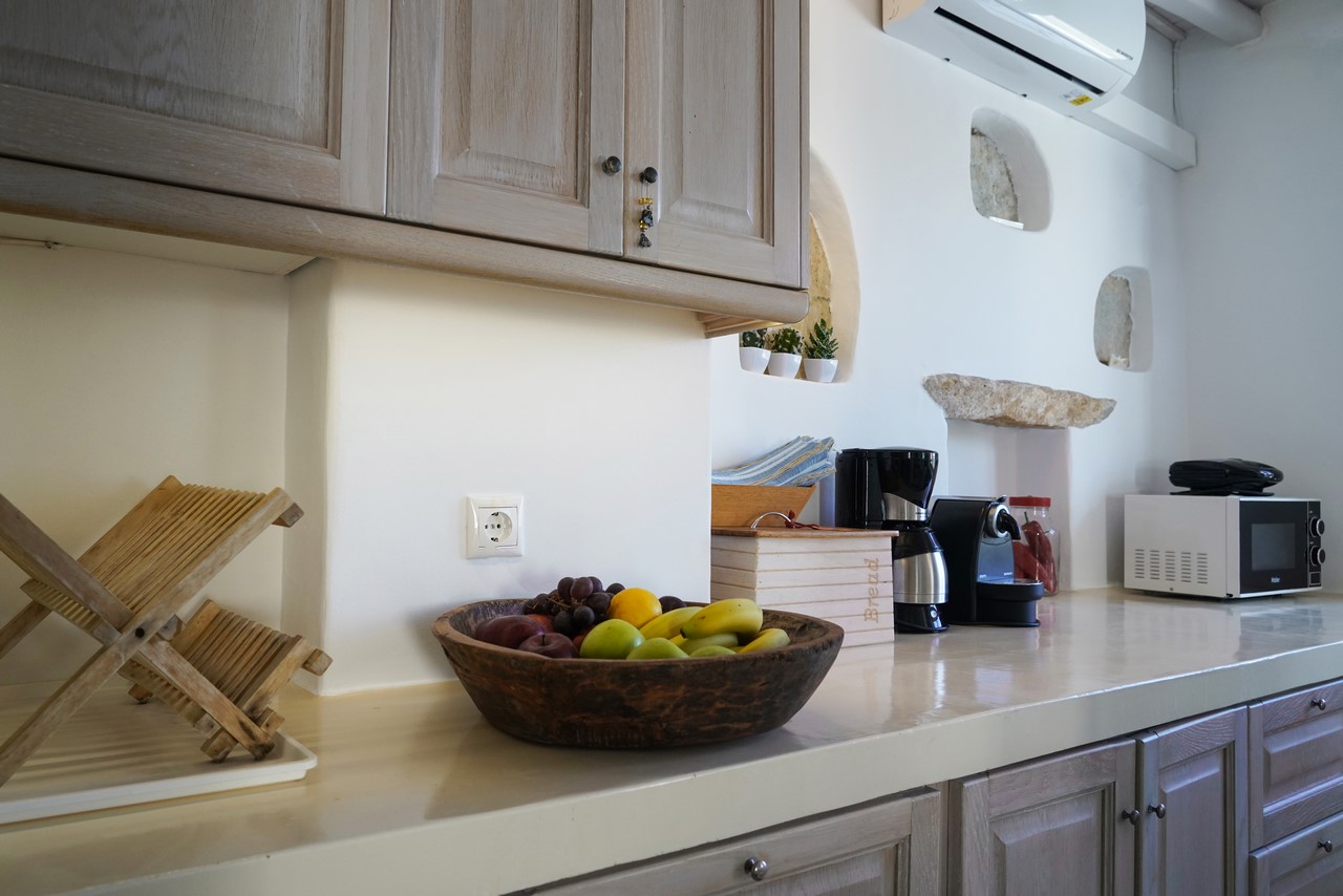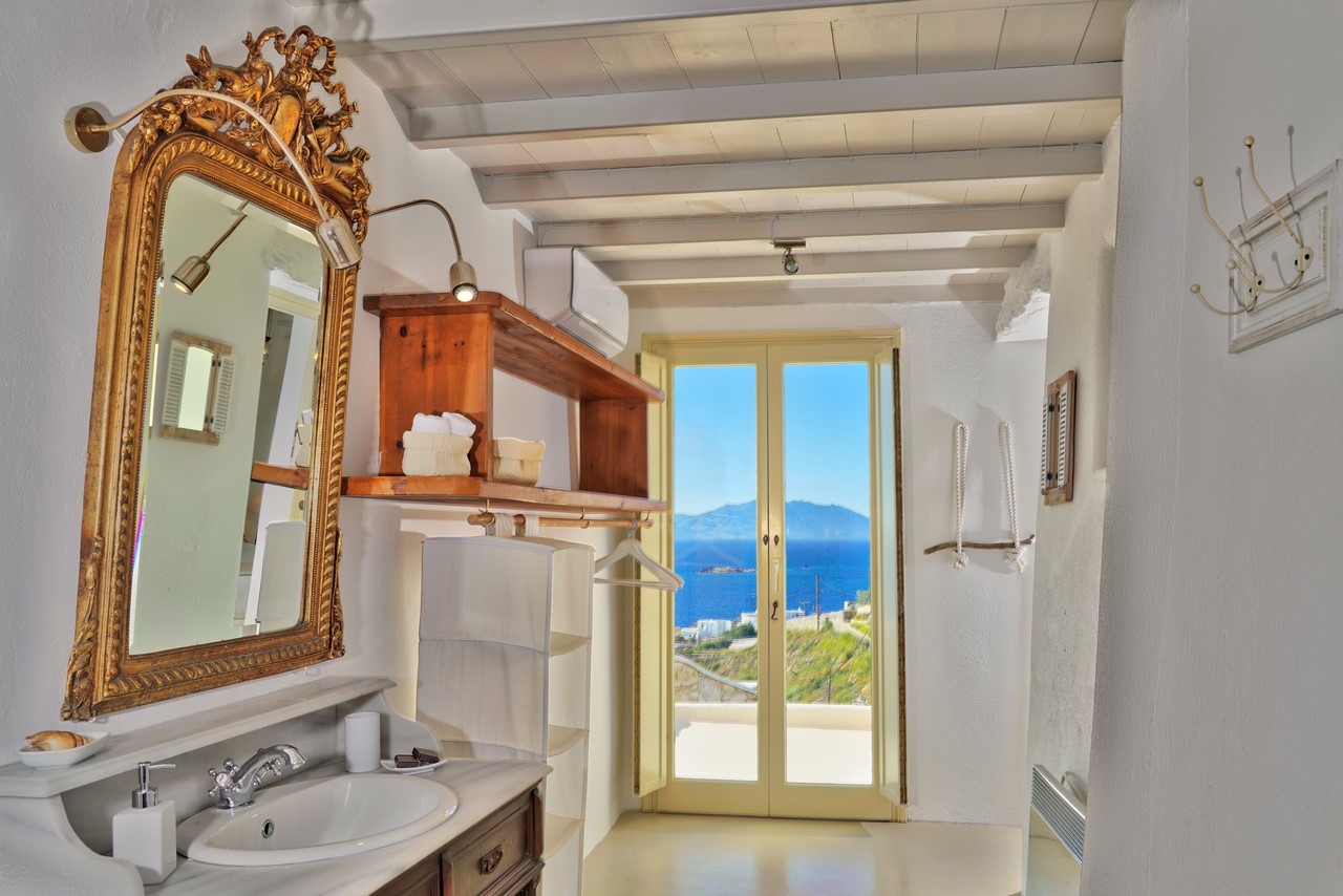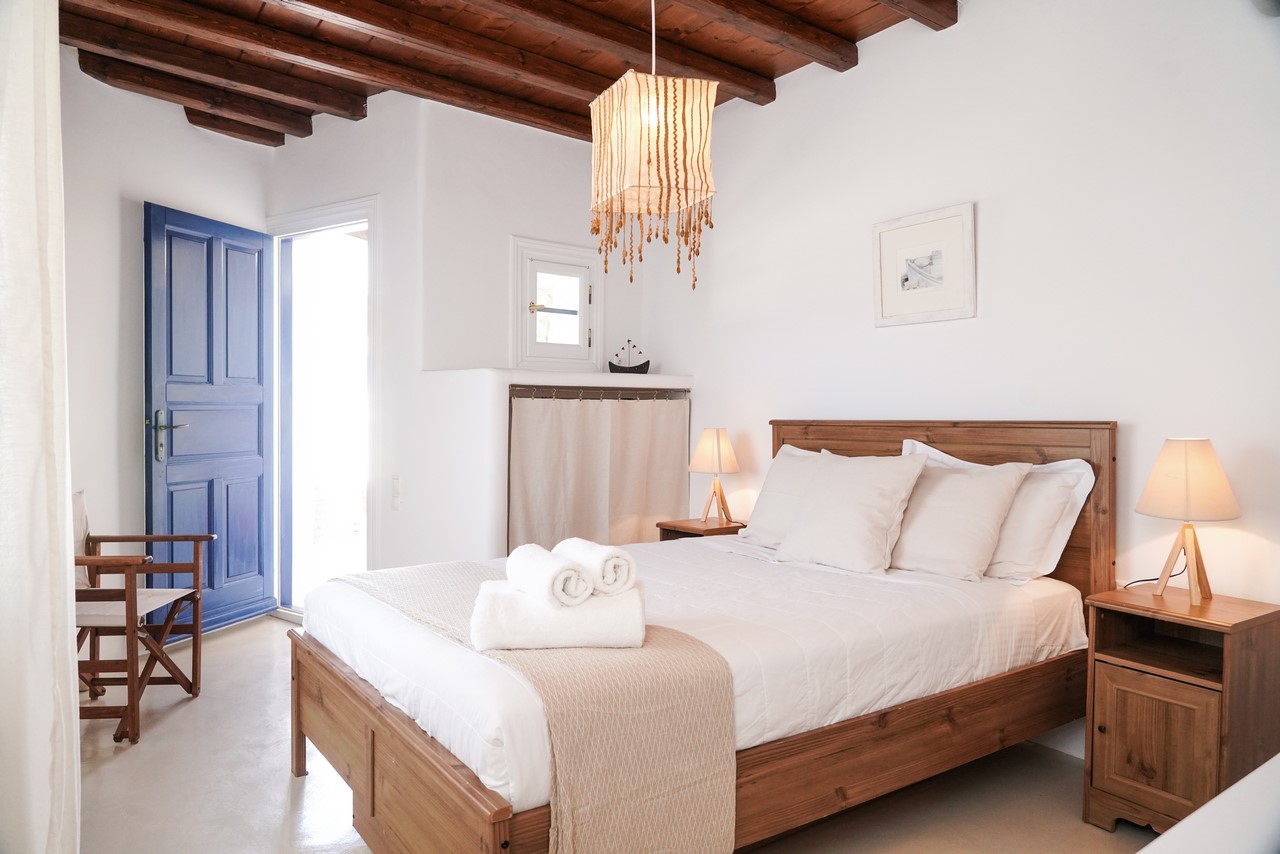 With its antique furniture, gorgeous location and convenient distance from Mykonos Town Villa, Rea has a lot to offer its guests. Villa Rea is a two-level house that has two independent guesthouses. Together, the houses can accommodate a total of six guests or three couples Villa layout Main House Ground Floor: - Open plan living room and kitchen.