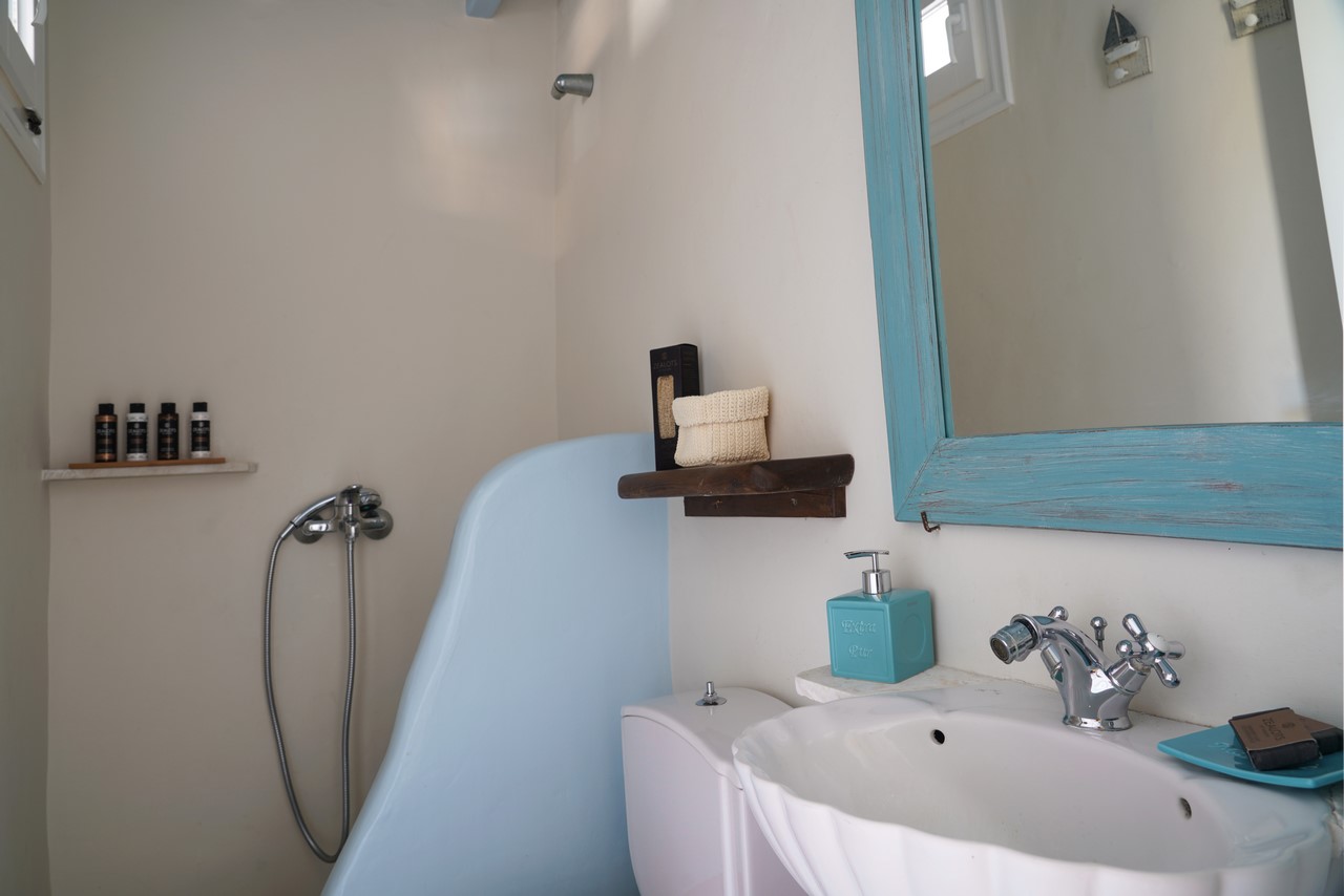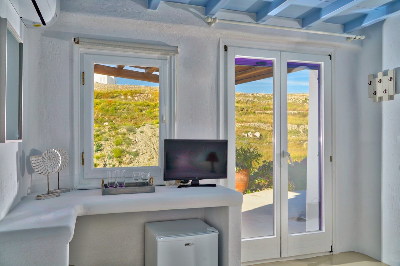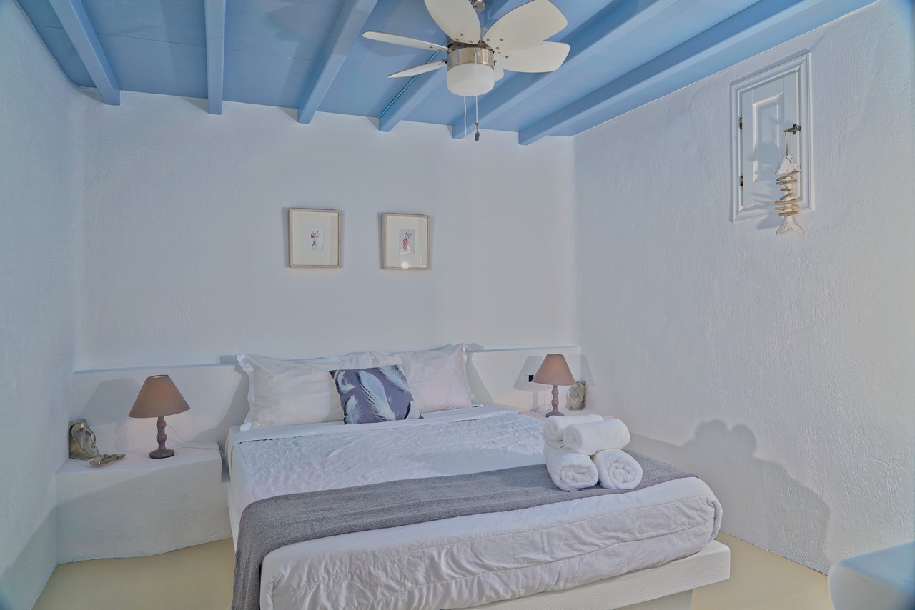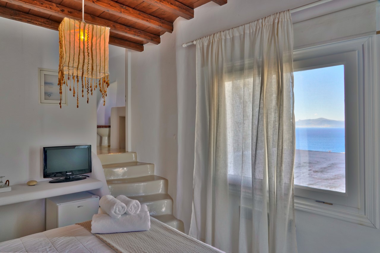 With its antique furniture, gorgeous location and convenient distance from Mykonos Town Villa, Rea has a lot to offer its guests. Villa Rea is a two-level house that has two independent guesthouses. Together, the houses can accommodate a total of six guests or three couples Villa layout Main House Ground Floor: - Open plan living room and kitchen.