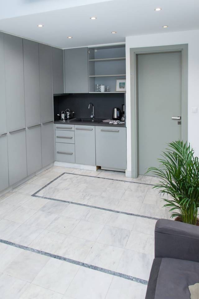 Guests find it a welcoming apartment as well as an easy spot from which to explore this ancient city. ★ The Space ★ This sleek and spacious studio can serve as an excellent base from which to enjoy your Greek holiday. From here, the city and its many treasures are minutes away whether you walk, take public transportation, or pick up a taxi| The compact but well-appointed kitchen means you can enjoy meals in your holiday studio before heading out for your day of exploring (if you're here for work, try to take some time to enjoy the ancient sites). The double-sized sofa bed folds out for comfortable sleeping for two within sight of the television for relaxing by day and sleeping by night. We provide all the necessities to get you start on your holiday: toilet paper, soap, towels, and quality bed linens.