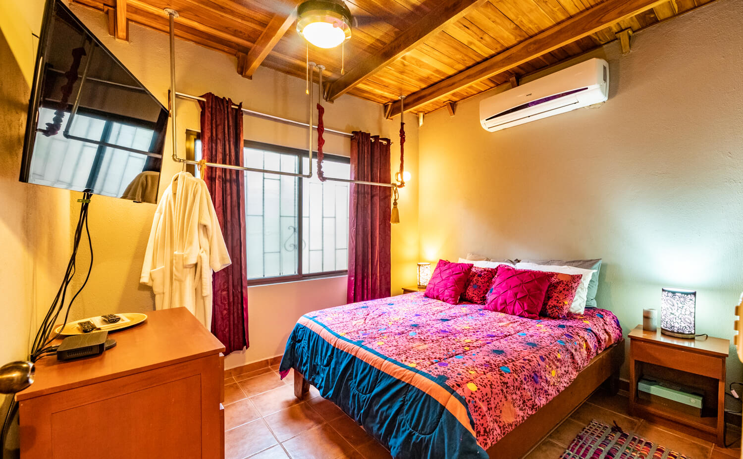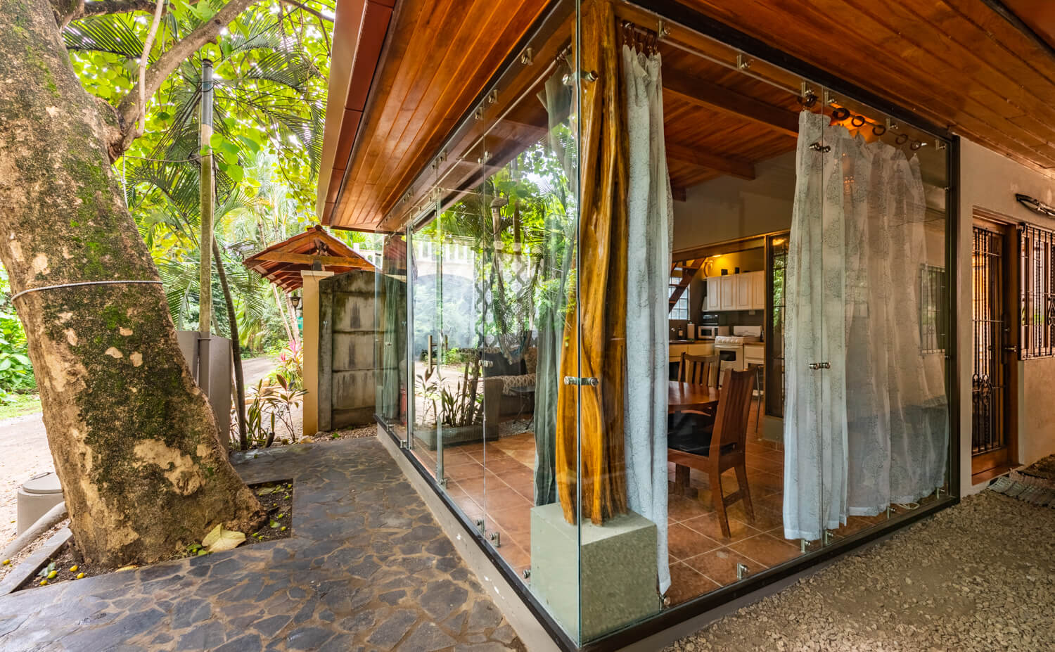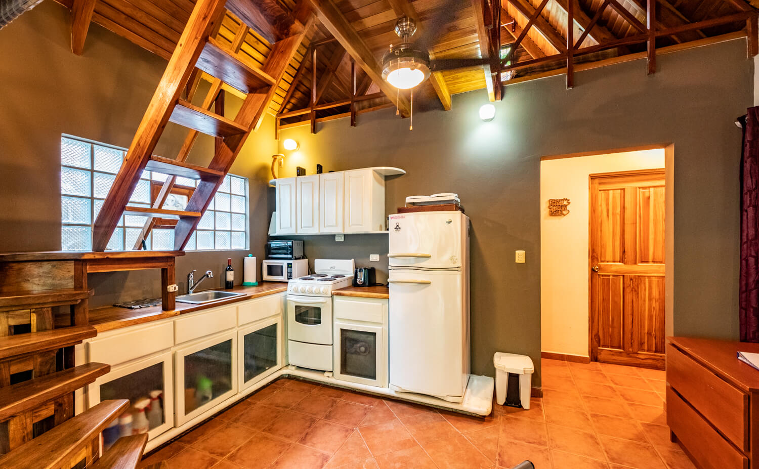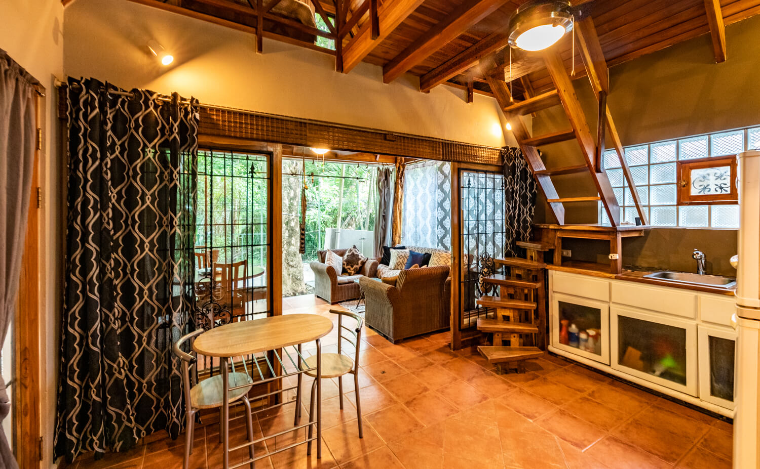 We can assist with airport transportation, SUV rentals, ATV/golf carts or bike rentals. There are also local ‘Tuk-Tuk’s” available as taxi services, private transportation can be arranged upon request. To travel outside of Playa Guiones to nearby beaches and larger grocery stores we recommend having a ATV or SUV| Other Things to Note: Unfortunately because of the nature of the stairs we cannot welcome toddlers or younger children. A few of the stairs to the loft area can be steep and ladder like. We also do not recommend groups traveling with multiple elderly guests or guests with mobility issues|. The house is very safe and secure, however, as we are a tourist destination, petty theft can exist as it does in any tourist destination in the world. Be sure to lock all valuables and do not leave belongings unattended.