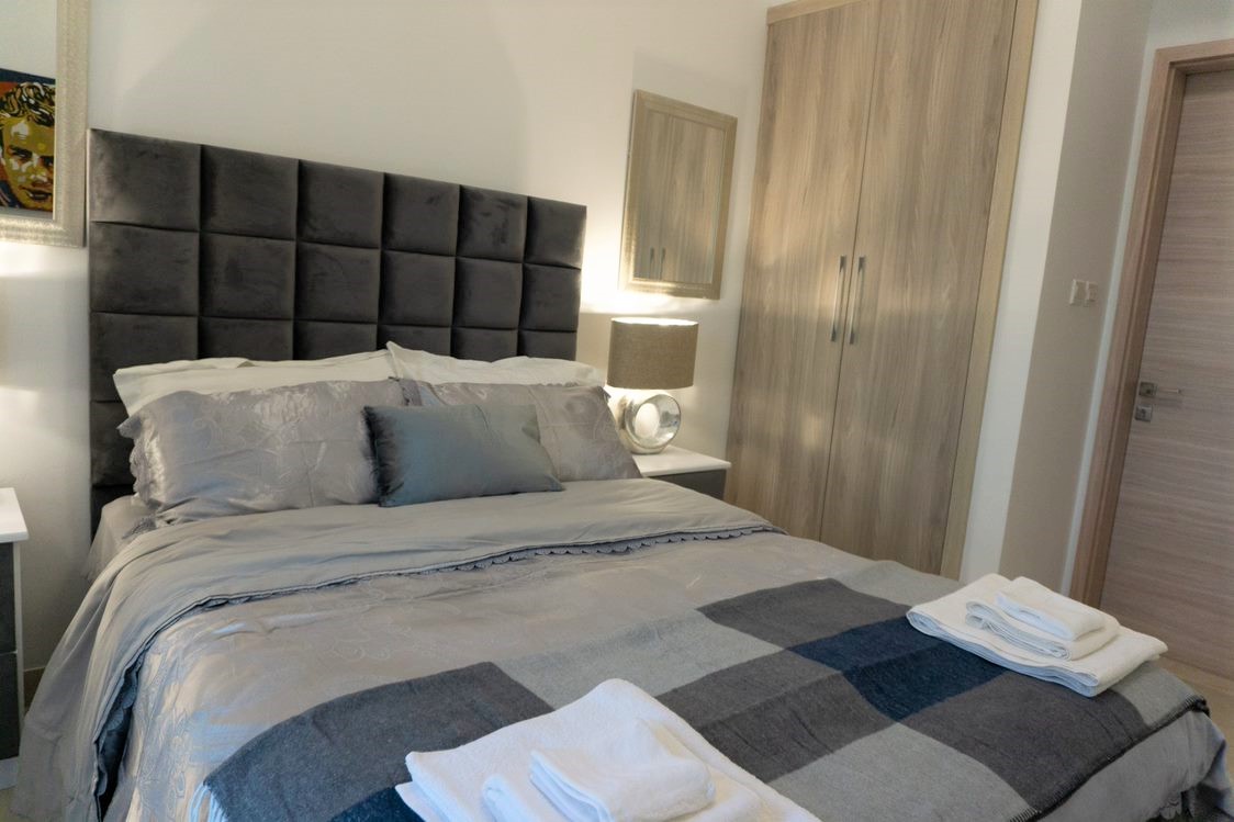 The air-conditioned apartment consists of one bedrooms, a living room, a fully equipped kitchen with a dishwasher and a kettle, and bathrooms with shower|