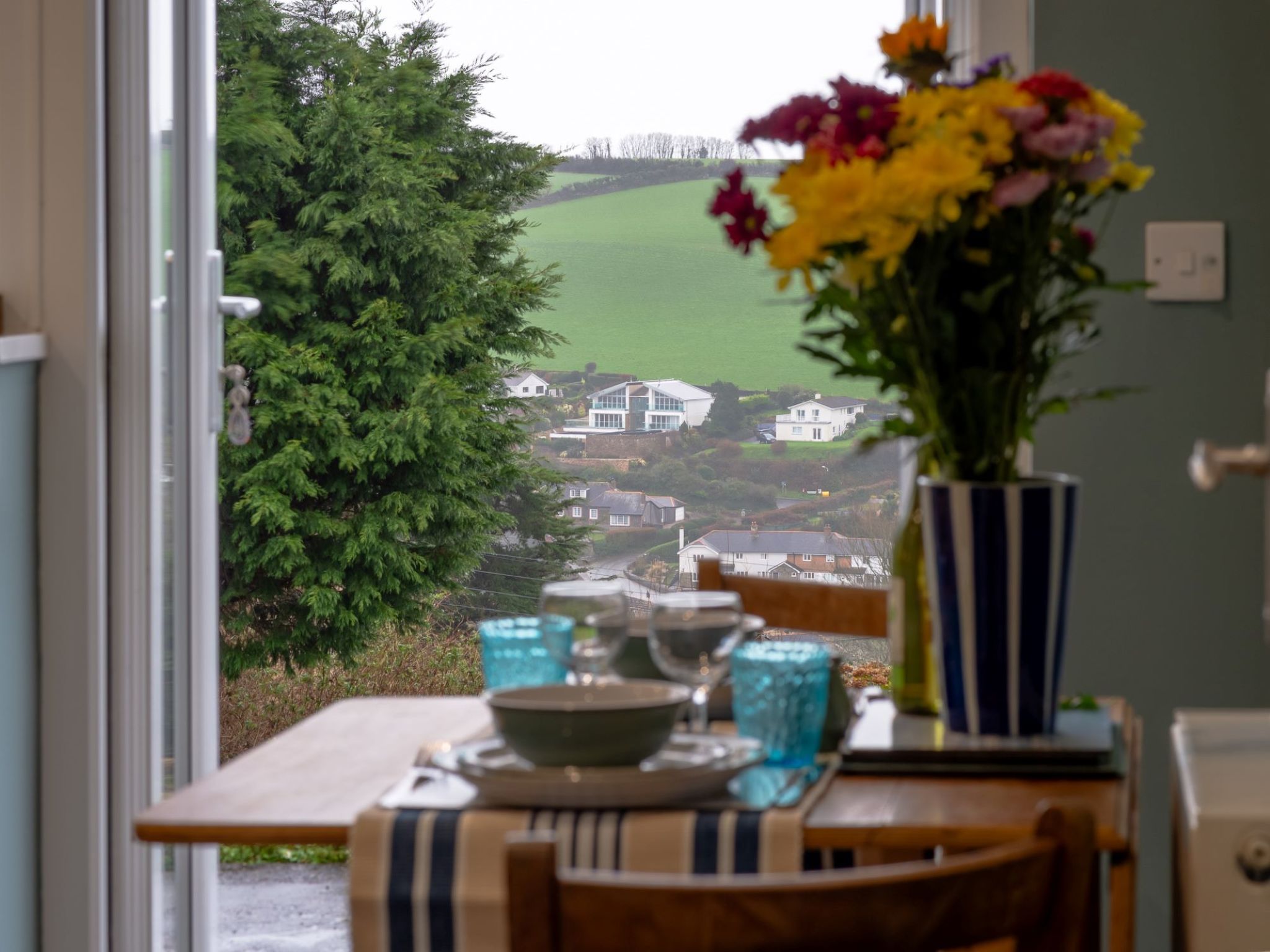 Modern, cosy bungalow "Valley View", detached. In the resort Portmellon, on the outskirts Mevagissey, in a quiet position, 200 m from the edge of the forest, 200 m from the sea, 200 m from the beach, in a cul-de-sac. Private: large garden, lawn for sunbathing. Patio, garden furniture, fireplace. In the house: WiFi, central heating system, washing machine, tumble dryer. Parking (for 2 cars) at the house. Shop 1 km, grocery 6 km, supermarket 6 km, restaurant 1 km, bar 200 m, bakery 1 km, café 1 km, bicycle rental 4 km, pub garden 200 m, bus stop "Portmellon" 500 m, railway station "St Austell" 6 km, sandy beach "Portmellon" 200 m pebble beach "Chapel Point" 500 m, park "Mevagissey" 1 km. Golf course (18 hole) 6 km, tennis 1 km, sports centre 1 km, walking paths from the house 100 m, fishing possibilities 200 m. Nearby attractions: The Lost Gardens of Heligan 3 km, Charlestown Historic Harbour 8 km, The Eden Project 16 km, Mevagissey Harbour 1 km, Caerhayes Beach 10 km, Lanhydrock House & Garden 36 km. Well-known lakes can easily be reached: Silbyback Lake 46 km. Hiking paths: South West Coast Path 100 m, Saints Trail 12 km, Kingswood Pentewan 4 km. Please note: baby equipment on request. Loading and unloading of baggage is possible at the holiday house.
