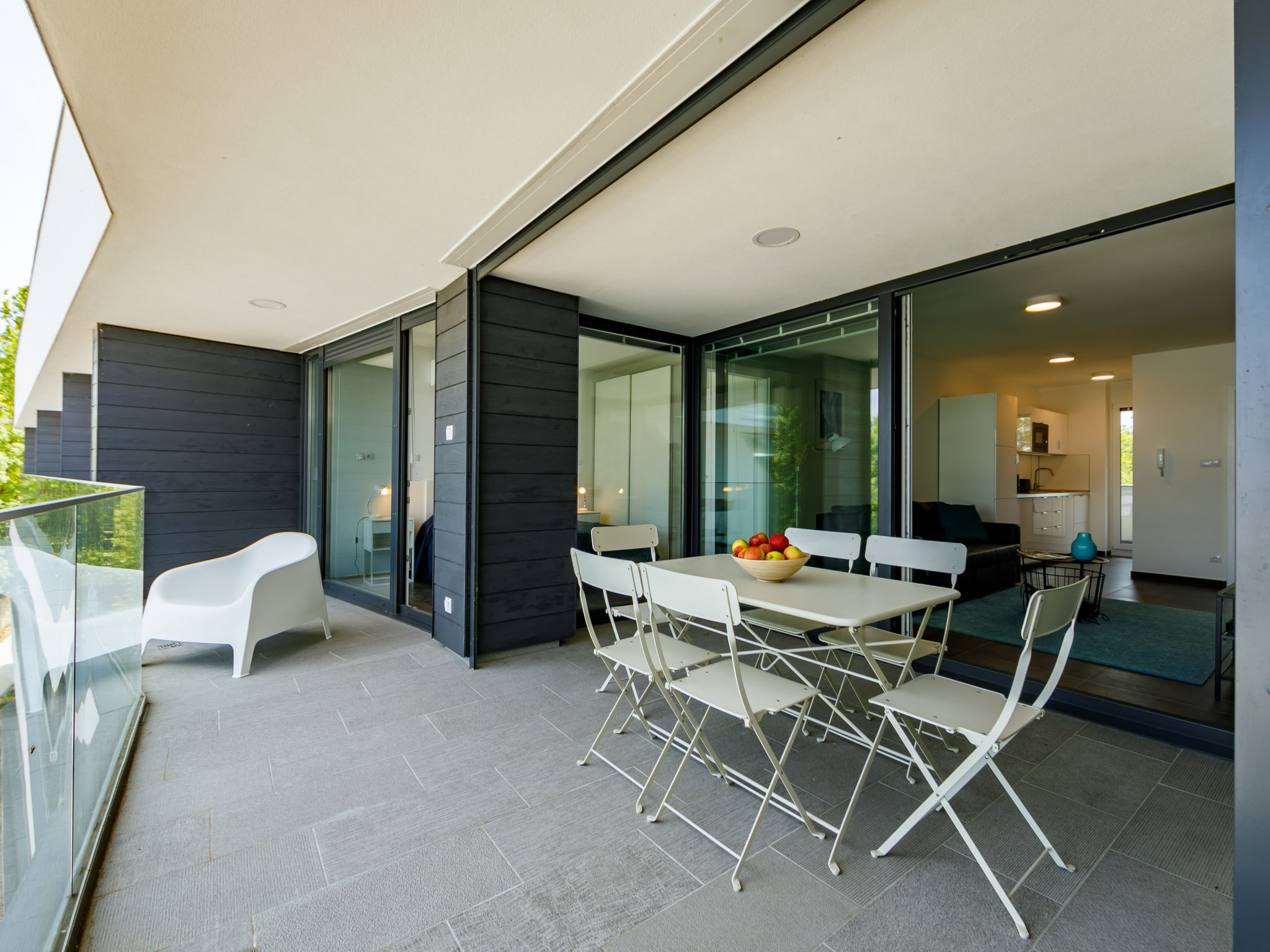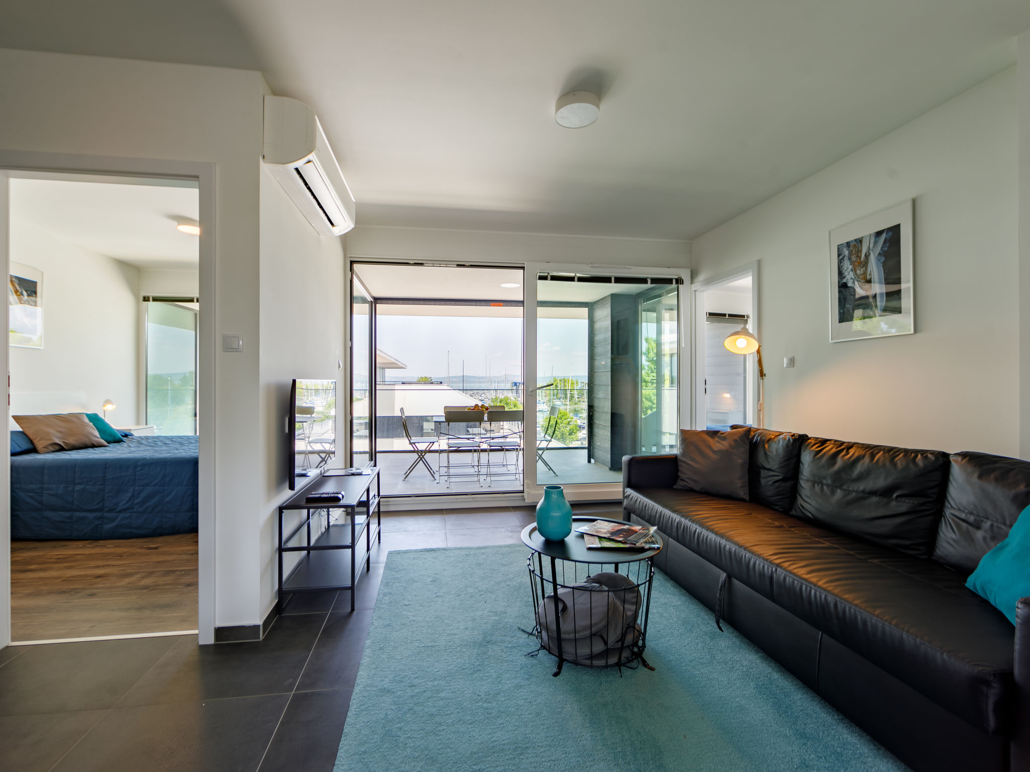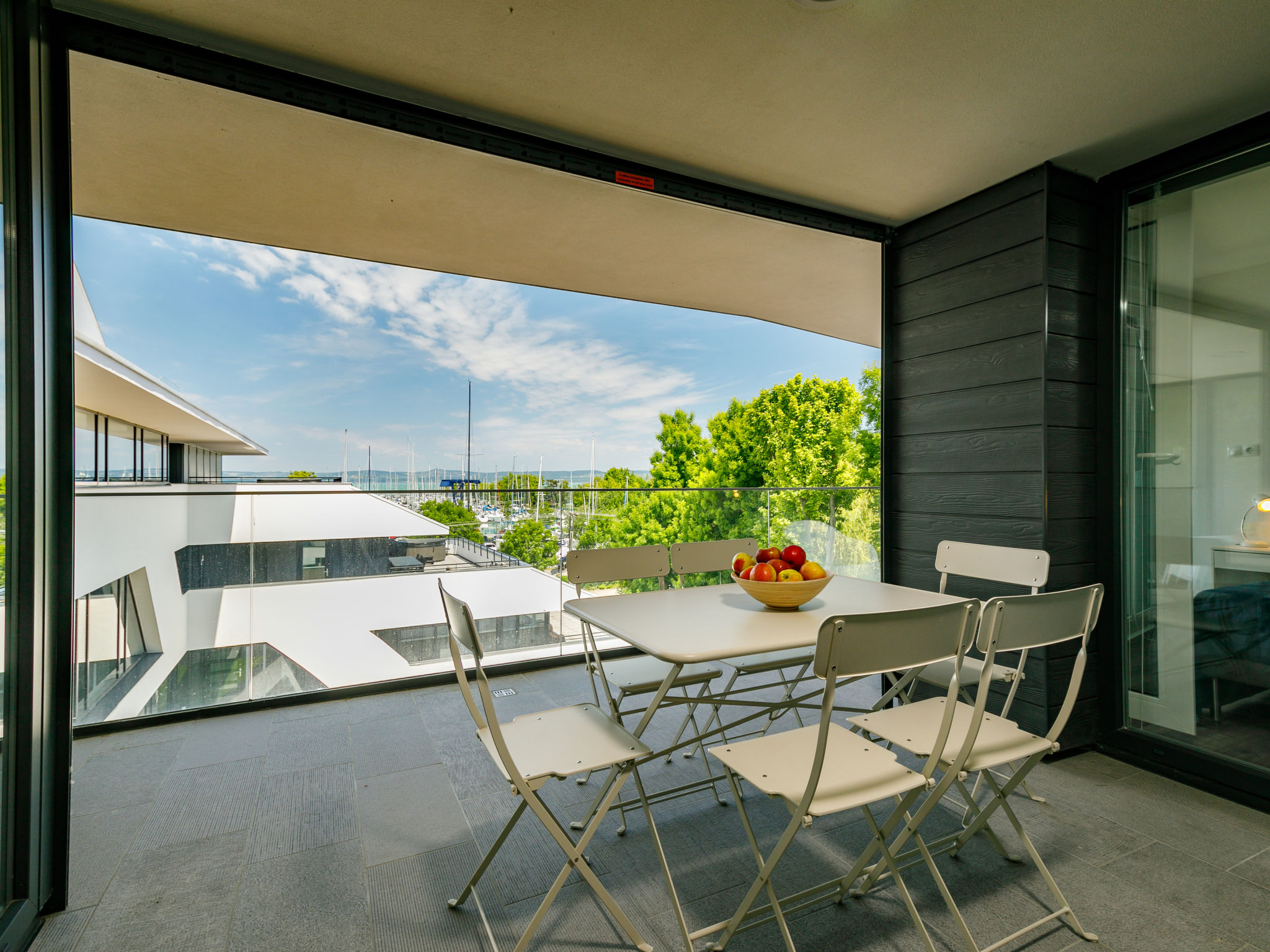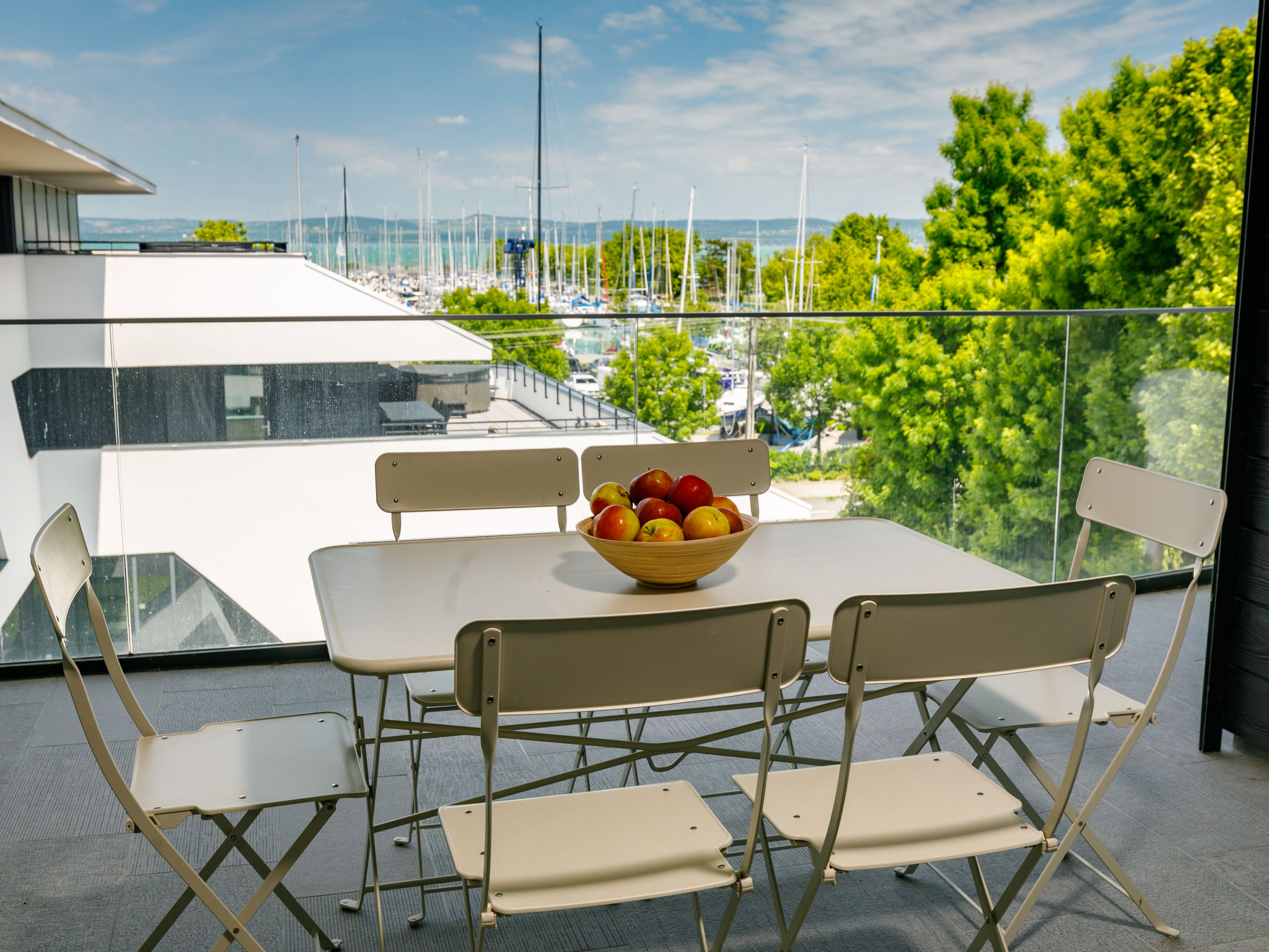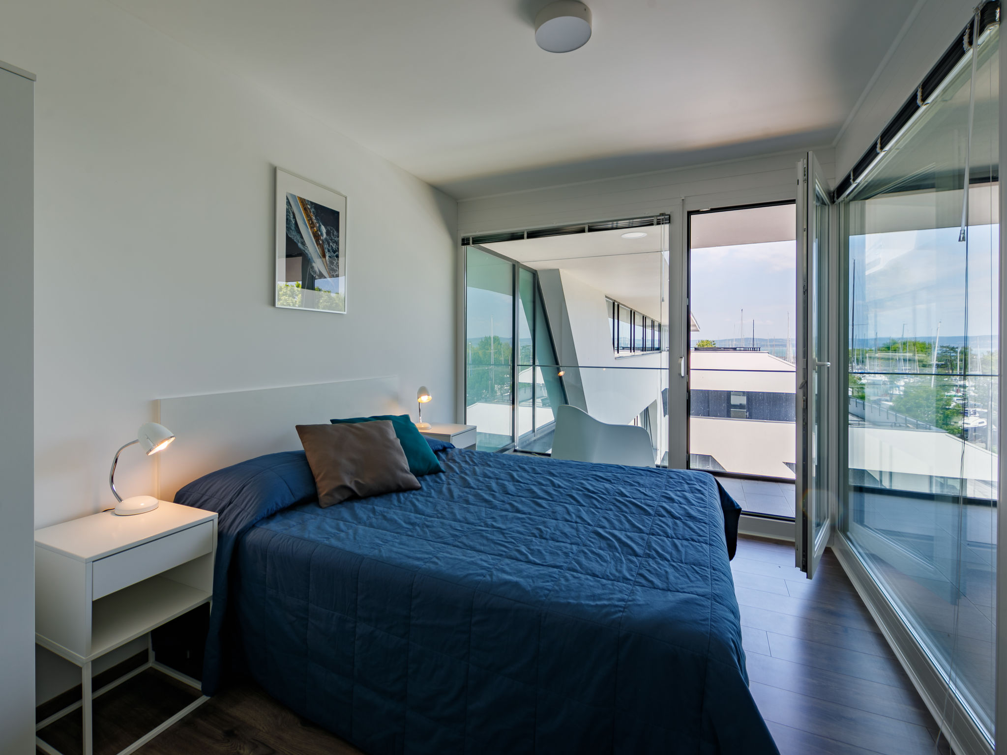 "Fűzfő", 3-room apartment 56 m2 on 3rd floor. Modern and tasteful furnishings: living/sleeping room with 1 pull-out bed (2 pers.), cable TV and air conditioning. Exit to the terrace. 2 rooms, each room with 1 french bed. Open kitchen (oven, dishwasher, toaster, kettle). 2 showers/WC, sep. WC. Heating, floor heating. Terrace 11 m2. Terrace furniture. Facilities: children's high chair, baby cot (extra). Parking (1 car). Maximum 1 pet/ dog allowed. EG21000354