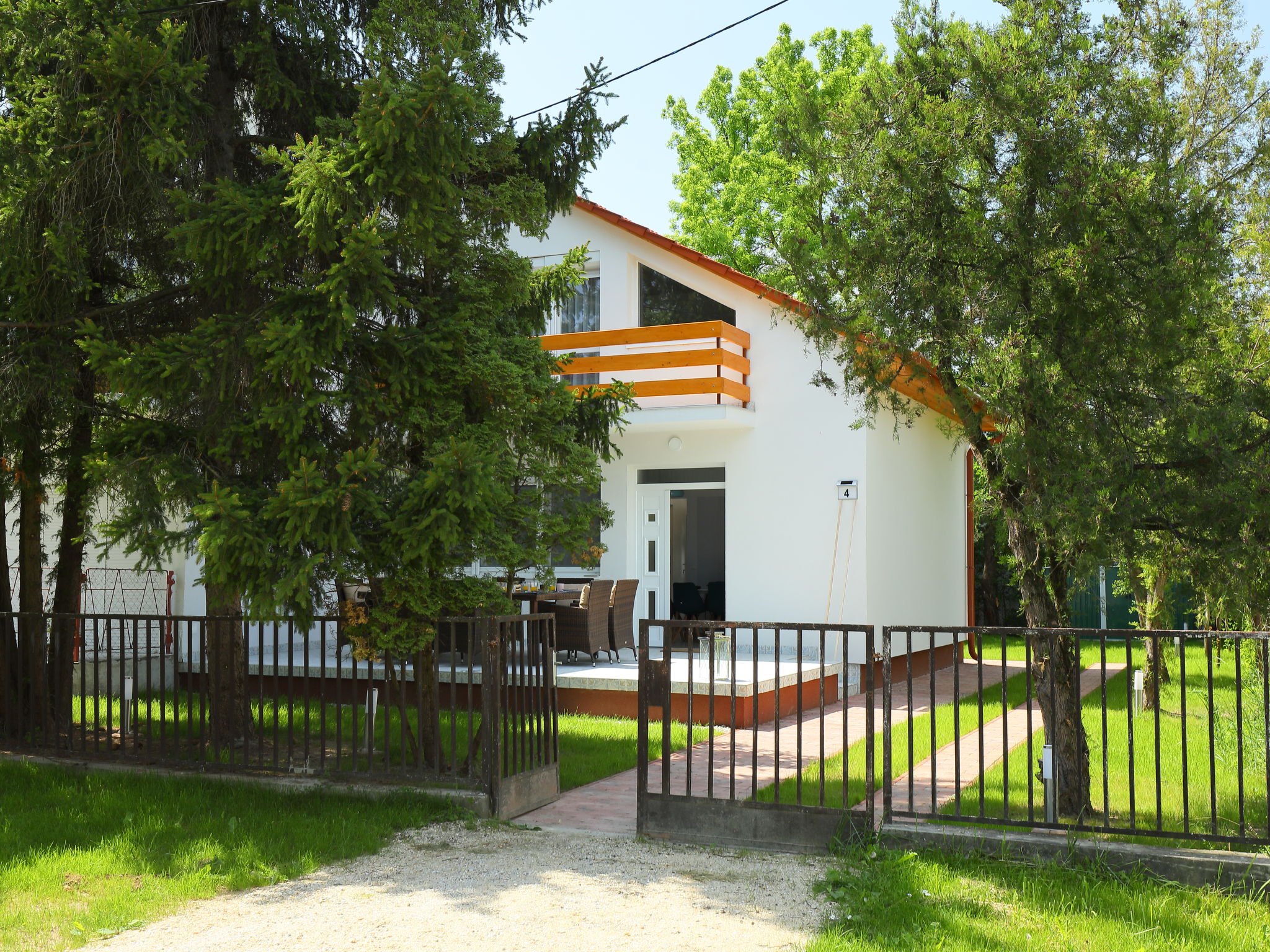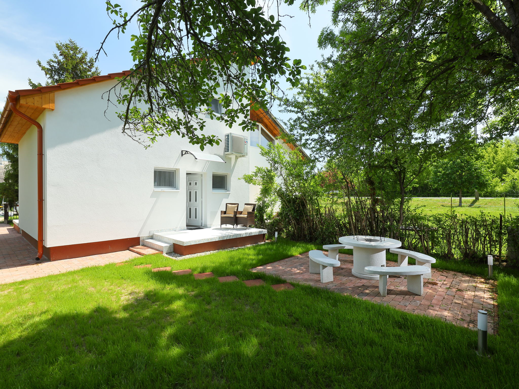 Balatonöszöd 30 km from SiĂłfok: Beautiful, cosy semi-detached house "Pixie", 2 storeys, renovated in 2020. In the resort, 250 m from the lake, 400 m from the beach. Private: property 400 m2 (fenced), well-kept garden trees, lawn for sunbathing. Patio, barbecue, fireplace. In the house: WiFi, air conditioning, washing machine. Grocery 1 km, supermarket 9 km, restaurant 450 m, bakery 2 km, bicycle rental 3 km, bus stop 100 m, grass beach 400 m, thermal baths "Csiszta" 28 km. Surf school 9 km, tennis 4 km, cycle lane 50 m, children's playground 500 m. Nearby attractions: Tihany 17 km, SiĂłfok Giant Wheels 29 km, Nezde Statue Park 9 km, Festetics Castle 61 km, SiĂłfok Zoo 37 km. Well-known lakes can easily be reached: HĂ©vĂz Thermal Bath 62 km.