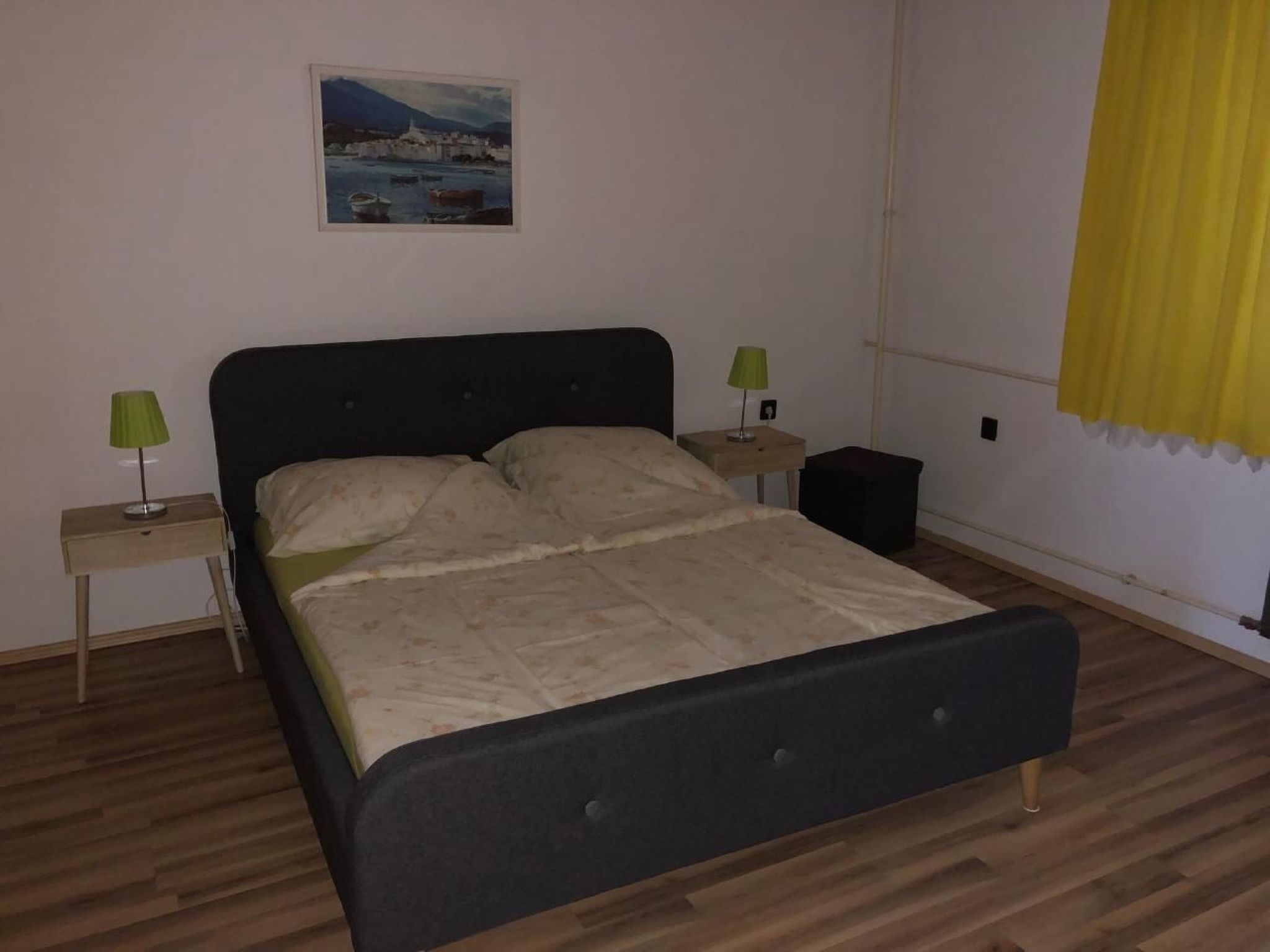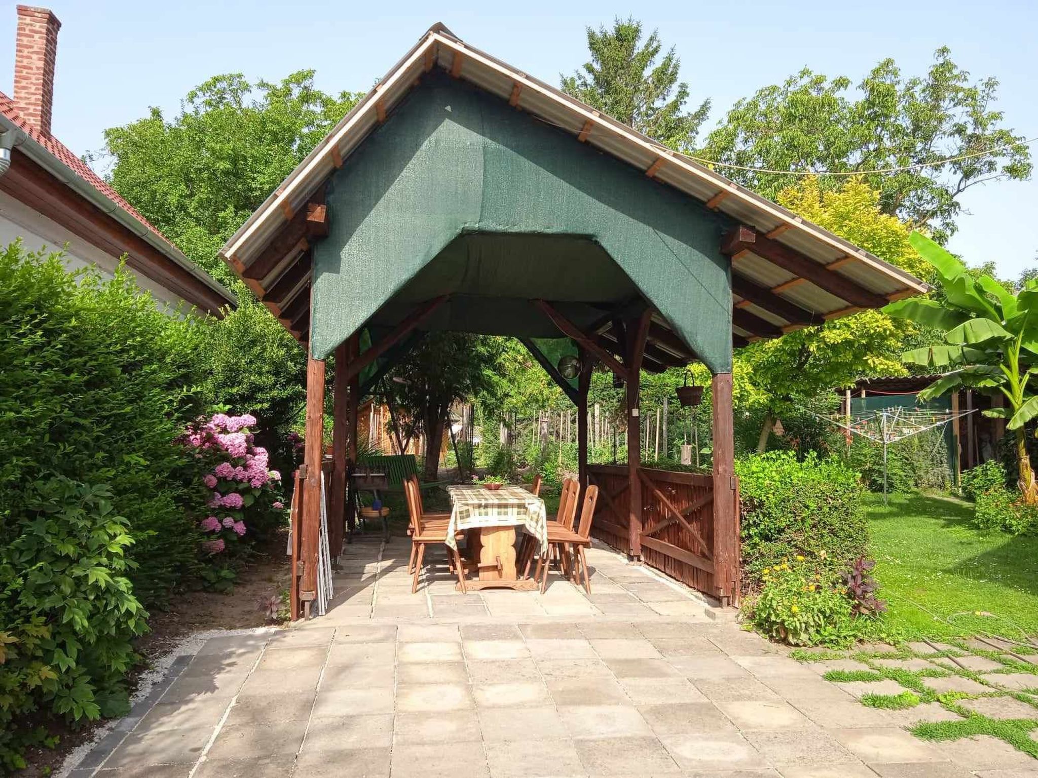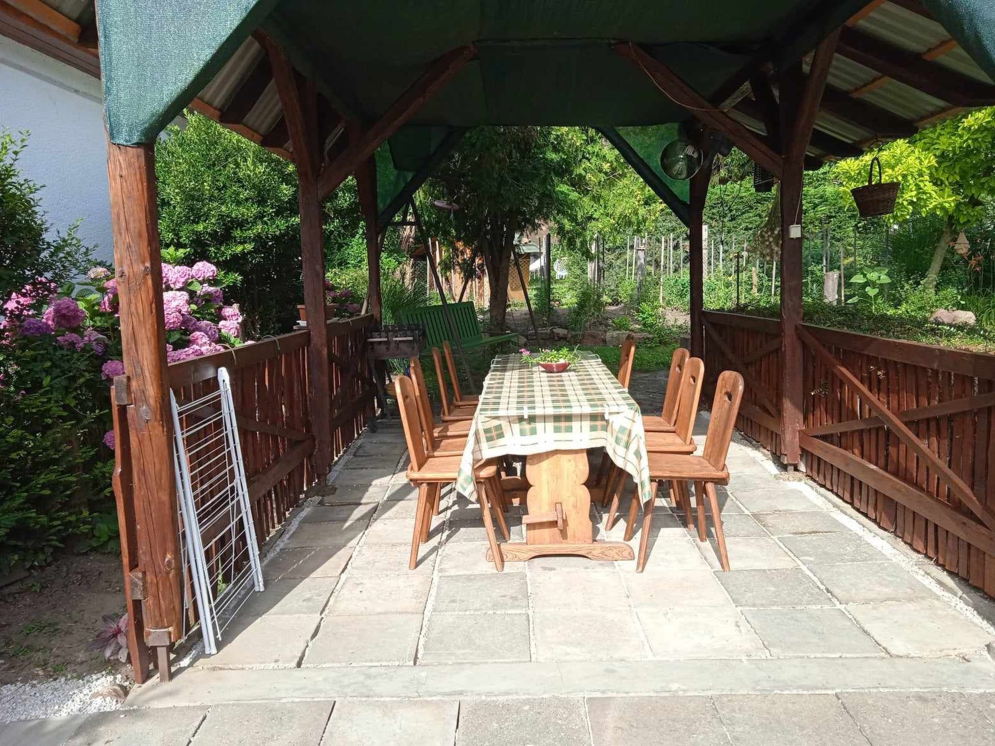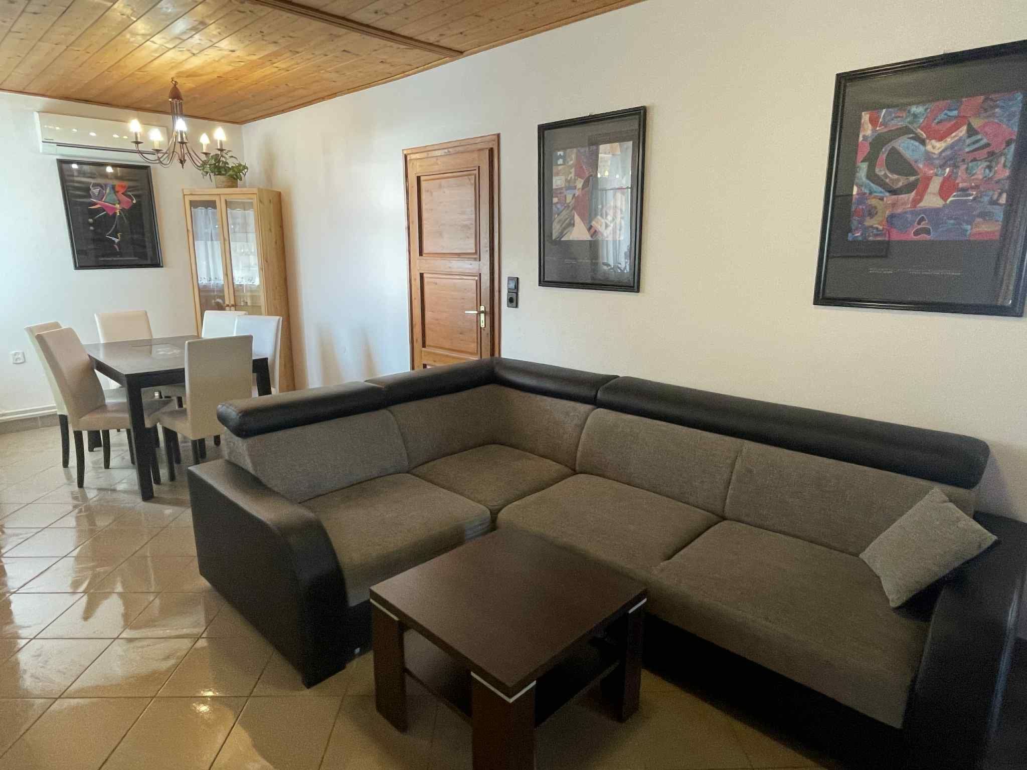 Welcome to your perfect holiday oasis! Just 300 metres from the sparkling waters of Lake Balaton, this beautiful, affordable holiday flat close to the beach in Fonyód on the southern shore of Lake Balaton offers the ideal retreat for 6-8 people. Enjoy the unique combination of comfort, proximity to the water and the idyllic tranquillity of Hungary that will make your stay unforgettable. Inside, a spacious living area of 120 m² awaits you, spread over the upper floor with two double bedrooms, a quadruple bedroom, a cosy living room complete with seating set, satellite TV and a dining area. The kitchen is fully equipped with a gas cooker, fridge and a German coffee machine, while the bathroom has a bath and WC, and there is also a separate WC. WLAN is included so you can stay connected while on holiday. The outdoor area is a dream come true for those seeking relaxation. The fenced and well-tended 600 m² garden plot is available for communal use and is dotted with meadows, fruit trees, flowers and shrubs. A covered terrace with garden furniture invites you to spend cosy hours and the barbecue facilities are ready for sociable evenings in the open air. There is parking for two cars in the courtyard and the owners live separately in the outbuilding to ensure their privacy. The surroundings of Fonyód leave nothing to be desired. In addition to the nearby beach only 300 metres away, you will find shops and restaurants just 100 metres away. The pullover market 200 metres away invites you to explore. Fonyód itself is known for its magnificent views and is the perfect starting point for excursions - be it to the Csisztapuszta thermal spa, the aquapark in Zalaegerszeg or the famous wine village of Badacsony, which is only a short boat trip away. Active holidaymakers can look forward to sailing, surfing, tennis, fishing and kilometres of cycle paths. Spend your well-deserved holiday in this tasteful, well-furnished flat, which impresses with its excellent location as well as its charm and comfort. Fall in love with the beauty of Balaton as you find a home away from home in this holiday flat. Book now and secure your place in a paradise that promises relaxation and adventure. Basic information - Pets allowed: none - is located in: Housing estate - Floor on which the object can be found: 1. floor - size of property: 300 m² - year of construction: 2010 - Year of the last complete renovation : 2022 - Number of bedrooms: 3 - Number of bathrooms: 1 Top features - WiFi - air conditioning: Everywhere - terrace - garden: For communal use - Total of private car parking spaces: 1 - ㄴ of which garage spaces: None - ㄴ of which carport spaces: None - ㄴ of which private outdoor parking spaces: 1 Sleeping bedroom 2 - double bed (1.80 m width) - 2x single bed - bedroom is dimmable bedroom 4 - double bed (1.80 m width) - bedroom is dimmable bedroom 6 - double bed (1.80 m width) - bedroom is dimmable Bathroom bathroom 2 - bath tub with shower - basin - toilet - daylight Sanitation facilities nearby - toilet Cooking/Living - coffee machine: coffee machine - fridge/freezer: fridge - stove: stove - oven - microwave - number of dining tables: 1 - number of seats: 8 - number of living rooms: 1 Entertainment - TV: TV, satellite TV Outside area - grill/barbecue: grill/barbecue Surroundings - view: sea/lake, garden, forrest, lawn - Grocery store: 300 m - restaurant: 300 m - train station: 200 m - airport: 35,0 km - motorway: 1,0 km - sea: 300 m - lake: 300 m - bicycle hire: 1 m