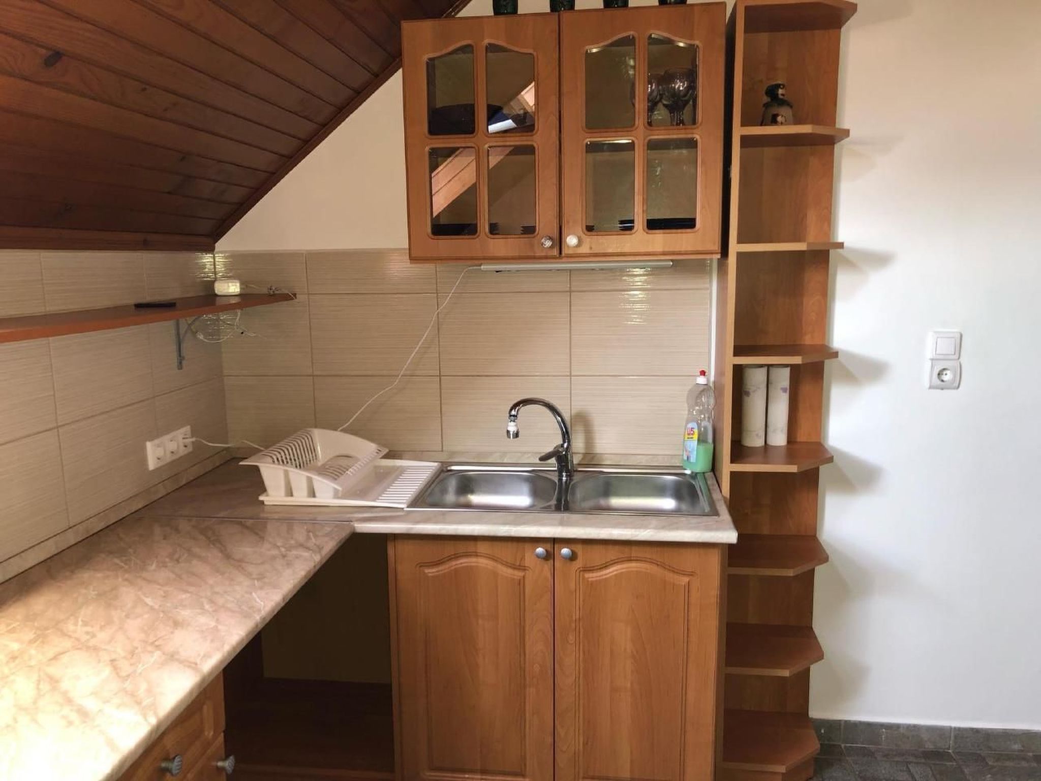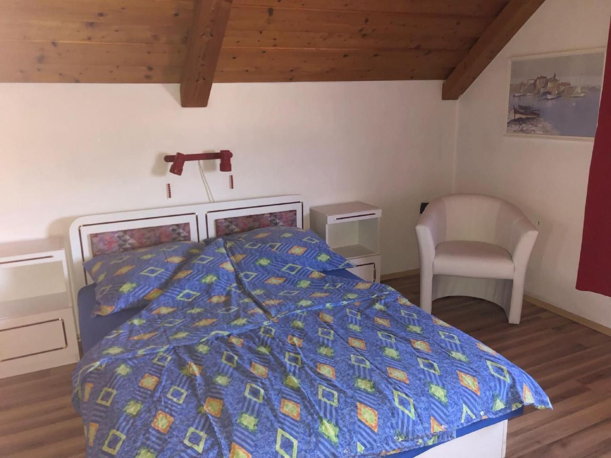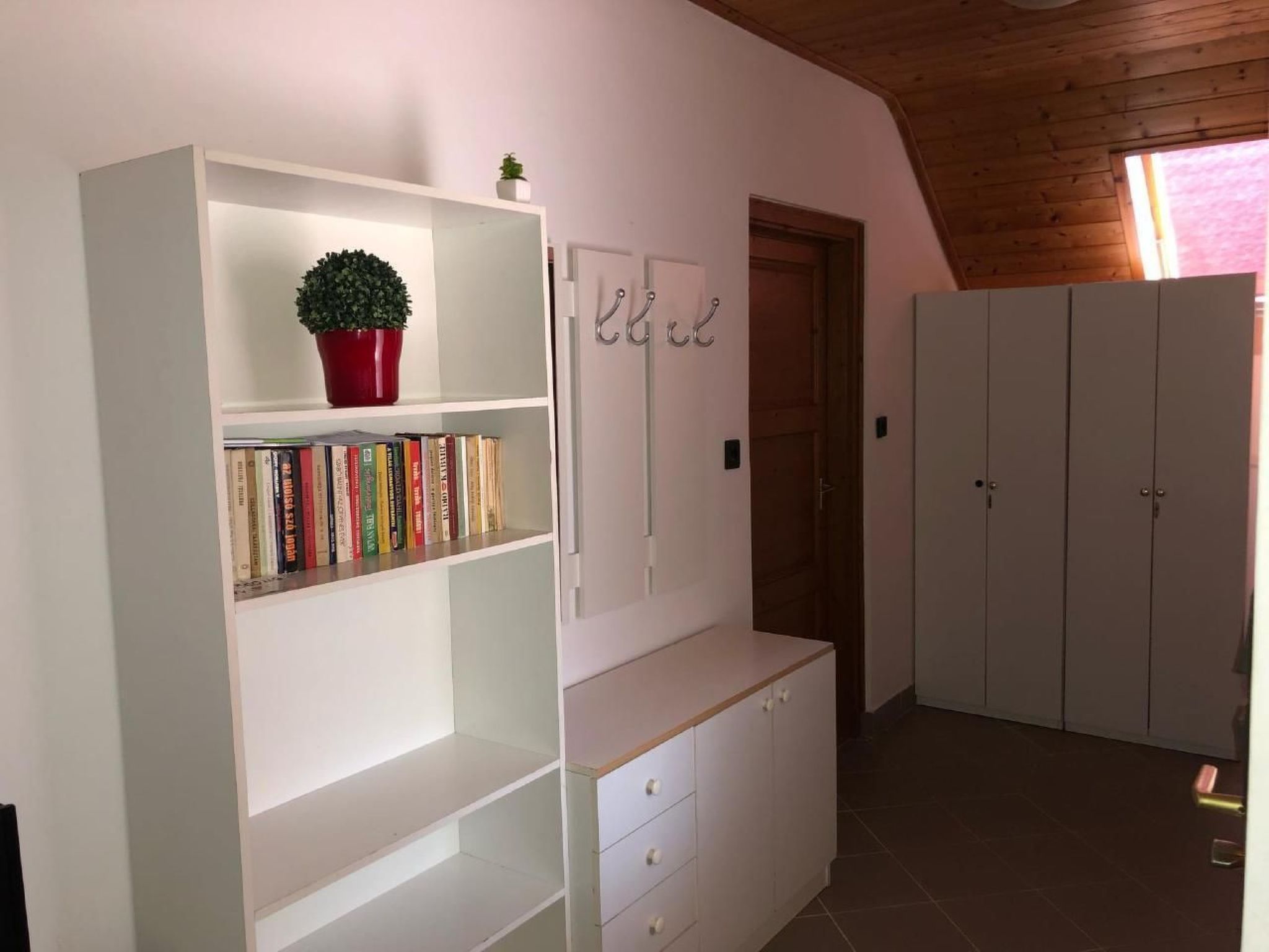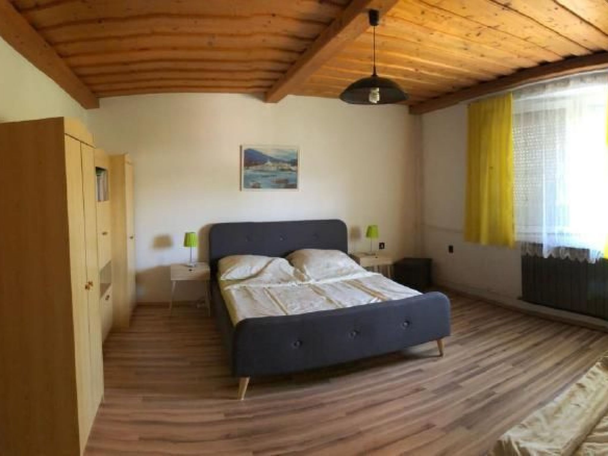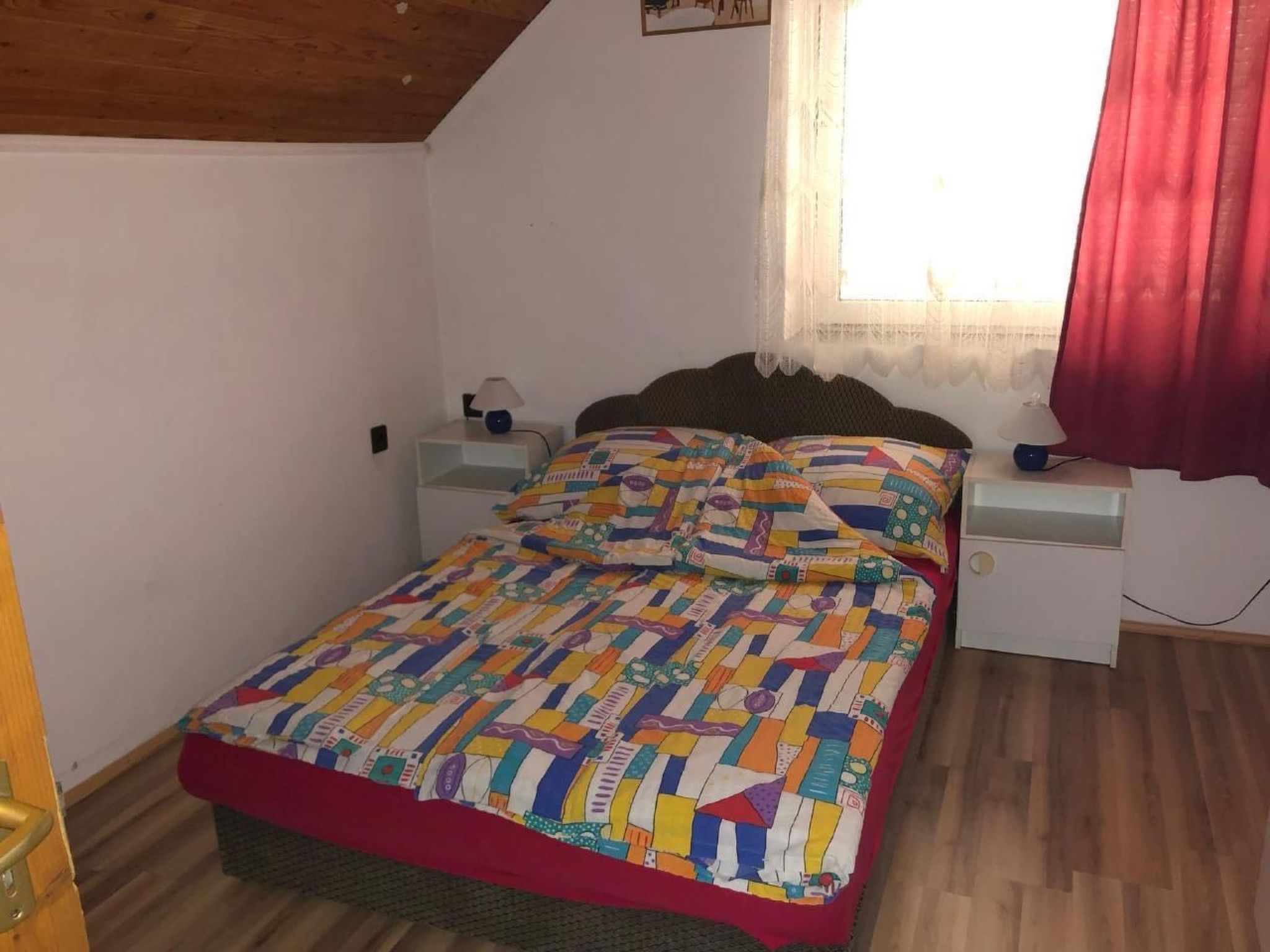 Welcome to your perfect holiday oasis! Just 300 metres from the sparkling waters of Lake Balaton, this beautiful, affordable holiday flat close to the beach in Fonyód on the southern shore of Lake Balaton offers the ideal retreat for 6-8 people. Enjoy the unique combination of comfort, proximity to the water and the idyllic tranquillity of Hungary that will make your stay unforgettable. Inside, a spacious living area of 120 m² awaits you, spread over the upper floor with two double bedrooms, a quadruple bedroom, a cosy living room complete with seating set, satellite TV and a dining area. The kitchen is fully equipped with a gas cooker, fridge and a German coffee machine, while the bathroom has a bath and WC, and there is also a separate WC. WLAN is included so you can stay connected while on holiday. The outdoor area is a dream come true for those seeking relaxation. The fenced and well-tended 600 m² garden plot is available for communal use and is dotted with meadows, fruit trees, flowers and shrubs. A covered terrace with garden furniture invites you to spend cosy hours and the barbecue facilities are ready for sociable evenings in the open air. There is parking for two cars in the courtyard and the owners live separately in the outbuilding to ensure their privacy. The surroundings of Fonyód leave nothing to be desired. In addition to the nearby beach only 300 metres away, you will find shops and restaurants just 100 metres away. The pullover market 200 metres away invites you to explore. Fonyód itself is known for its magnificent views and is the perfect starting point for excursions - be it to the Csisztapuszta thermal spa, the aquapark in Zalaegerszeg or the famous wine village of Badacsony, which is only a short boat trip away. Active holidaymakers can look forward to sailing, surfing, tennis, fishing and kilometres of cycle paths. Spend your well-deserved holiday in this tasteful, well-furnished flat, which impresses with its excellent location as well as its charm and comfort. Fall in love with the beauty of Balaton as you find a home away from home in this holiday flat. Book now and secure your place in a paradise that promises relaxation and adventure. Basic information - Pets allowed: none - is located in: Housing estate - Floor on which the object can be found: 1. floor - size of property: 300 m² - year of construction: 2010 - Year of the last complete renovation : 2022 - Number of bedrooms: 3 - Number of bathrooms: 1 Top features - WiFi - air conditioning: Everywhere - terrace - garden: For communal use - Total of private car parking spaces: 1 - ㄴ of which garage spaces: None - ㄴ of which carport spaces: None - ㄴ of which private outdoor parking spaces: 1 Sleeping bedroom 2 - double bed (1.80 m width) - 2x single bed - bedroom is dimmable bedroom 4 - double bed (1.80 m width) - bedroom is dimmable bedroom 6 - double bed (1.80 m width) - bedroom is dimmable Bathroom bathroom 2 - bath tub with shower - basin - toilet - daylight Sanitation facilities nearby - toilet Cooking/Living - coffee machine: coffee machine - fridge/freezer: fridge - stove: stove - oven - microwave - number of dining tables: 1 - number of seats: 8 - number of living rooms: 1 Entertainment - TV: TV, satellite TV Outside area - grill/barbecue: grill/barbecue Surroundings - view: sea/lake, garden, forrest, lawn - Grocery store: 300 m - restaurant: 300 m - train station: 200 m - airport: 35,0 km - motorway: 1,0 km - sea: 300 m - lake: 300 m - bicycle hire: 1 m
