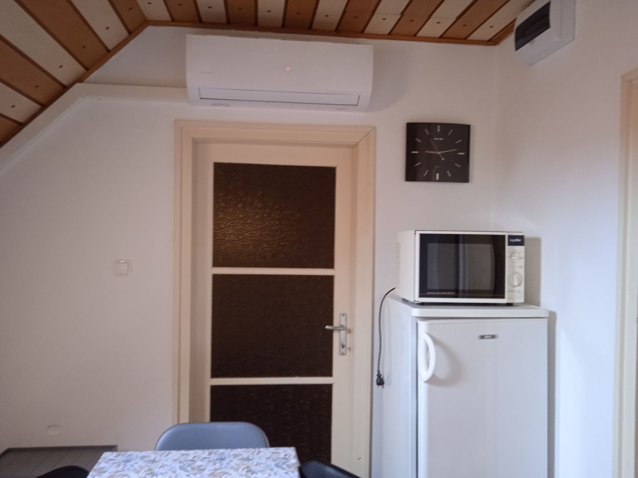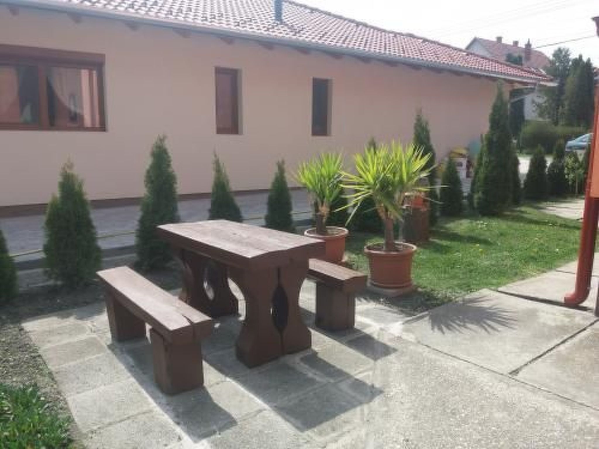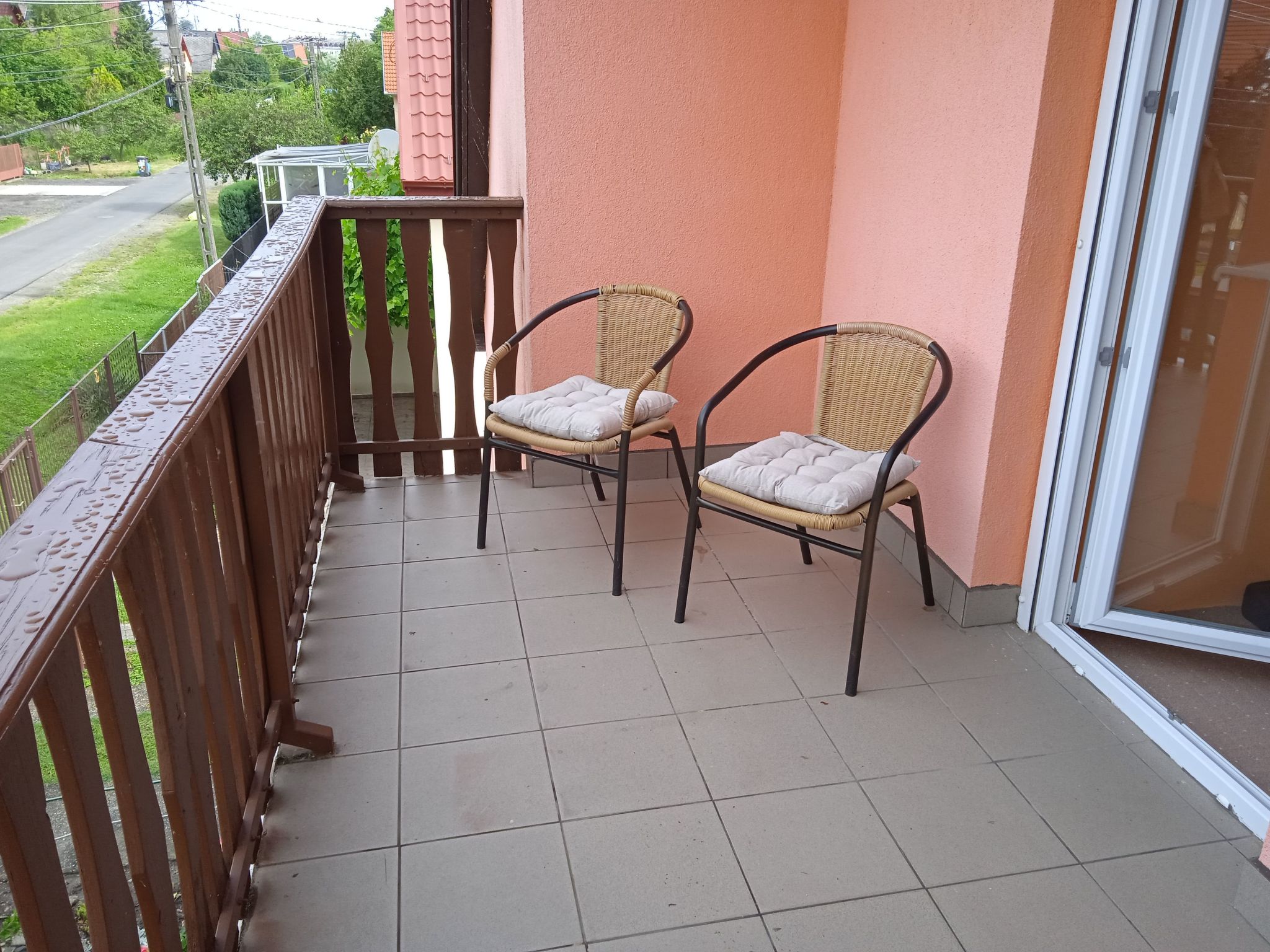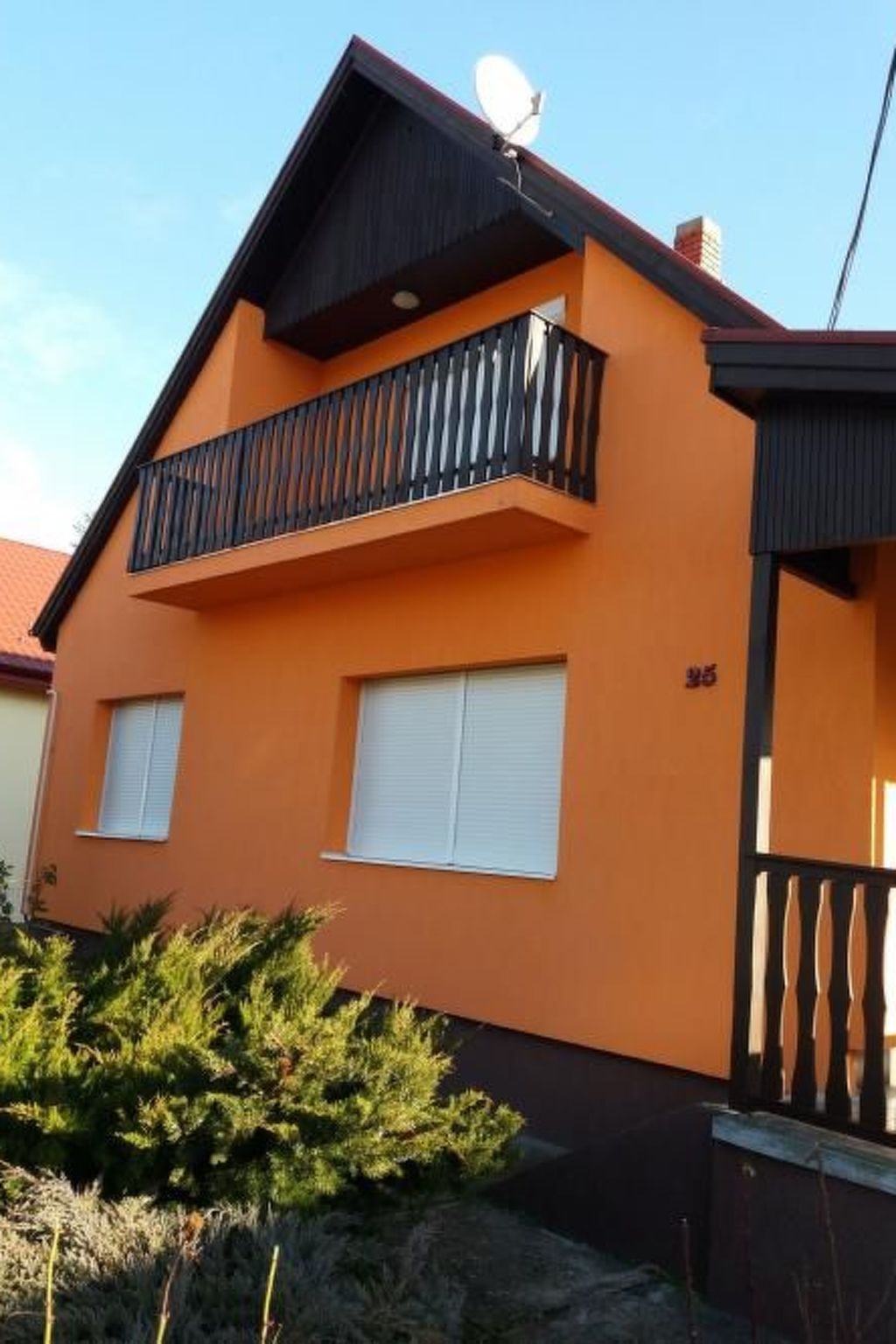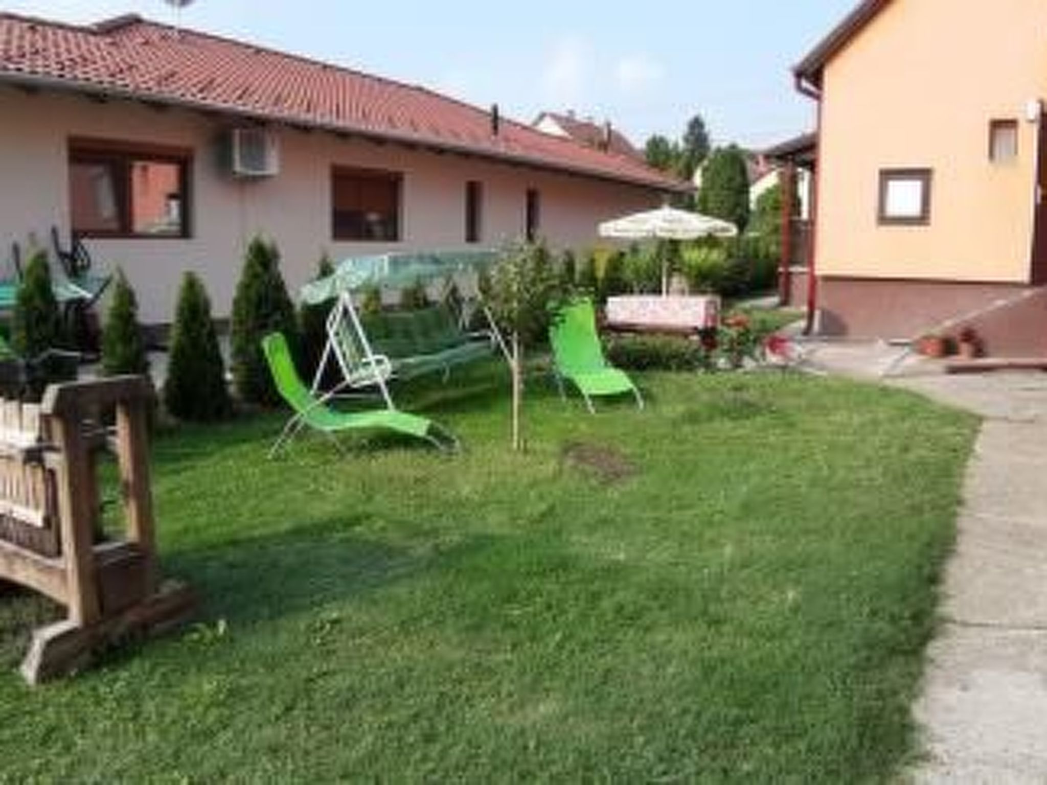 Ground floor: living room with lounge suite and satellite TV and exit to the furnished terrace. 1 double bedroom. 1 room with pull-out couch for 2 children. Well-equipped kitchen with dining area. Bathroom with bathtub, separate WC. Terrace with garden furniture. Equipment: gas cooker with electric oven, coffee machine, fridge, microwave. Terrace with garden furniture. Barbecue facilities. Upstairs: 1 double bedroom with 2 sofas, 1 double bedroom with pull-out sofa bed for 2 people. Kitchen with dining area. 1 bathroom with bath and WC. Balcony with garden furniture. Equipment: gas cooker, coffee machine, fridge, microwave. Barbecue facilities. Info: Practically furnished two-storey holiday home in FonyĂłd only 600 m from the beach. The family house consists of 2 apartments with a common entrance. If you don't feel like eating out in one of the many good restaurants, you can also barbecue in the garden. Large fenced garden plot for sole use. Owner does not live there. Car park in front of the house. Included: final cleaning, bed linen, water, gas and electricity. Pets: not allowed. Why FonyĂłd? - Because FonyĂłd, situated in beautiful surroundings, is the ideal summer holiday destination. - Because all the lidos in FonyĂłd are free. - Because the largest and most extensive weekly markets on the entire southern shore of the lake take place in FonyĂłd three times a week. - Because Badacsony, famous far and wide for its wines, can be reached from FonyĂłd in just 20 minutes by boat. Basic information - Pets allowed: none - is located in: Complex - type of building: Detached house - Floor on which the object can be found: 1. floor - Year of the last complete renovation : 2022 - Number of bedrooms: 4 - Number of bathrooms: 2 Top features - air conditioning: In part - balcony - terrace - garden: For sole use Sleeping bedroom 2 - 2x single bed bedroom 4 - 2x single bed bedroom 6 - double sofa bed for 2 people bedroom 8 - double sofa bed for 2 people Bathroom bathroom 2 - bath tub - toilet bathroom 4 - bath tub - toilet Cooking/Living - fridge/freezer: fridge - microwave - number of dining tables: 2 - number of seats: 8 - number of living rooms: 1 - living room is dimmable Utility - washing machine: For sole use in the object Outside area - grill/barbecue: grill/barbecue Surroundings - Nearest town centre: 500 m - Grocery store: 500 m - restaurant: 500 m - train station: 600 m - port: 600 m - beach: 600 m