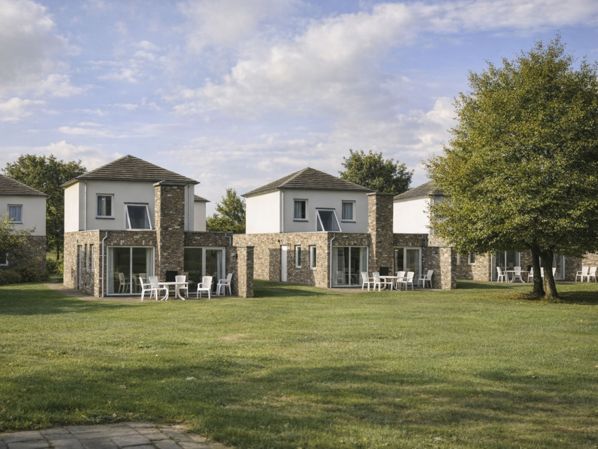 Gulpen 18 km from Maastricht: Comfortable resort "Bungalowpark Landsrade", surrounded by trees and fields. Outside the resort, 3 km from the centre of Gulpen, in a quiet position, 50 m from the edge of the forest, in the countryside. For shared use: meadow. Tennis (extra), table tennis, children's playground, petting farm. In the complex: reception, billiard table. Central parking spaces. Supermarket 2 km, thermal baths "Thermae 2000" 15 km. Golf course (18 hole) 1.3 km. Nearby attractions: Gemeentegrot Valkenburg 15 km, Labyrint Drielandenpunt 18 km, Vrijthof 21 km, Nationaal Park De Eifel (DE) 68 km. Hiking paths: G10 Gulpen-Wittem-Reijmerstok 8 km. Please note: the photograph shows a typical example. Additional accommodations can be booked. All houses/apartments are individually designed/furnished.