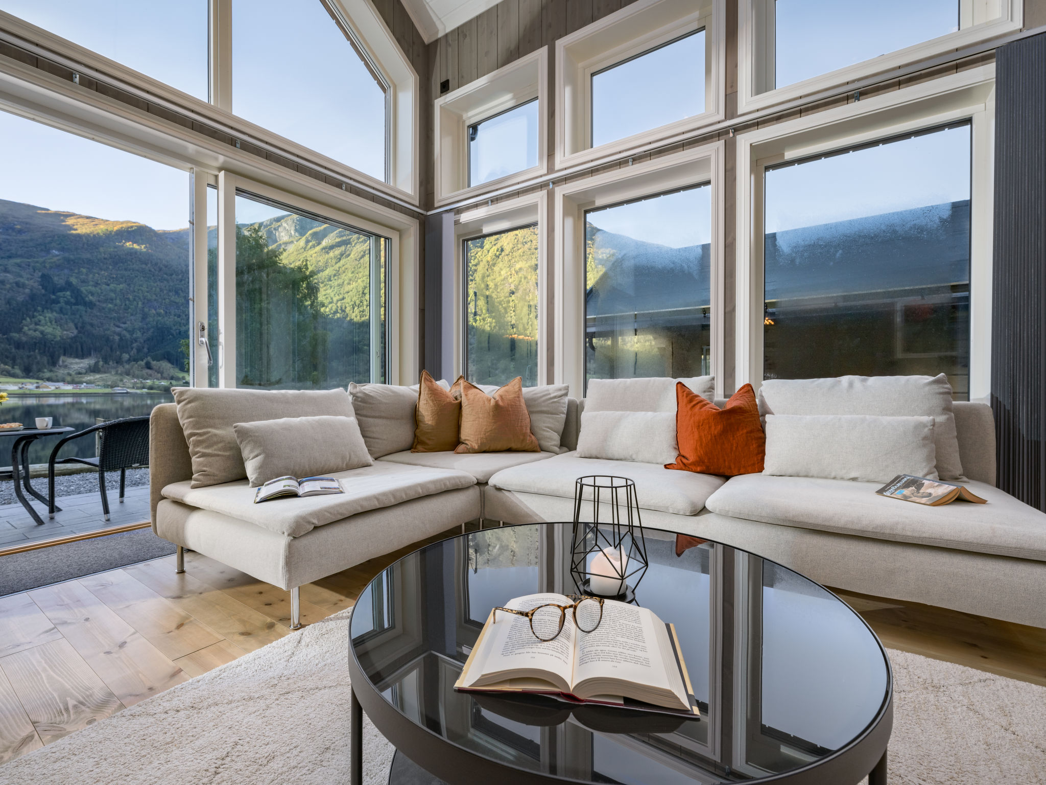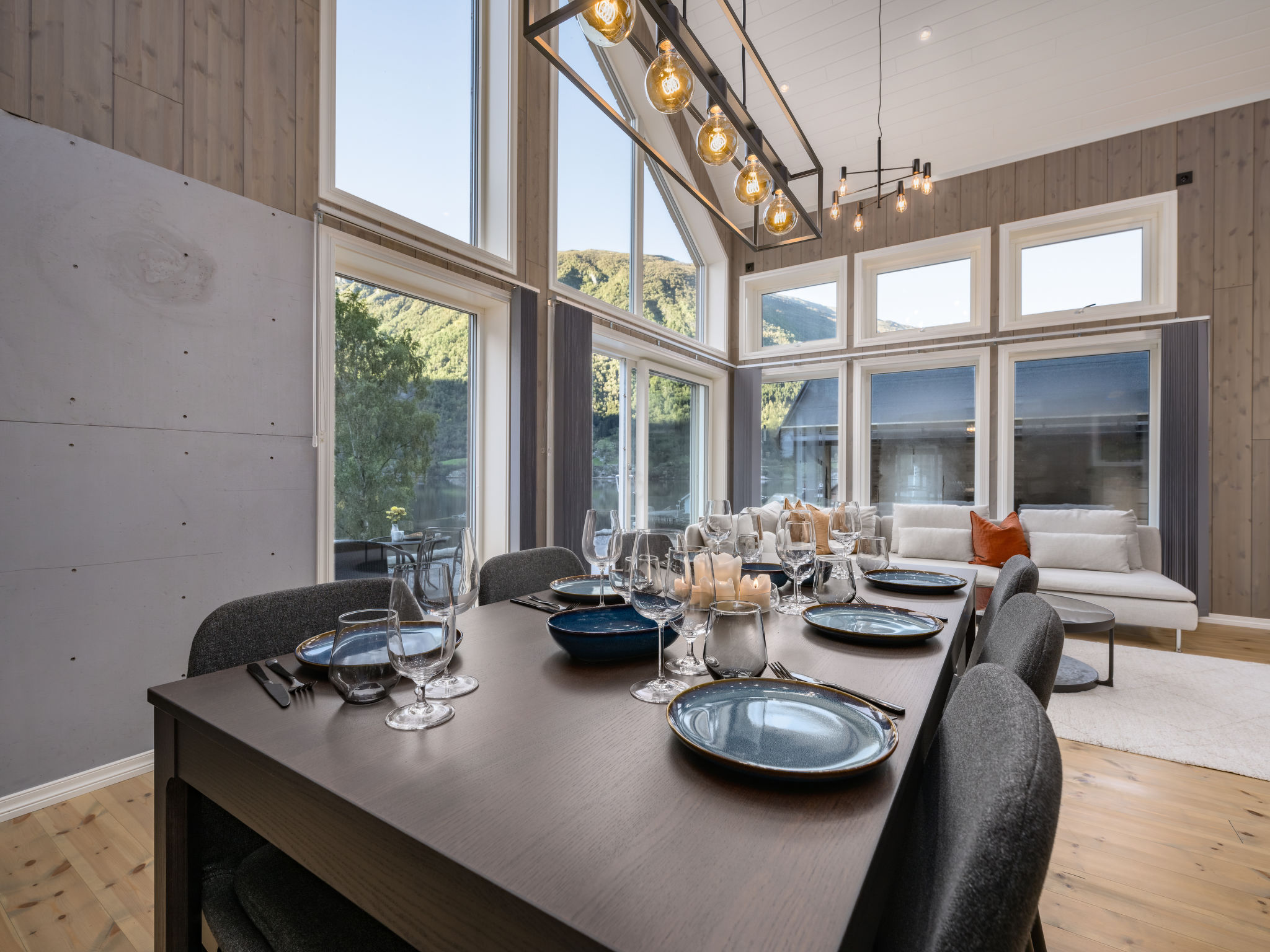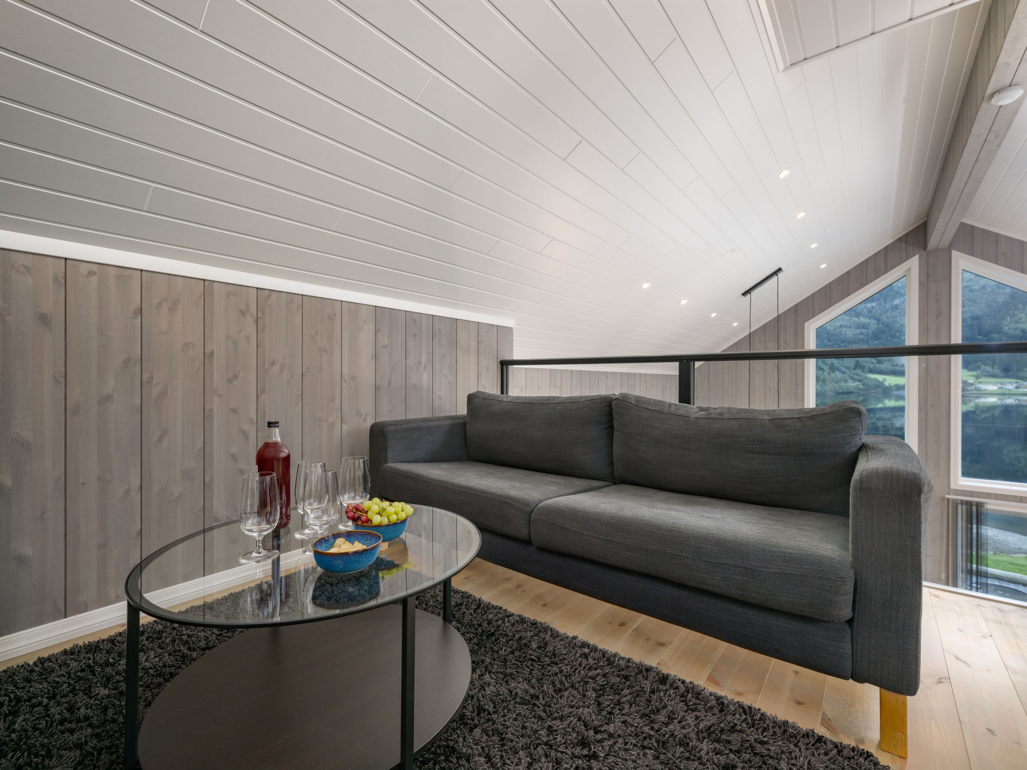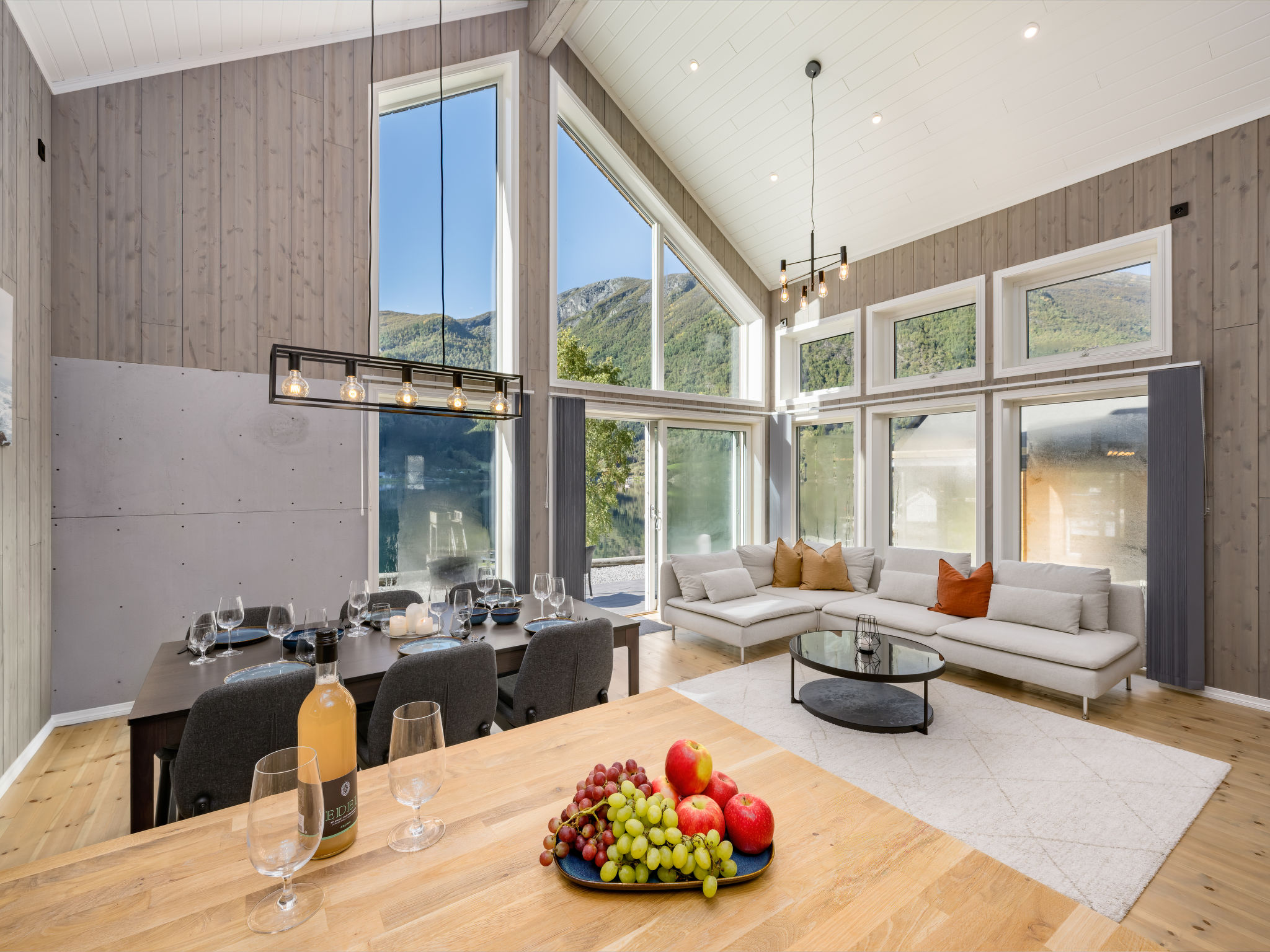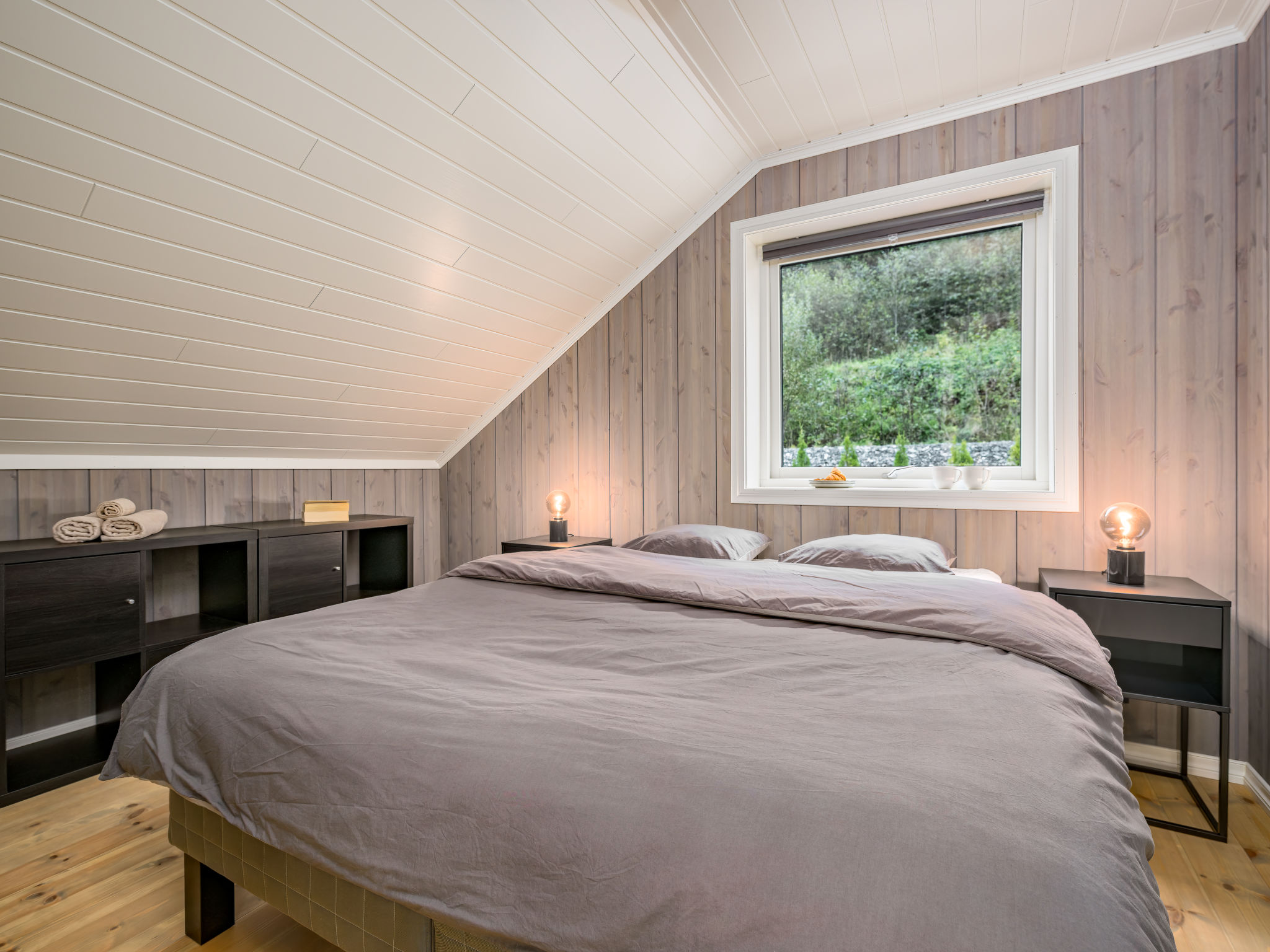 "Mathias", 6-room chalet 115 m2 on 2 levels. Bright, tasteful furnishings: open living/dining room with TV and heating stove. 1 room with 1 double bed (160 cm, length 200 cm). 1 room with 1 bed (90 cm, length 200 cm). Open kitchen (oven, dishwasher, 4 induction hot plates, toaster, kettle, microwave, freezer, electric coffee machine) with dining table. Shower/WC. Upper floor: open living room. 1 room with 1 double bed (160 cm, length 200 cm). 1 room with 2 beds (80 cm, length 200 cm). Beautiful panoramic view of the sea, the mountains and fjord. Facilities: washing machine, sauna. Internet (WiFi, free). Please note: non-smokers only. 924531169