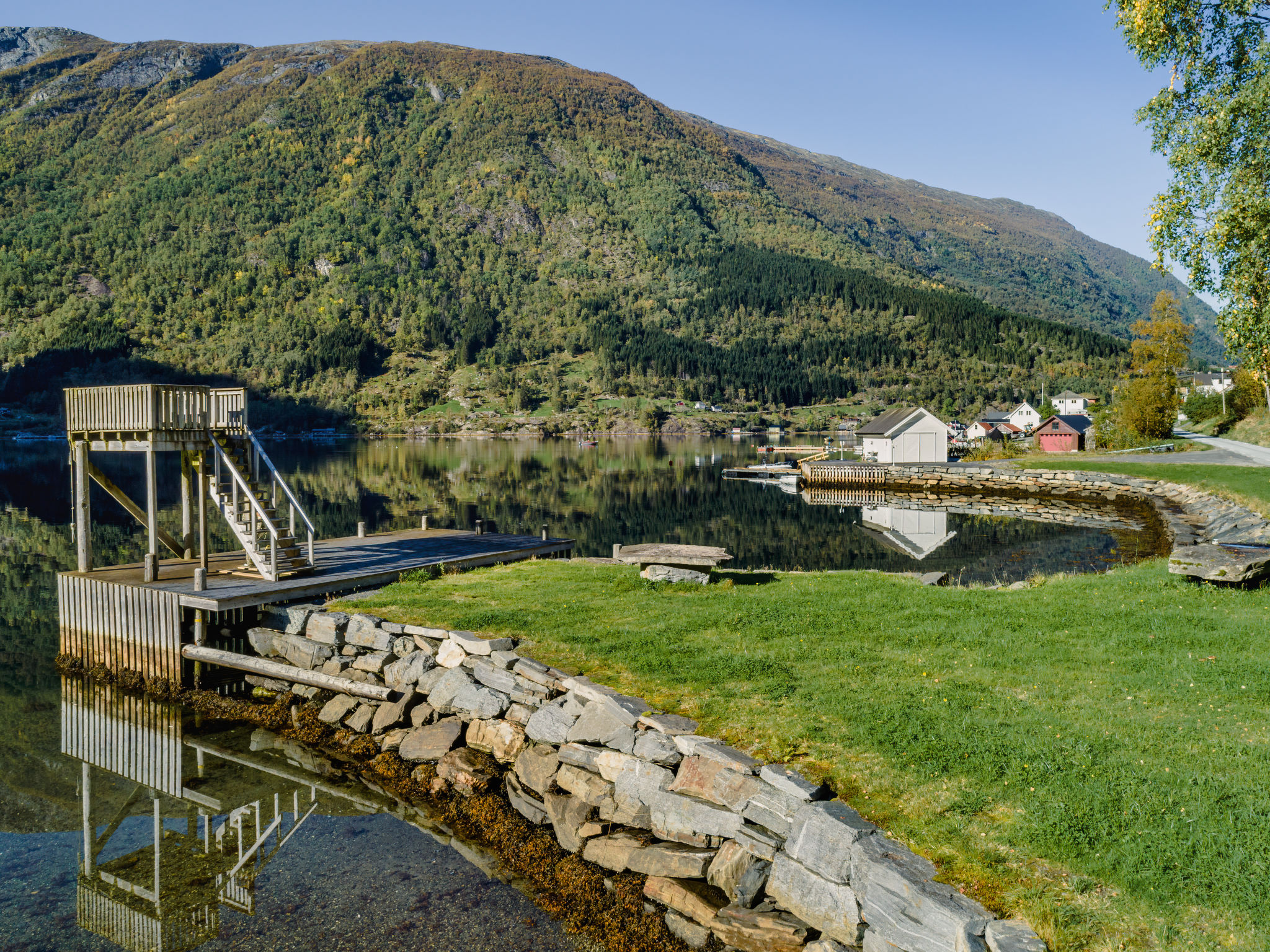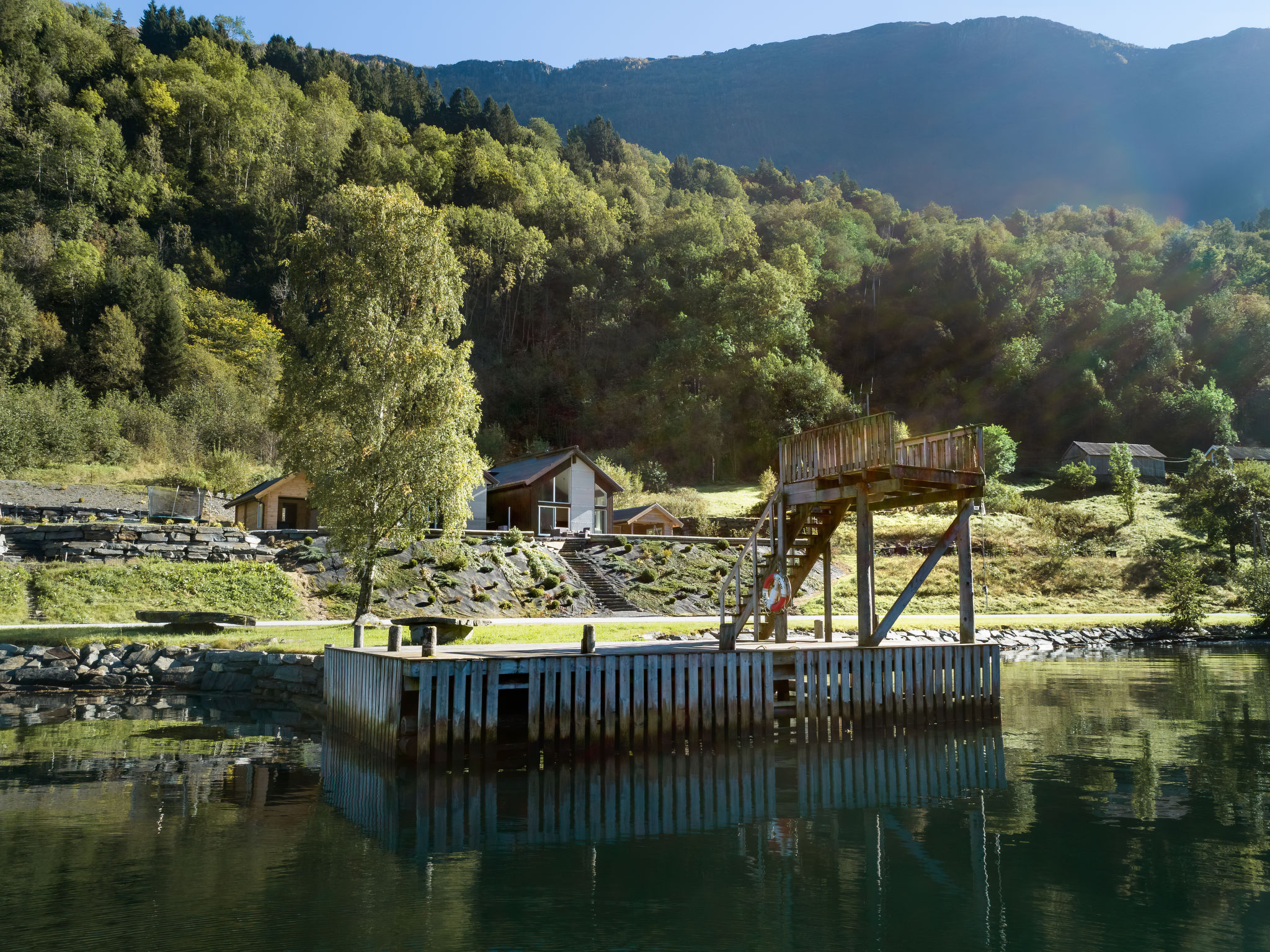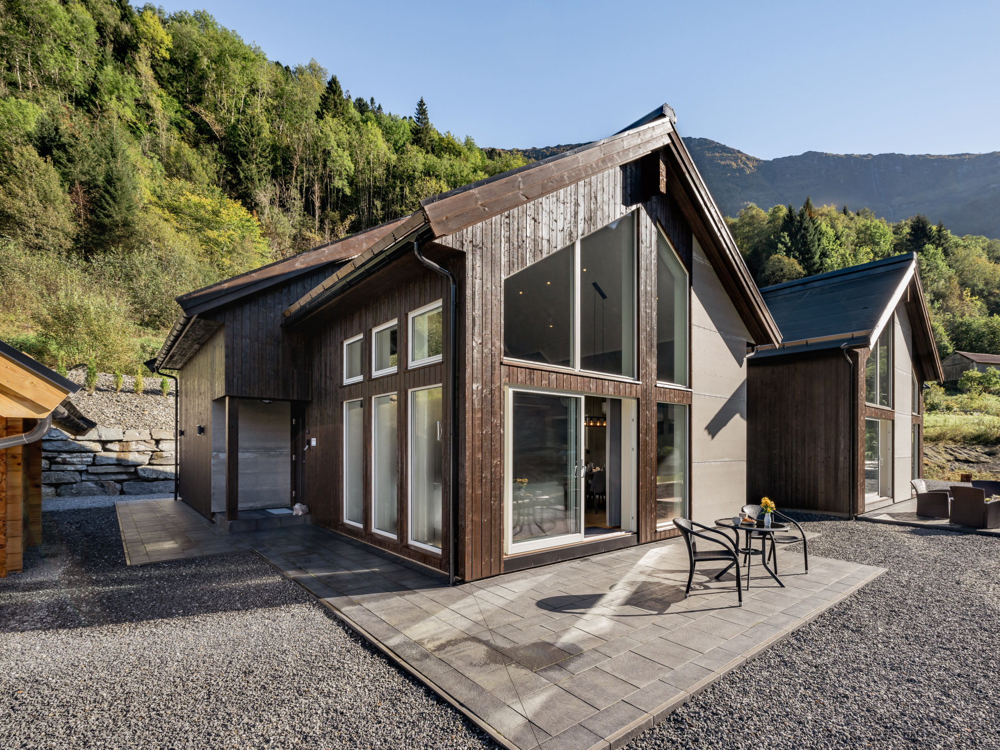 Very modern certified fishing house "Mathias", 4 m a.s.l., 2 storeys, semi-detached, built in 2022. 20 km from the centre of Vik, 190 km from the centre of Bergen, 30 m from the sea, 30 m from the fijord, road to cross. For shared use: property. Barbecue house, bathing jetty fish-processing table. Private: terrace (8 m2), garden furniture. Motor access to the house. Parking (for 3 cars). Shop 3 km, supermarket 22 km, bus stop "Vikøyri" 21 km, sandy beach 30 m. Fishing possibilities 30 m. Nearby attractions: Gudvangen 92 km, Flåm 112 km. Please note: Property ref. NO1881.614.1 is situated on the same property.