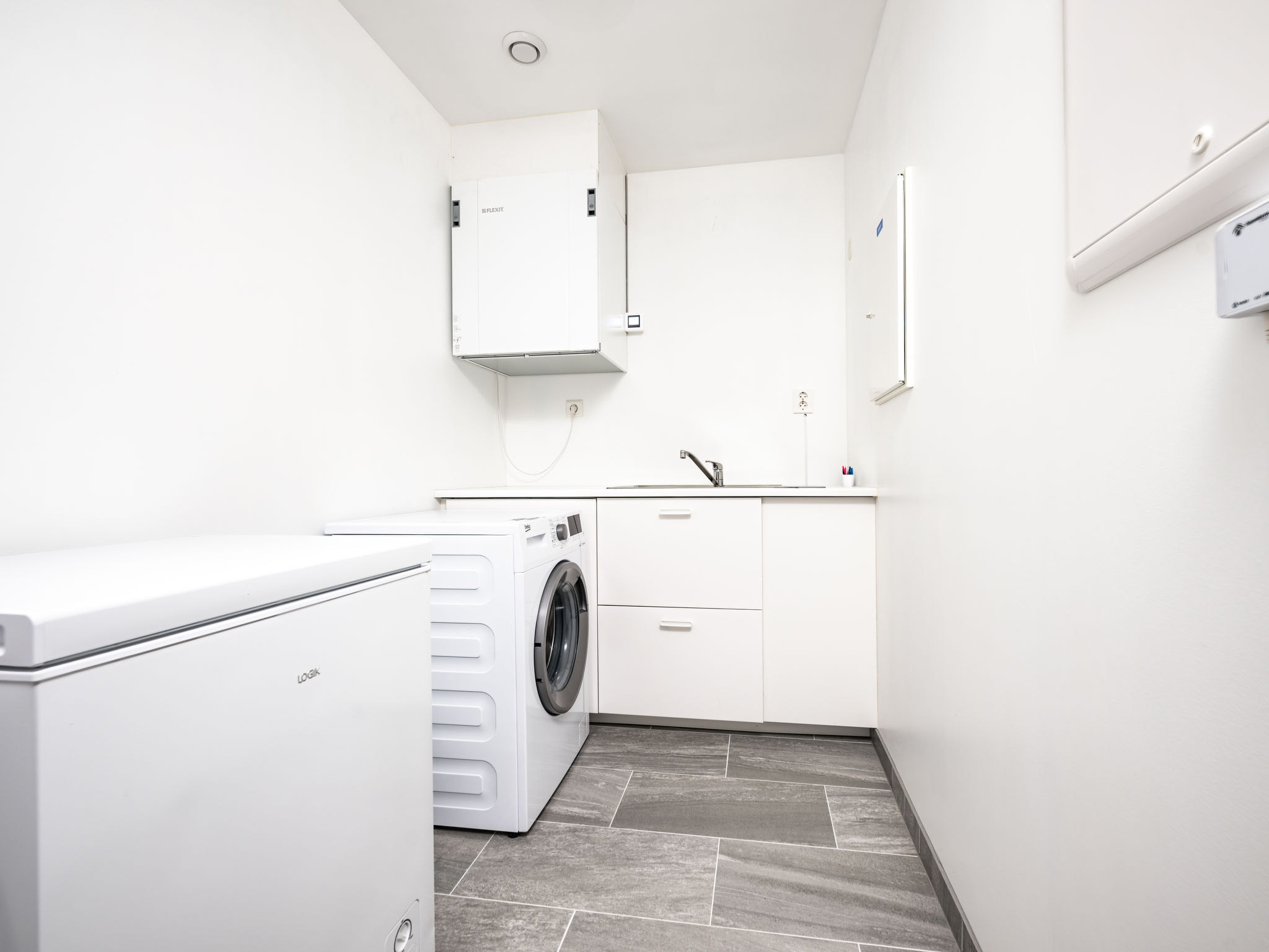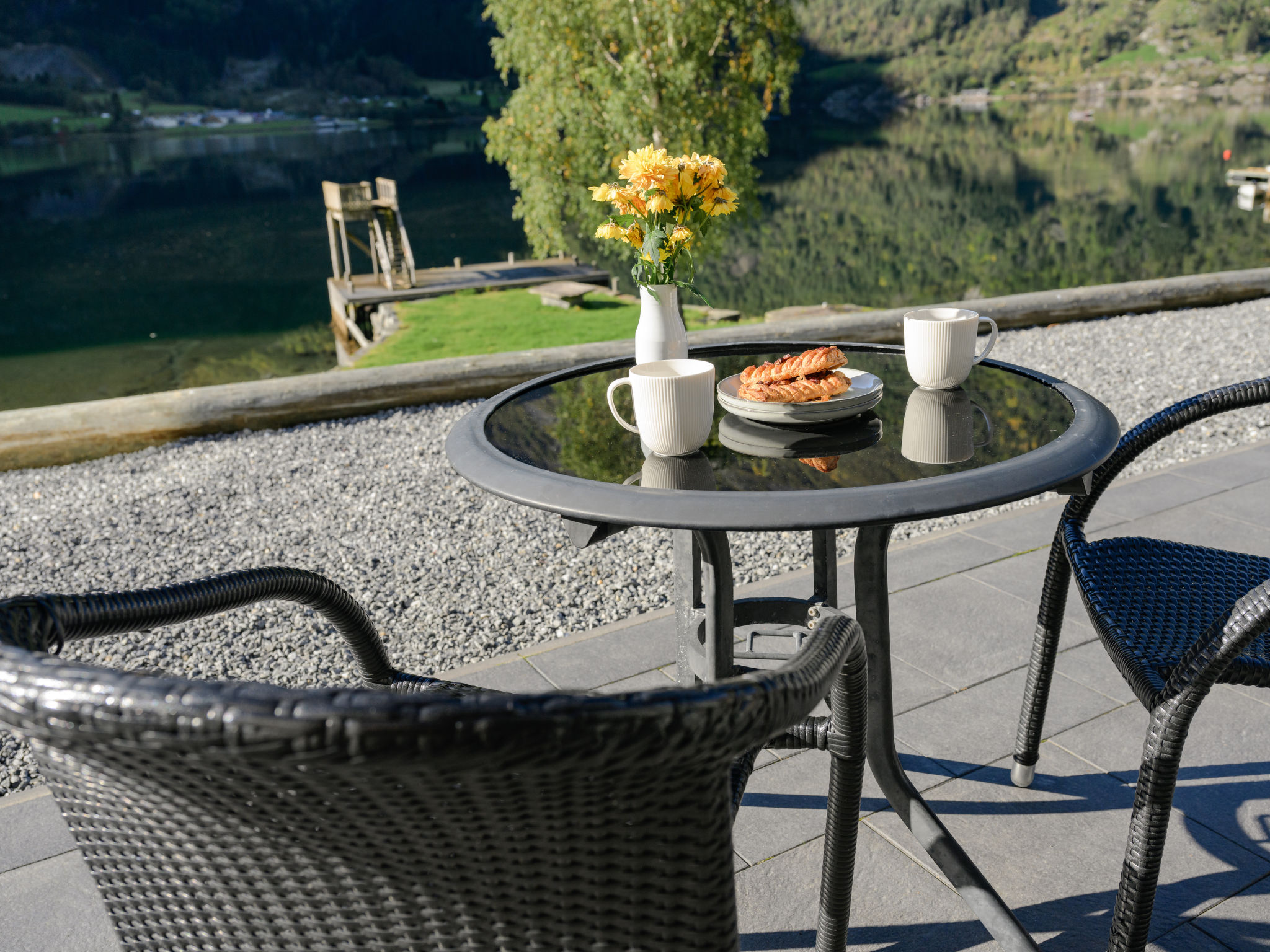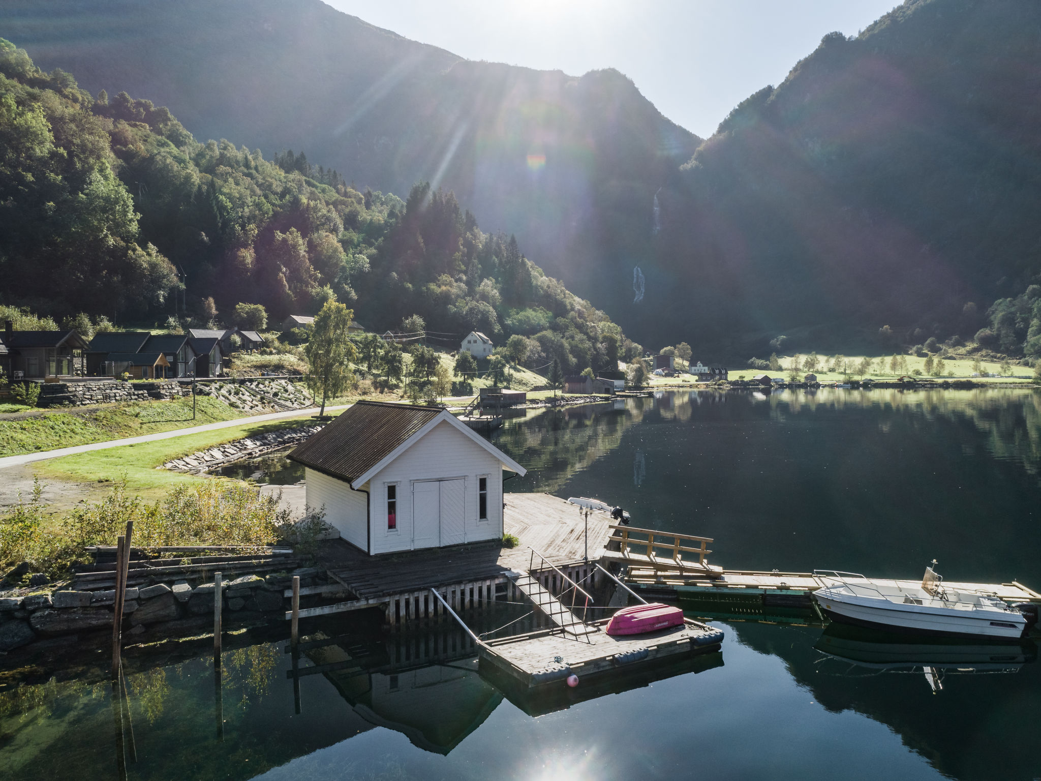 Very modern certified fishing house "Mathias", 4 m a.s.l., 2 storeys, semi-detached, built in 2022. 20 km from the centre of Vik, 190 km from the centre of Bergen, 30 m from the sea, 30 m from the fijord, road to cross. For shared use: property. Barbecue house, bathing jetty fish-processing table. Private: terrace (8 m2), garden furniture. Motor access to the house. Parking (for 3 cars). Shop 3 km, supermarket 22 km, bus stop "Vikøyri" 21 km, sandy beach 30 m. Fishing possibilities 30 m. Nearby attractions: Gudvangen 92 km, Flåm 112 km. Please note: Property ref. NO1881.614.1 is situated on the same property.