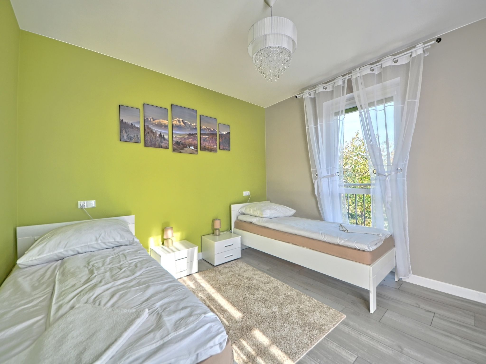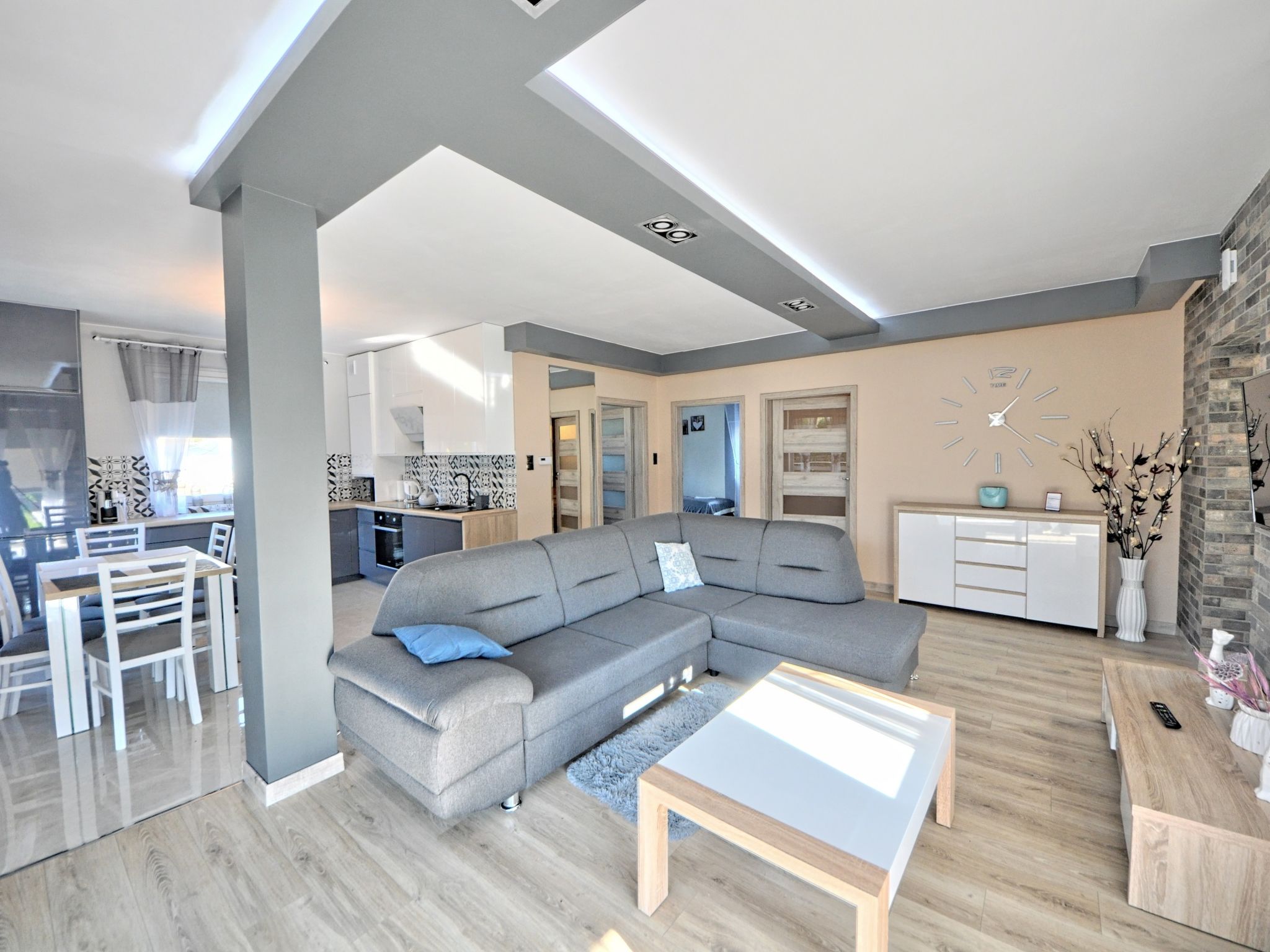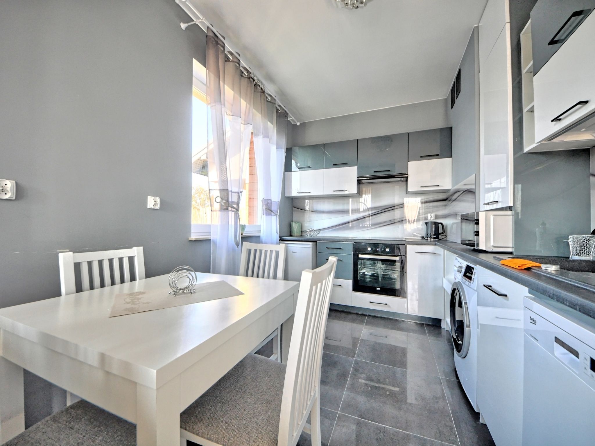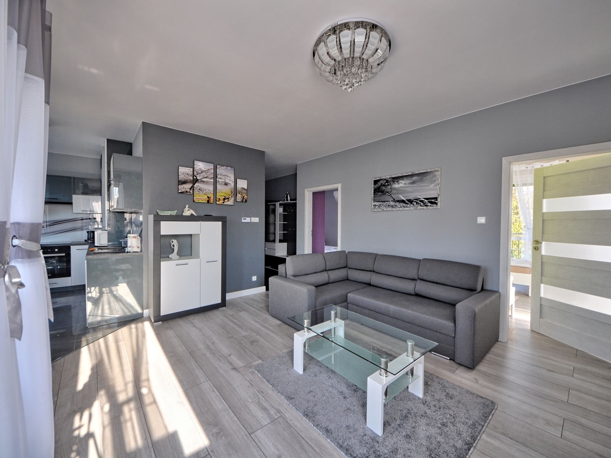 3-room apartment 68 m2. Comfortable and modern furnishings: living/sleeping room with 1 sofabed and TV. 1 room with 2 beds. 1 room with 1 double bed. Large, open kitchen (oven, dishwasher, microwave, electric coffee machine). Bath/shower/WC. Gas heating. Beautiful view of the countryside. Facilities: washing machine, iron, hair dryer. Internet (WiFi). Please note: maximum 1 pet/ dog allowed. Smoke alarm. Available: ironing board.