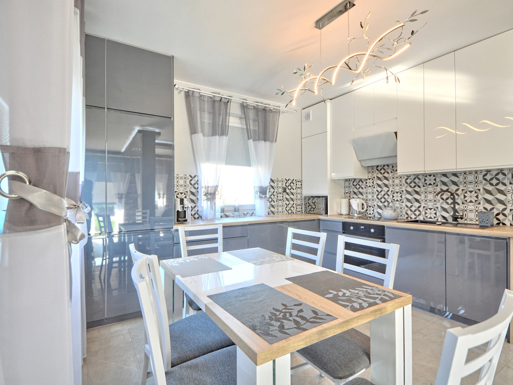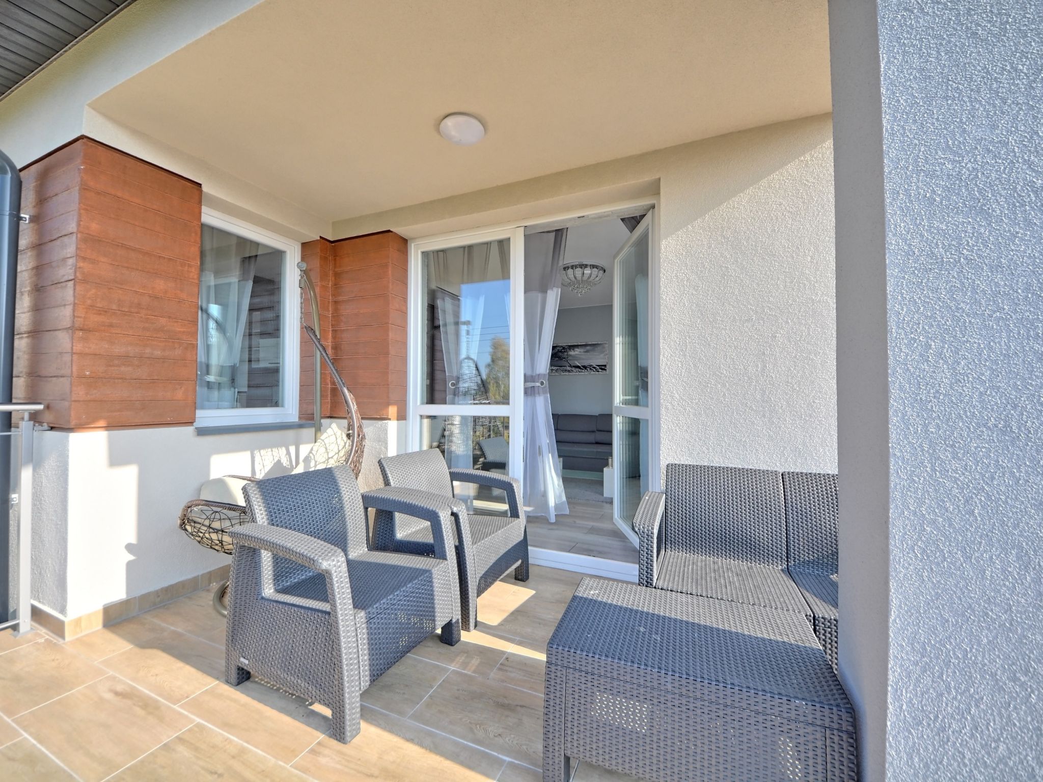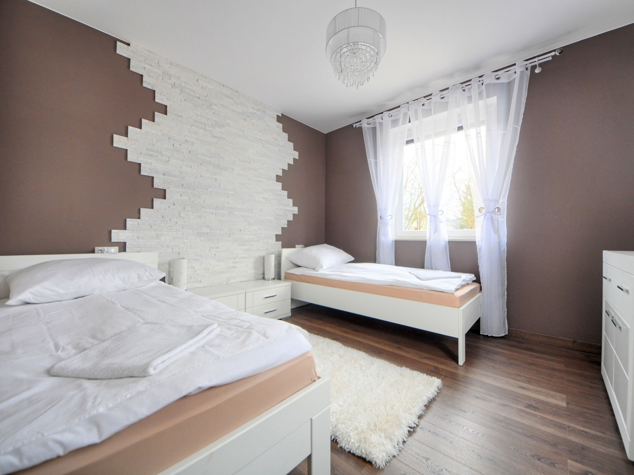 3-room apartment 68 m2. Comfortable and modern furnishings: living/sleeping room with 1 sofabed and TV. 1 room with 2 beds. 1 room with 1 double bed. Large, open kitchen (oven, dishwasher, microwave, electric coffee machine). Bath/shower/WC. Gas heating. Beautiful view of the countryside. Facilities: washing machine, iron, hair dryer. Internet (WiFi). Please note: maximum 1 pet/ dog allowed. Smoke alarm. Available: ironing board.