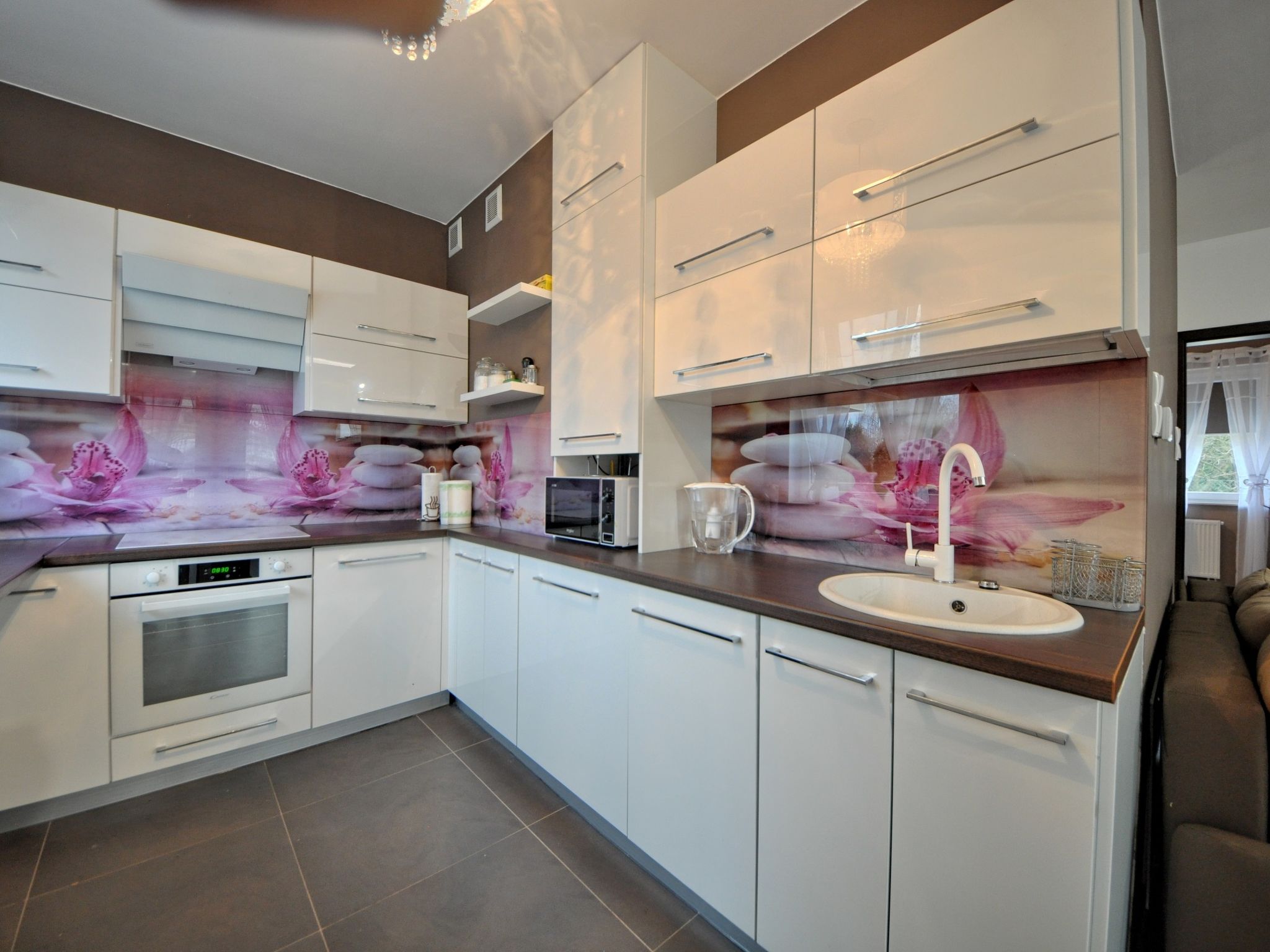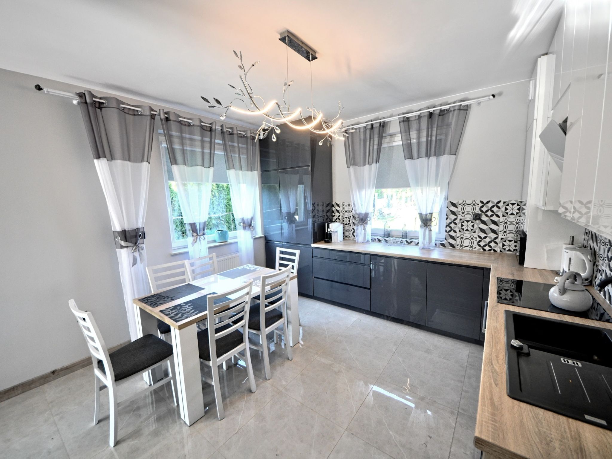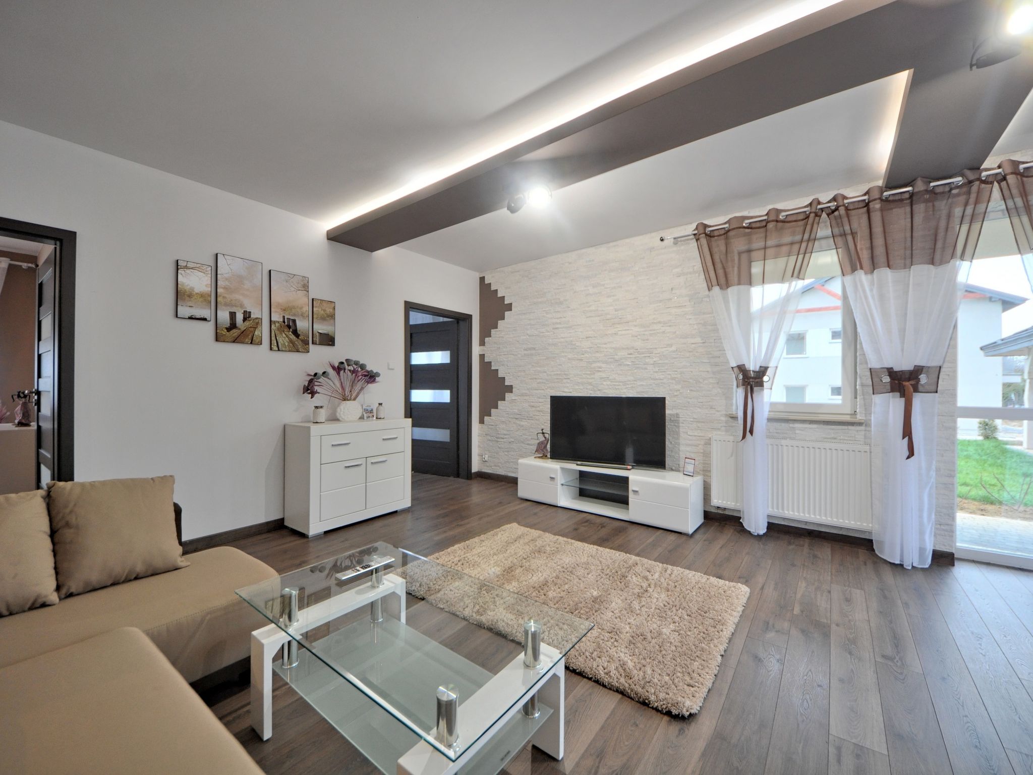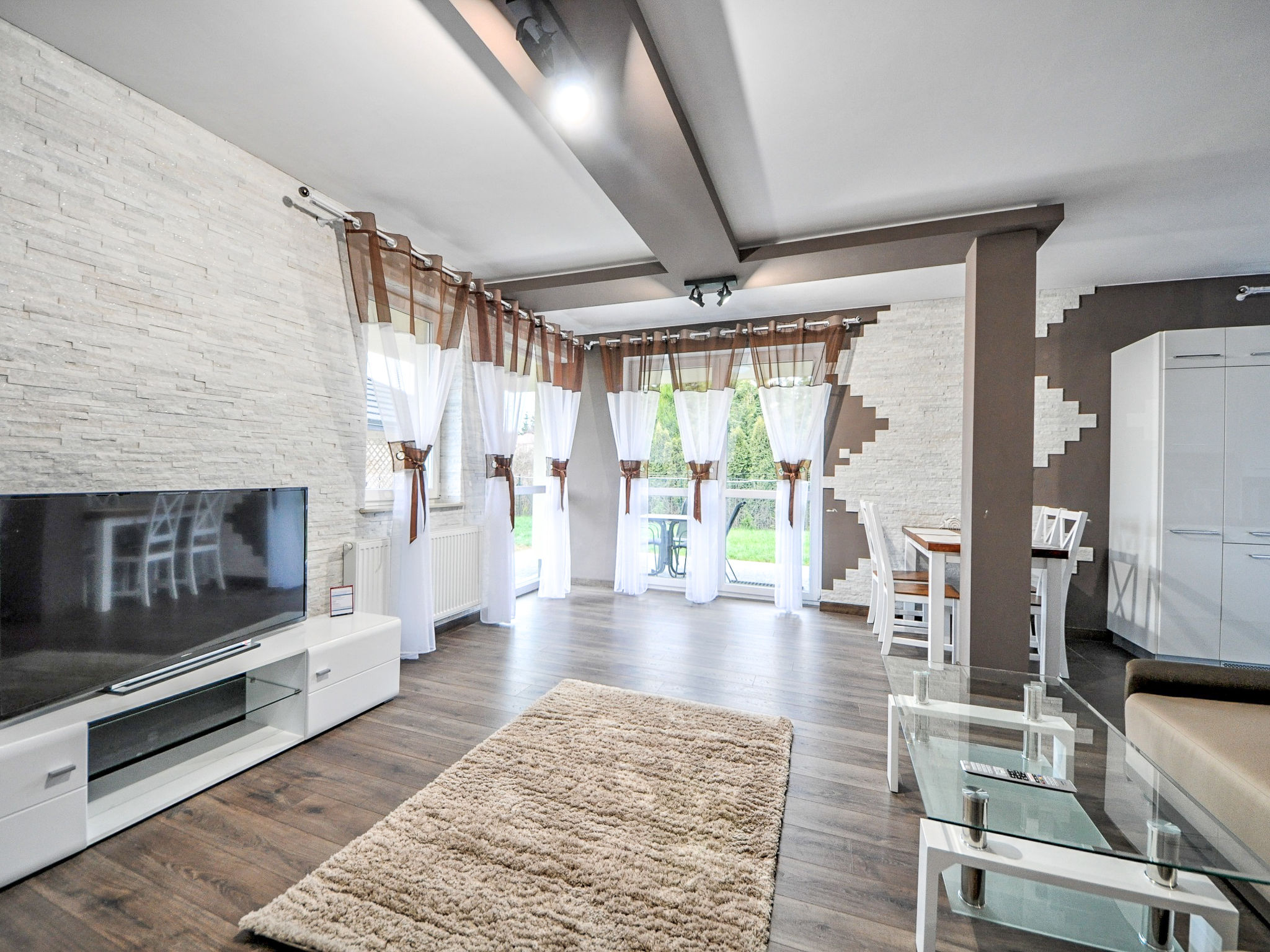 3-room apartment 68 m2. Comfortable and modern furnishings: living/sleeping room with 1 sofabed and TV. 1 room with 2 beds. 1 room with 1 double bed. Large, open kitchen (oven, dishwasher, microwave, electric coffee machine). Bath/shower/WC. Gas heating. Beautiful view of the countryside. Facilities: washing machine, iron, hair dryer. Internet (WiFi). Please note: maximum 1 pet/ dog allowed. Smoke alarm. Available: ironing board.