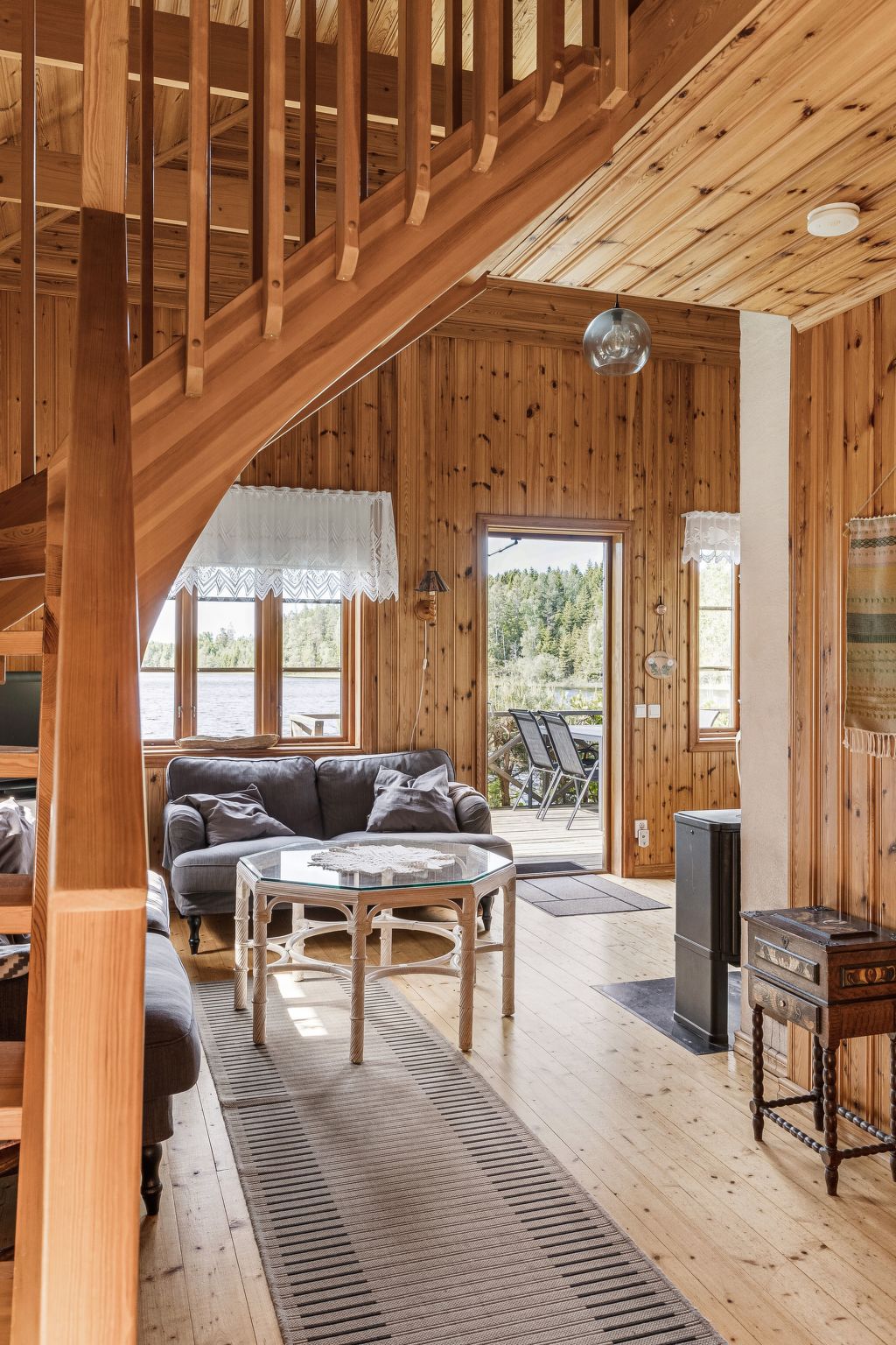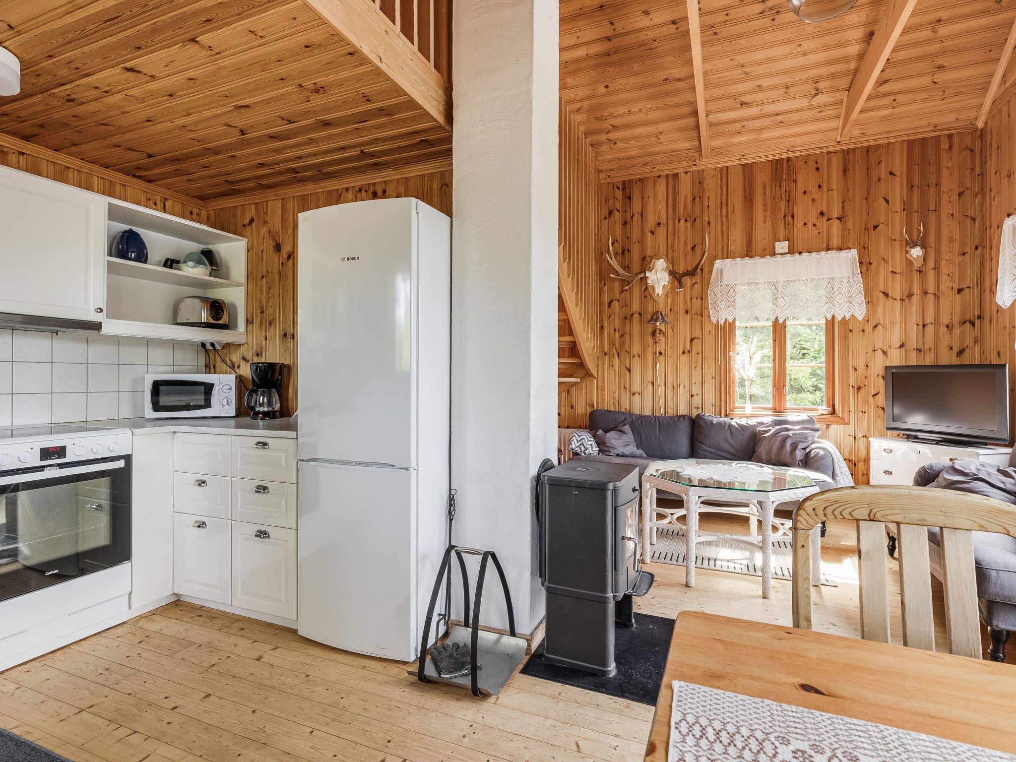 "Kasen Sjökanten", 3-room house 70 m2 on 2 levels. Wooden furniture furnishings: living room with Scandinavian wood stove and satellite TV. Exit to the terrace. 1 room with 2 beds. Open kitchen (3 hot plates, oven, dishwasher, toaster, kettle, microwave, freezer, grill, electric coffee machine) with dining table. Shower/WC. Electric heating. Upper floor: 1 room with sloping ceilings with 2 beds and 1 double sofabed. Wooden floors. Terrace. Terrace furniture, barbecue (portable). Beautiful view of the lake. Facilities: iron, baby cot. Please note: non-smoking house. Smoke alarm, fire extinguisher. Freezer approx. 80 l. Bed layout is flexible. There are more sleeping options available than the maximum number of people allowed which may, however, not be exceeded.