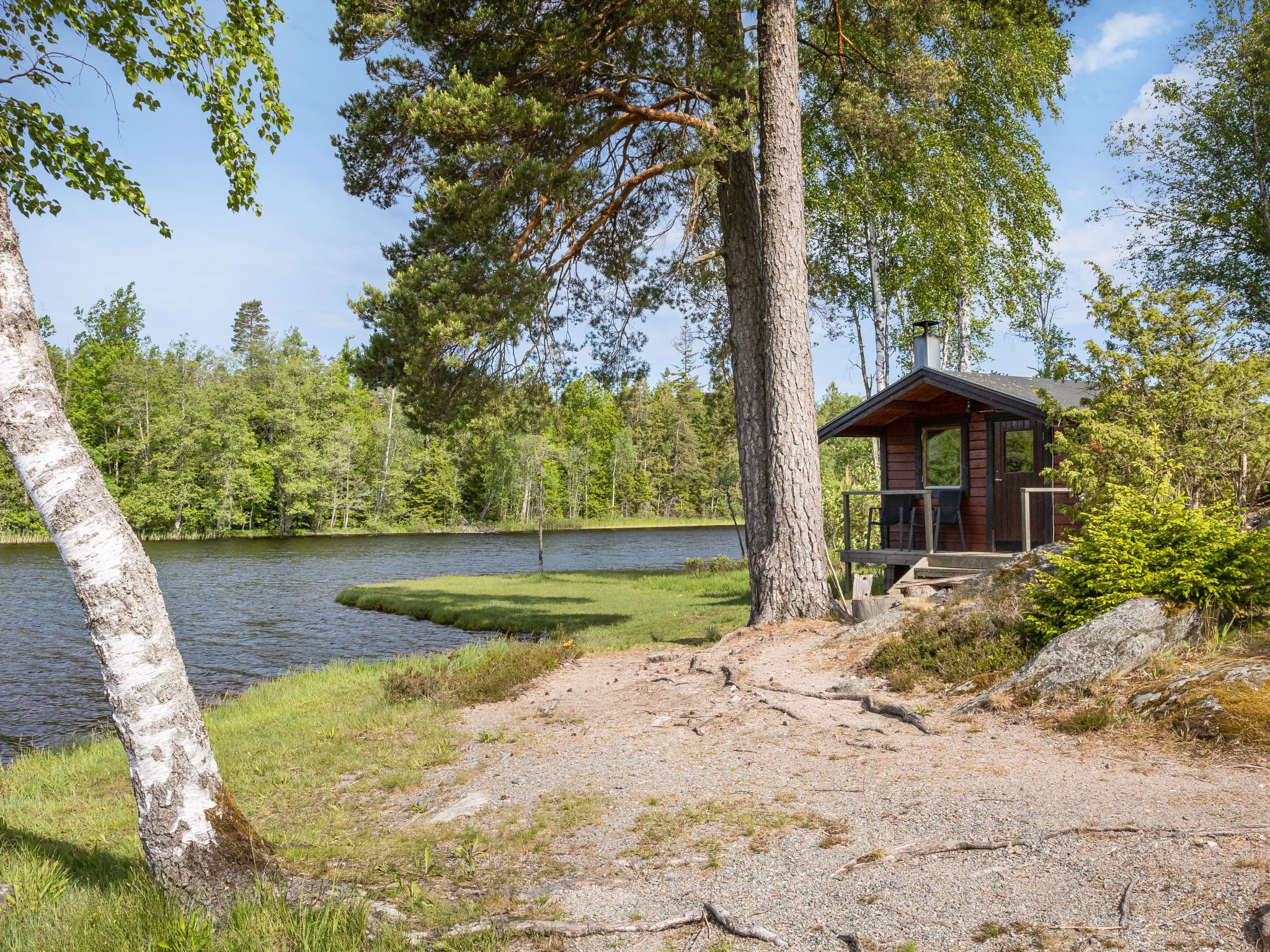 Cosy timber house "Kasen Sjökanten". 12 km from the centre of Färgelanda, 9 km from the centre of Stigen, 19 km from the centre of Högsäter, in a secluded, sunny position, on the lake. Private: natural state property 3'000 m2 with trees. Bathing jetty, bathing place. In the complex: sauna (extra). Available: canoe, boat (extra). Parking (for 2 cars) on the premises. Shop 9 km, supermarket 12 km, bus stop 2.3 km, railway station "Uddevalla" 28 km, ferry "Helsingborg" 325 km, grass beach 15 m, lake Långhalmen 15 m. Golf course (18 hole) 15 km, fishing possibilities 15 m. Please note: groups of teenagers on request only. The owner does not accept any groups. Private mooring. Neighbourhood highly sensitive to noise. Quietness and good behaviour expected.