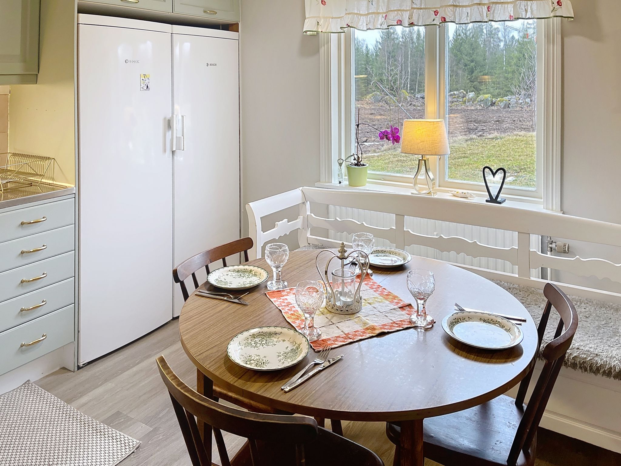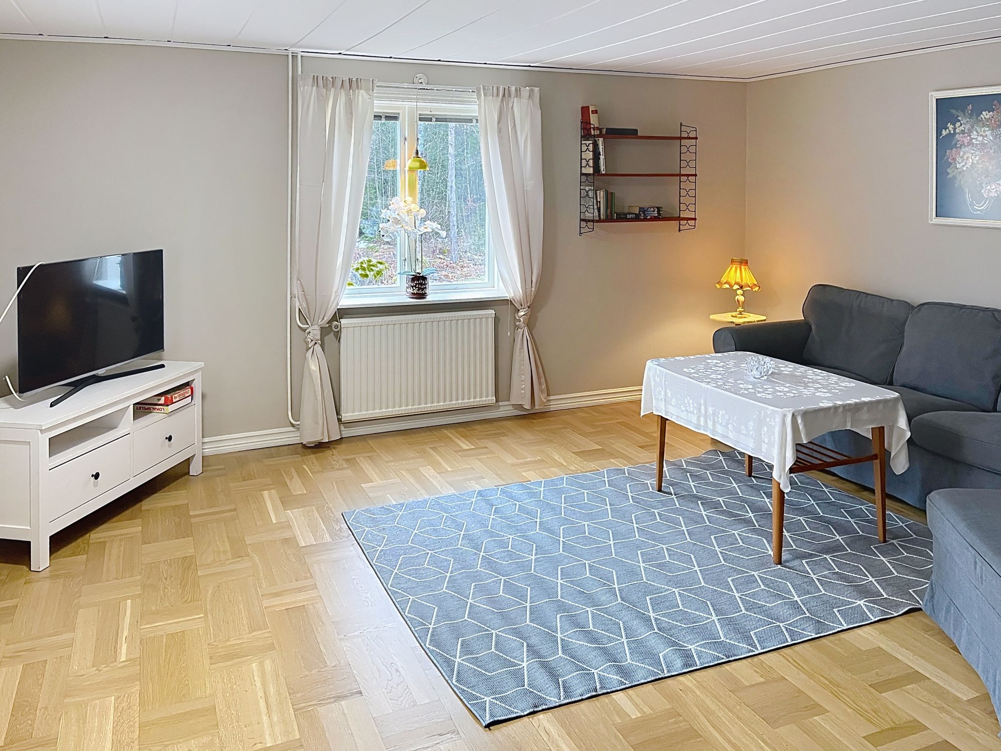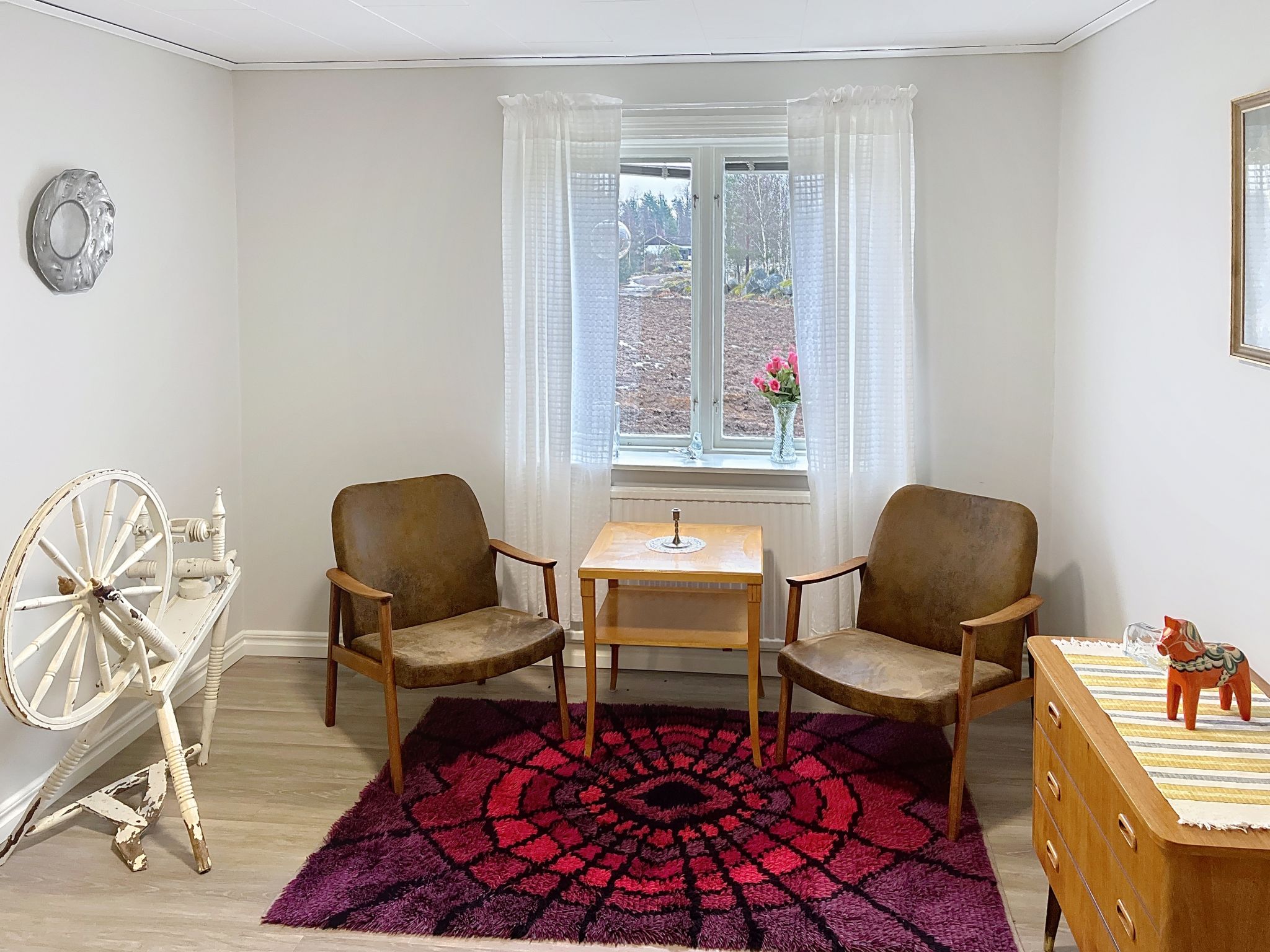 "Villa Gärdet", 5-room house 75 m2 on 2 levels. Very comfortable and tasteful furnishings: living room with Scandinavian wood stove and TV. 1 room with 1 sofabed (140 cm, length 200 cm). Kitchen (4 hot plates, oven, dishwasher, toaster, kettle, microwave, freezer, electric coffee machine) with dining nook. Exit to the garden. Shower/WC. Heating. Upper floor: 1 room with 1 double bed (180 cm, length 200 cm). 1 room with 1 bed (90 cm, length 200 cm). Wooden floors. Terrace 10 m2, roofed. Terrace furniture, barbecue (portable). Beautiful view of the countryside and the forest. Facilities: washing machine. Internet (WiFi, free). Please note: non-smoking house. Smoke alarm.