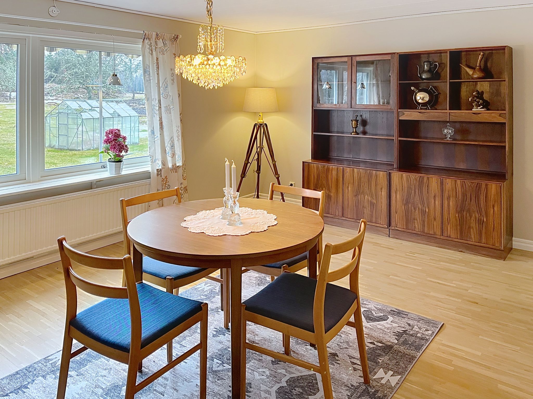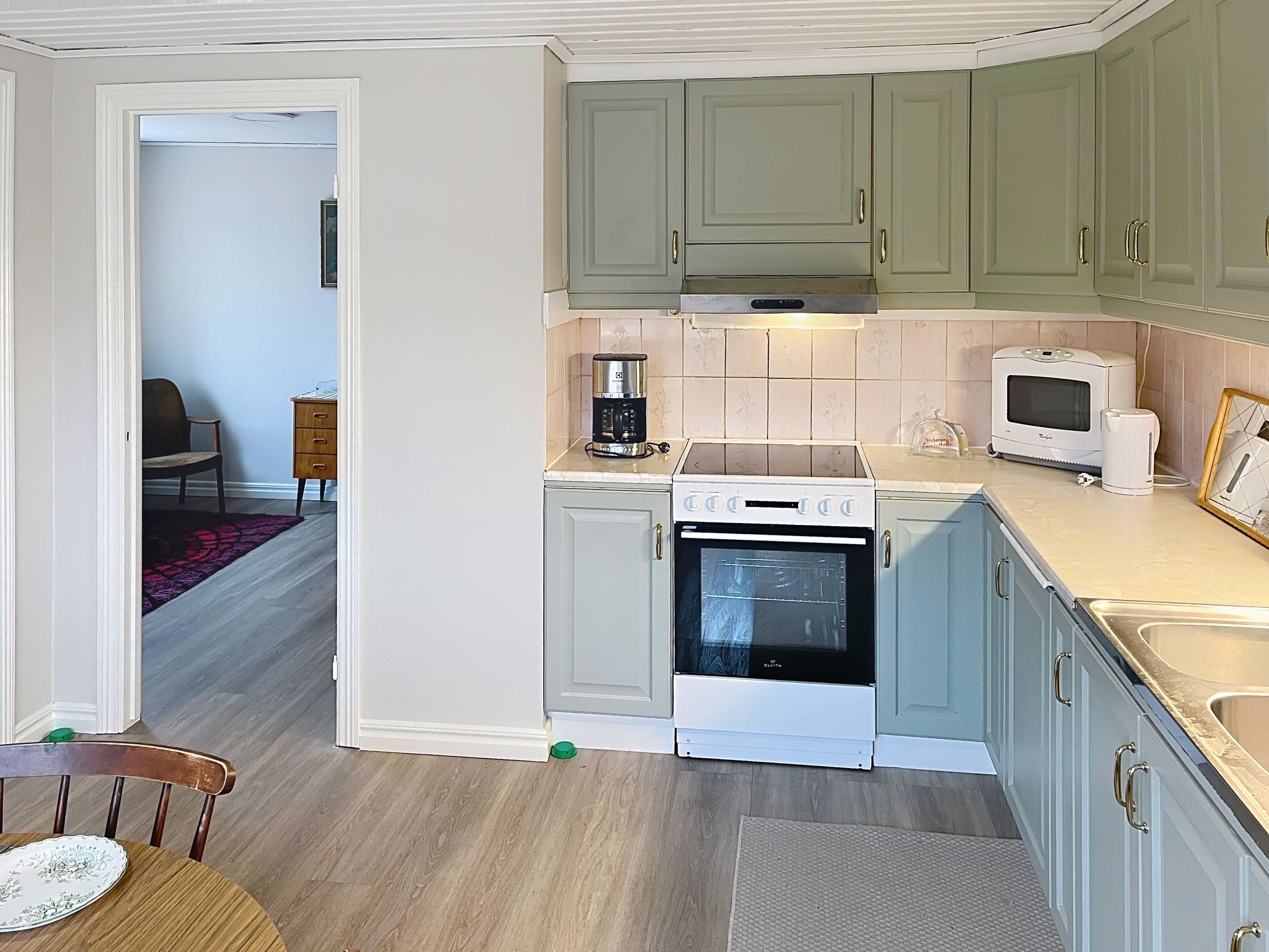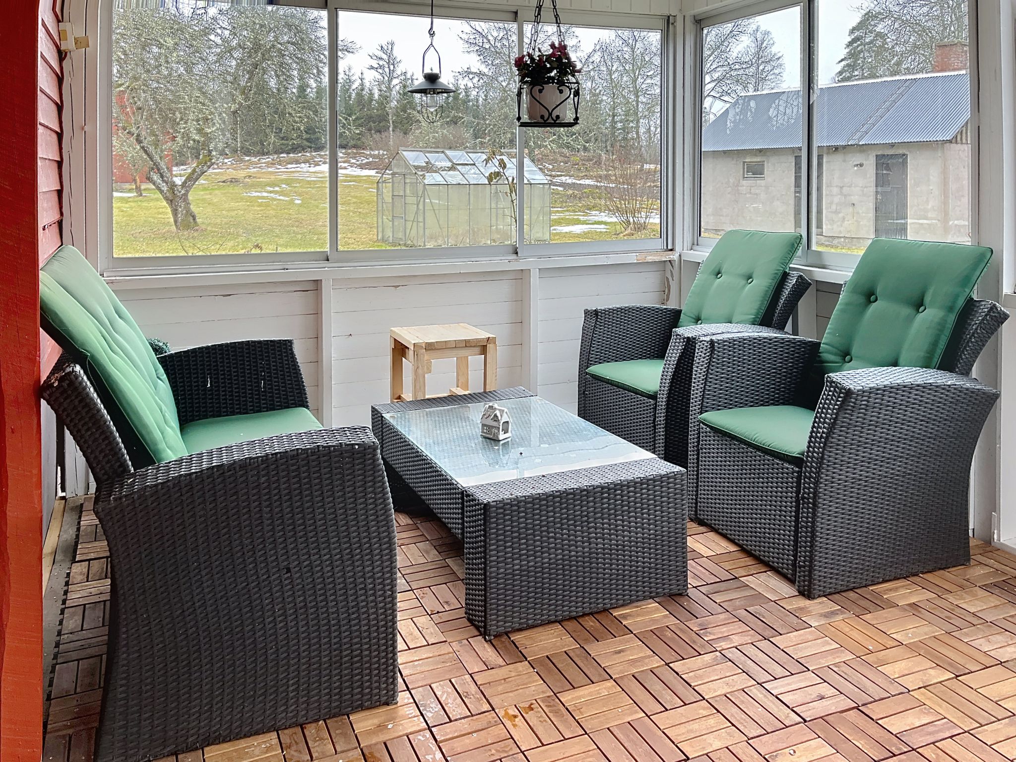 "Villa Gärdet", 5-room house 75 m2 on 2 levels. Very comfortable and tasteful furnishings: living room with Scandinavian wood stove and TV. 1 room with 1 sofabed (140 cm, length 200 cm). Kitchen (4 hot plates, oven, dishwasher, toaster, kettle, microwave, freezer, electric coffee machine) with dining nook. Exit to the garden. Shower/WC. Heating. Upper floor: 1 room with 1 double bed (180 cm, length 200 cm). 1 room with 1 bed (90 cm, length 200 cm). Wooden floors. Terrace 10 m2, roofed. Terrace furniture, barbecue (portable). Beautiful view of the countryside and the forest. Facilities: washing machine. Internet (WiFi, free). Please note: non-smoking house. Smoke alarm.