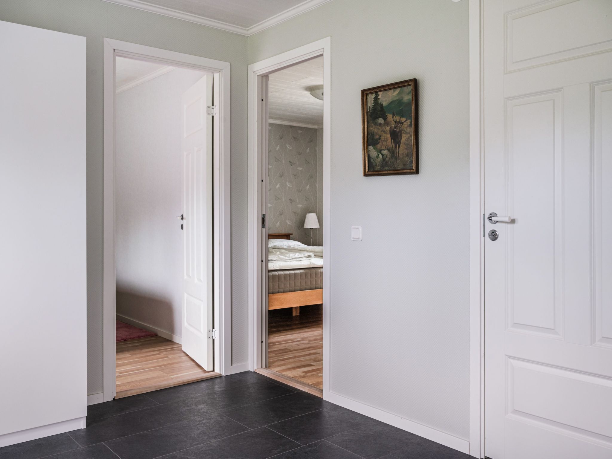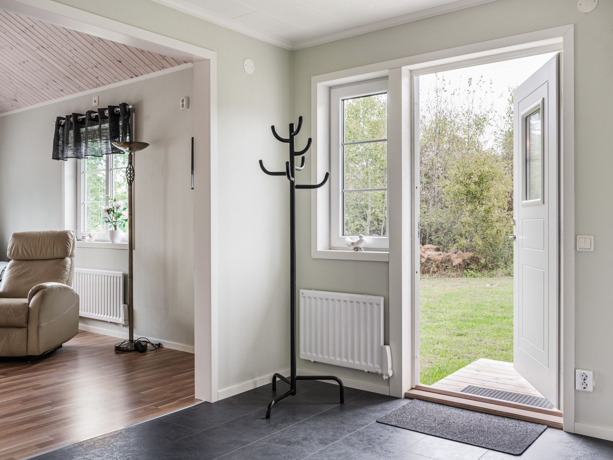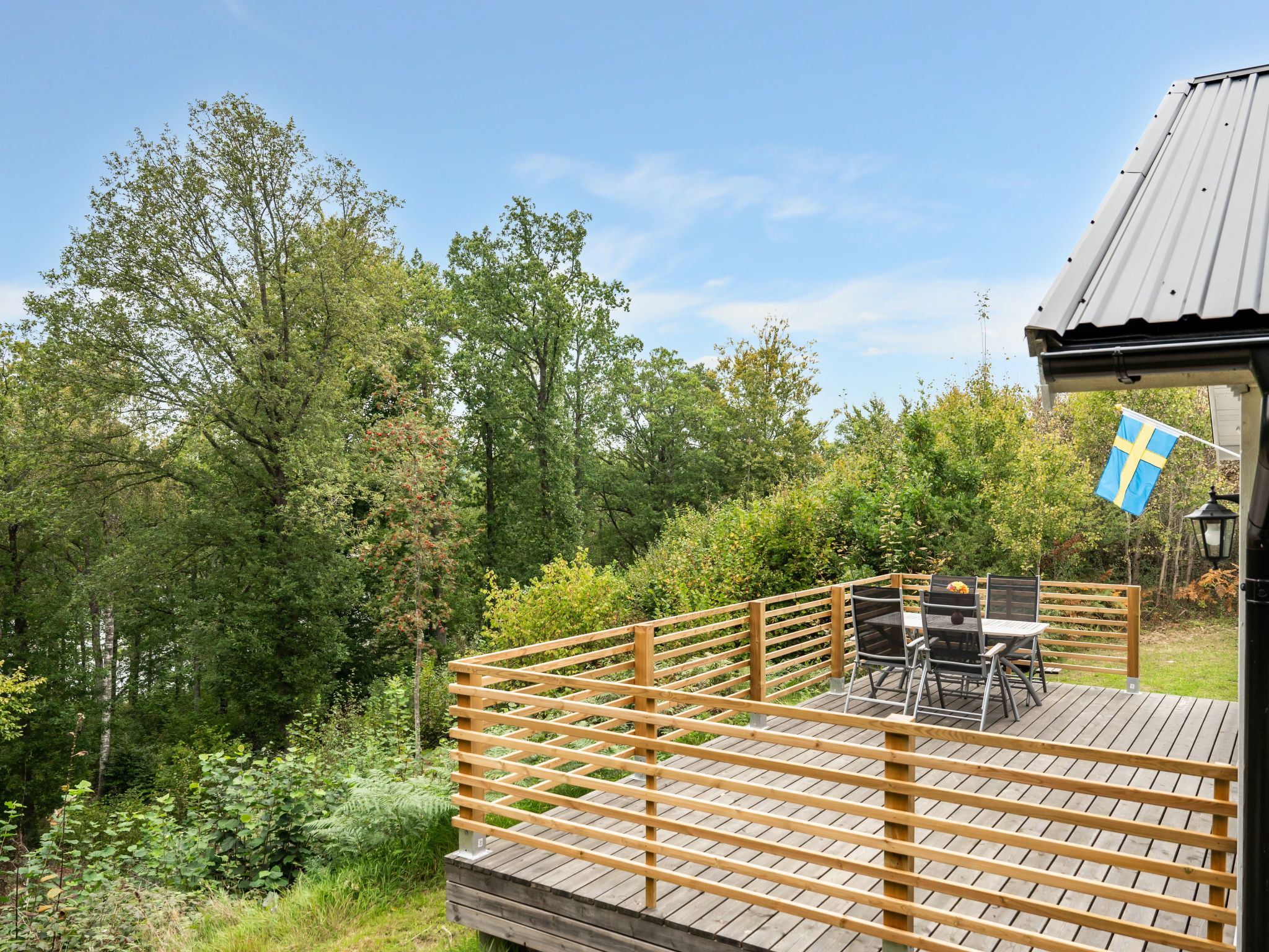 Fisherman's house "Gaslunda Tvåan", built in 2023. 8 km from the centre of Olofström, 25 km from the centre of Karlshamn, on a slope, 100 m from the lake, in a cul-de-sac, in the countryside. Bathing place. Private: natural state property 1'000 m2, garden (not fenced) with trees, meadow. Garden furniture, barbecue. Rowing boat, parking (for 2 cars) on the premises. Supermarket 8 km, bus stop 5.9 km, sandy beach 3.5 km, indoor swimming pool 8 km, lake Orlunden 3.5 km. Fishing possibilities 200 m.