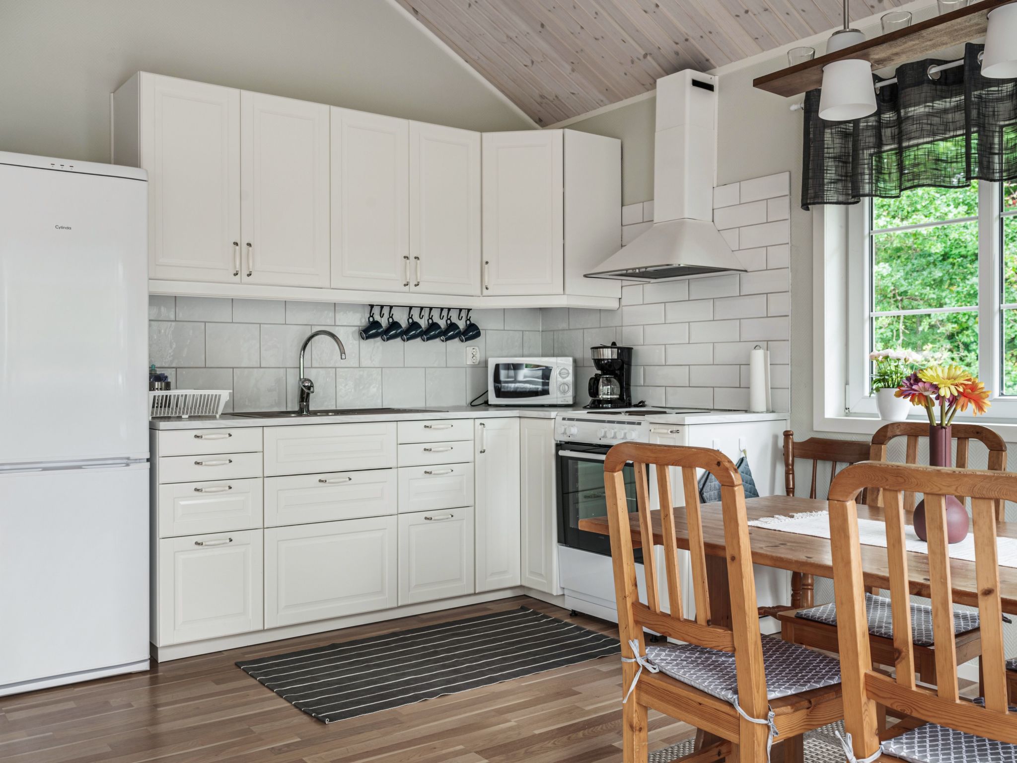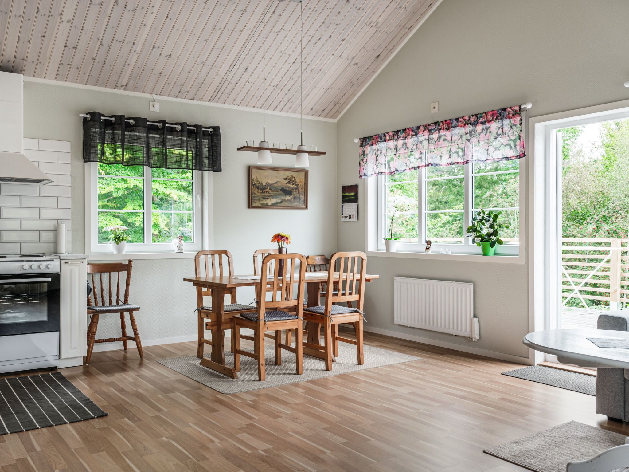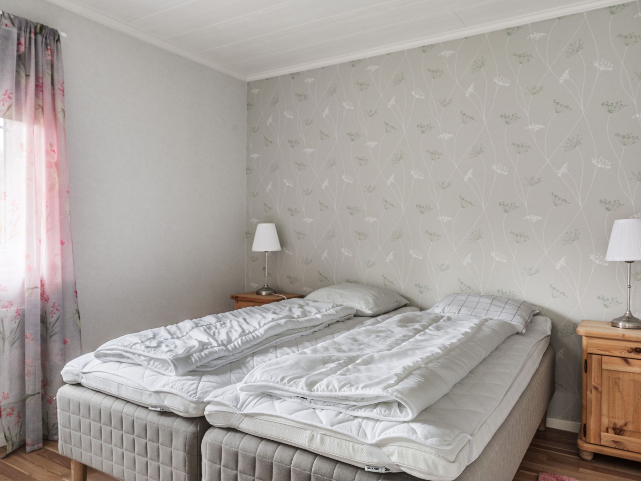 "Gaslunda TvĂĄan", 3-room house 70 m2. Bright, beautiful furnishings: living/sleeping room with Scandinavian wood stove, dining table, satellite TV and CD-player. Exit to the veranda. 2 rooms, each room with 1 double bed. Open kitchen (4 hot plates, oven, toaster, kettle, microwave, freezer, electric coffee machine). Shower/WC. Electric heating. Wooden floors. Balcony. Facilities: washing machine, children's high chair. Please note: smoke alarm, fire extinguisher.
