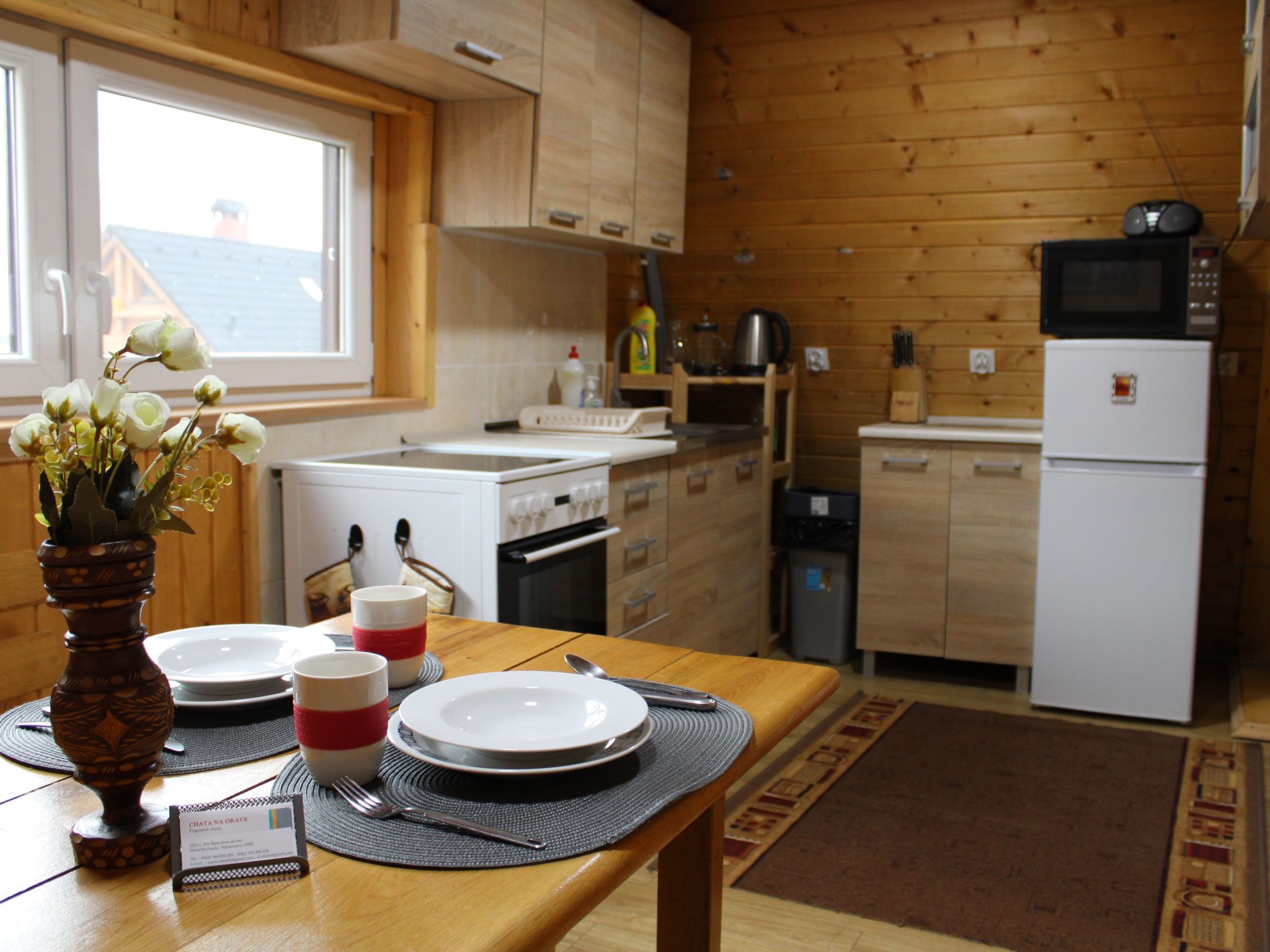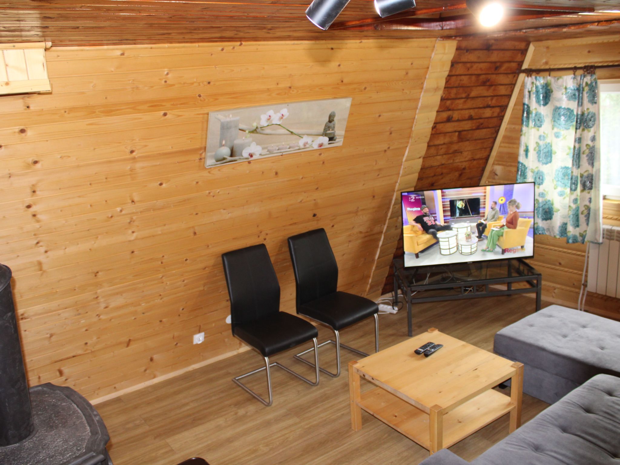 Discover the perfect refuge for those seeking relaxation and nature lovers - our cosy cabin in the Slanica recreation area, right by the picturesque Orava reservoir. Surrounded by the breathtaking scenery of forests, meadows and the majestic Magura Mountains, this hut offers the ideal base for a break full of relaxation, hiking fun and water sports activities. Experience the peace and quiet of this special location, which promises you a unique panoramic view and unforgettable moments in nature. Inside the hut you will find a cosy living room with fireplace, dining table, TV, music system and numerous board games for fun evenings. The fully equipped kitchen with oven, hob, fridge, freezer, microwave, coffee machine, kettle and toaster leaves nothing to be desired. With two bathrooms, shower and WC as well as cosily furnished bedrooms with double and single beds, the holiday home offers space for up to 7 people. Additional mattresses in the loft extend the accommodation options. WLAN and electric heating ensure comfort at all times. The outdoor area of the holiday home is a little paradise in itself. The fully fenced garden ensures safety for children and pets. A covered terrace with a cosy seating area, a barbecue and fire pit as well as a charming garden shed invite you to spend relaxing hours in the countryside. Four private parking spaces are available for vehicles. The highlight of the garden is the private sauna and the wood-fired hot tub, which promise pure relaxation after an active day in the great outdoors or romantic evenings under the stars. The chalet is situated in an idyllic location, just a few steps from the Orava reservoir, which offers a wide range of water sports. The surrounding landscape of forests, meadows and mountains invites you to hike, explore and linger. The proximity to Námestovo makes it possible to go on cultural and culinary excursions in the region and explore local life. Our holiday cottage in Slanica is the ideal holiday destination for anyone who wants to get away from it all, enjoy nature and experience unforgettable moments in a welcoming atmosphere. Whether you are looking for adventure or just want to relax, here you will find everything you need for a perfect holiday. The covered terrace, a warm indoor fireplace, private sauna and outdoor hot tub provide unique moments of relaxation. Pets are also welcome, so you can enjoy this special place together with your loved ones to the fullest. We look forward to welcoming you as our guests soon. Basic information - Pets allowed: any - Type of property: holiday house - is located in: Complex - type of building: Detached house - size of property: 300 m² - Year of the last complete renovation : 2022 - detached house - not observable from the street - Contactless check-in/check-out - Number of bedrooms: 2 - Number of bathrooms: 2 Top features - WiFi - heating: Everywhere - terrace - garden: For communal use - completely enclosed (by wall, fence or hedge) - Total of private car parking spaces: 4 - ㄴ of which garage spaces: None - ㄴ of which carport spaces: None - ㄴ of which private outdoor parking spaces: 4 - distance to public multi-storey car park: 30 m Sleeping bedroom 2 - double bed (from 1.31 m to 1.50 m width) - single bed bedroom 4 - 4x single bed - sofa bed for 1 person in the living area - double sofa bed for 2 people in the living area - child's bed/ baby's cot Bathroom bathroom 2 - shower - toilet bathroom 4 - shower - toilet Wellness - sauna - ㄴ for sole use - outdoor hot tub - ㄴ for sole use Cooking/Living - coffee machine: coffee machine - fridge/freezer: deep freezer, fridge - stove: ceramic hob, electric stove - oven - toaster - microwave - electric kettle - dishtowels - size of kitchen: 20 m² - number of dining tables: 1 - number of seats: 7 - number of living rooms: 1 - fireplace - stove Entertainment - TV: TV, antenna/DVBT TV - DVD player - music system - radio - CD player - fitness equipment For children - playground equipment - party games for children - playground in the garden Utility - washing machine: For sole use in the object - clothes drying rack - iron - vaccum cleaner - cleaning products - single oven / fan heater / radiators - fire extinguisher - smoke alarm - carbon monoxide alarm - first aid kit Sustainability - Waste recycling - Bio garbage available - glass recycling available - paper recycling available - plastic recycling available - water-saving shower - water-saving toilet - Renewable energy - Solar power - photovoltaic system - 100% green electricity - House Insulation - insulated roof - insulated facade Outside area - conservatory - veranda - loggia - outdoor furniture - grill/barbecue: grill/barbecue - covered and lockable bicycle storage Surroundings - view: mountain, sea/lake, garden, forrest, lawn - directly at the edge of the wood - Nearest town centre: 200 m - Grocery store: 3,0 km - going out: 200 m - restaurant: 200 m - train station: 10,0 km - airport: 120,0 km - motorway: 30,0 km - distance public transport: 500 m - shingle beach: 300 m - grass beach: 300 m - water (sea, lake, etc.): 300 m - lake: 300 m - water sports: 300 m - bicycle hire: 300 m - hiking trail: 10 m Distinctive features - cottage - Mountain lodge - chalet