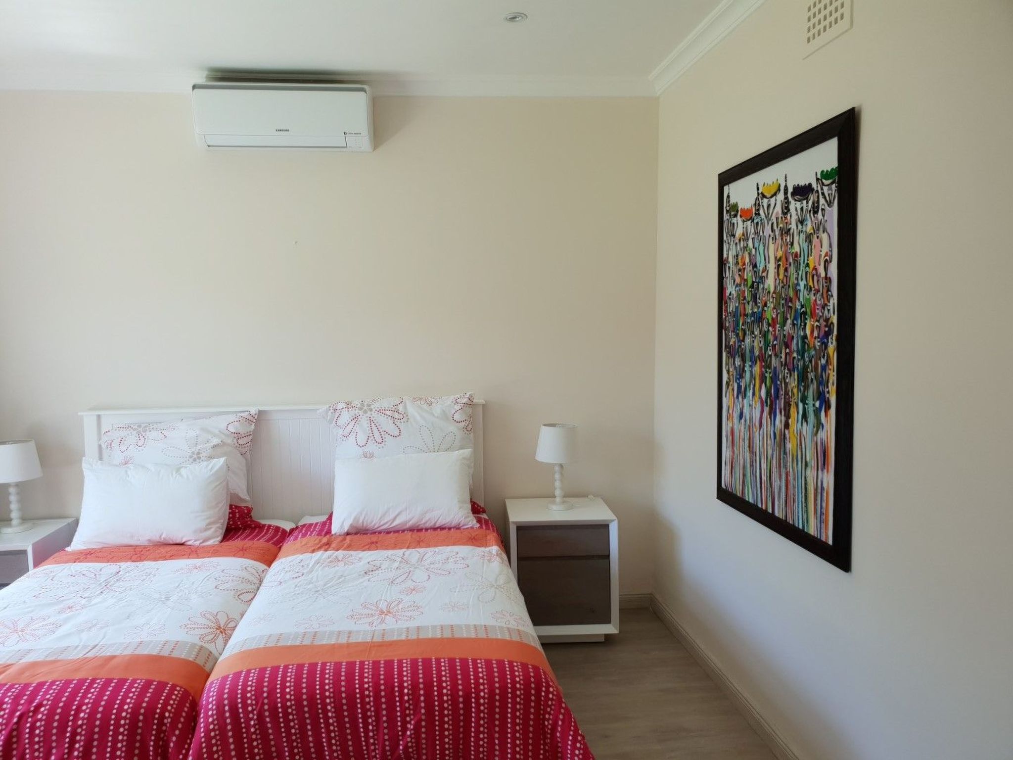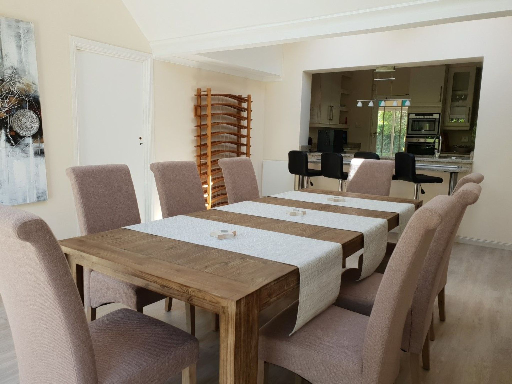 Villa Karibu is located in Tokai, one of Cape Town's leafy southern suburbs in the Cape's oldest wine region, the Constantia Valley. The infrastructure in Tokai is first class, shopping malls, gas stations and restaurants are all "just around the corner". The villa is only a few meters from the Steenberg Golf Club and some of South Africa's most famous wineries, such as Steenberg Estate; Groot Constantia and Buitenverwachting. From here it is not far to... large shopping centres (Blue Route Mall, Constantia Emporium and Constantia Village), several golf clubs (e.g. Steenberg, 1km away) and the famous Constantia Wine Route with its numerous excellent restaurants. White sandy beaches and the centre of Cape Town with all its attractions such as the V&A Waterfront, various museums and theatres, the Cape Malay district, the Parliament, Companies Garden, the cable car to the Table Mountain plateau, the Newlands Rugby Stadium and various markets can be found within max. 30 minutes of driving time can be reached. And this list could be extended indefinitely! Villa Karibu: 3 bedrooms, 3 bathrooms, large living room, extra dining room, 2 terraces, 1 porch, heated swimming pool, 3 secure parking spaces The villa is situated on a plot in a quiet location very close to the Steenberg Golf Club. The lush, large garden with a solar-heated 40 m² swimming pool, the porch and the two terraces are not visible from the street. The lanai is furnished with a gas grill, an open fireplace and an 8-seater dining table, the two terraces with small seating areas. The pretty villa with a special flair is located very close to the Steenberg Golf Estate. It includes a large living/TV room with a comfortable seating area and 143 cm Smart TV, a kitchen equipped with modern, high-quality appliances in an open plan design toward the separate dining room, 2 bedrooms and 2.5 bathrooms as well as a multi-purpose room with adjoining laundry room, all in one Basement of the two-story. The master bedroom is furnished with a large French bed (king-size, 184cm wide), a dressing room with a dressing table and the en-suite bathroom has a large walk-in shower cubicle, among other things. In the second bathroom, there is only a shower cubicle available. All furniture is new or in very good condition. Between the garage and the separate dining room, there is a multifunctional utility room with a laundry room. On the upper floor, there is a third bedroom and en-suite bathroom with a walk-in shower, which is equipped with 2 single beds and has an anteroom with a sofa bed and another bathroom. All furniture is new or in very good condition. Constantia itself is one of the poshest parts of Cape Town. The lovely landscape makes you forget that you are in the immediate vicinity of a big city. The villas are surrounded by park-like gardens, some also have paddocks and vineyards. On the Constantia Valley Wine Route, you can get to know the famous wineries in the green valley of Constantia. Groot Constantia was founded in 1685 and given to the first governor of the Cape, Simon van der Stel, as an experimental farm for agricultural products, who mainly developed viticulture here and made Constantia wine world-famous. In 1925 the Cape Dutch mansion burned down completely. After its reconstruction, it now houses a museum that gives an insight into the life of the first Cape settlers. A walk across the extensive estate is worthwhile simply because of the great view of the Constantia Valley. A stone's throw away is Klein Constantia wineries, famous for its white wines, Constantia Uitsig and Buitenverwachting, home to one of Cape Town's most exclusive restaurants. The access via an avenue lined with mighty oaks is an experience. On the way to Hout Bay, you will pass the new, very exclusive wineries that have produced world-class wines in recent years: Constantia Glen, Eagles Nest and Beau Constantia. At the end of the valley is the renowned Steenberg winery. In the early 1990s, a world-class 18-hole golf course and a top restaurant were built here. Leisure: Helicopter tours, skydiving, paragliding, shark diving, racetracks, city tours, museums, concerts, jazz bars, and wine tasting at the 11 Constantia Valley wineries; some in breathtaking views. Shopping: Ideal, it couldn't be better, in the "Constantia Village" shopping centre (with petrol station) 3 minutes away, in the new Constantia Emporium (0.8 km) or in the Blue Route Mall in Tokai. Supply of wines from the region directly on-site at cellar prices from the wineries. Sports: Swimming, sailing, tennis, golf (two excellent golf courses 8 and 10km away), kiting, surfing, dune surfing, climbing, horseback riding, hiking, and jogging. Restaurants: In our vicinity, there are numerous good and some excellent restaurants and pubs, such as the steakhouses "Cattle Baron" and "Hussar Grill" with the "Best Steaks in Town", "Old Town Italy" with delicious Italian food and one great terrace as well as "Chef's Warehouse" and "La Colombe", two of the top 10 restaurants in South Africa. Features: - 143cm smart TV with direct internet connection - Blu-ray player - Fast Internet access via fibre optic cable (free of charge) - Laundry service at very reasonable prices - Secure on-site parking for 3 vehicles - Private garden and terrace with covered BBQ and dining area - Street lamps on the outer wall - Night lighting around the house, in the garden and in the swimming pool - Heated 40sqm swimming pool surrounded by comfortable sun loungers - Equipped with an extensive alarm system (sensors around the house) connected to a security service (Armed Response). - Camera surveillance all around with a monitor in the kitchen Basic information - Pets allowed: none - Type of property: holiday house - is located in: Housing estate - type of building: Detached house - Floor on which the object can be found: Ground floor - Total number of floors in the building above the ground floor: 1 - size of property: 850 m² - year o